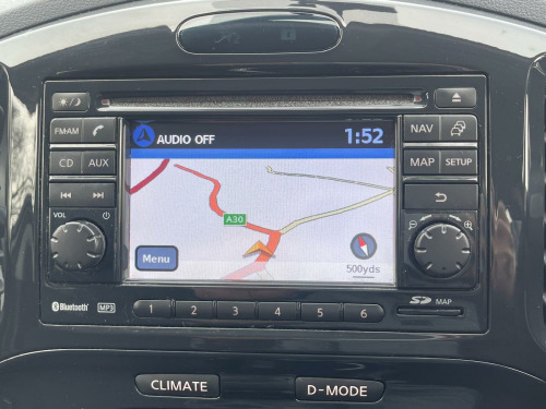 A clean example of low mileage Nissan Juke Mot is until 21/12/2026 Part service History with 7 stamps in the book 6 from Nissan Main dealer The last service has just been carried out 2 keys Interior-Exterior in Good condition starts and drives well HPI clear 3 months Warranty Viewings and test drives welcome 7 days a week For more cars please visit our websiteThis 2013 Nissan Juke Acenta Premium is a great find with remarkably low mileage for its age, having covered just 75,000 miles. This particular model is equipped with a 1.6 litre petrol engine and benefits from desirable features such as climate control air conditioning, a colour reversing camera for easier parking, and Bluetooth telephone integration for seamless connectivity on the go.The Juke Acenta Premium offers excellent running costs, achieving an impressive fuel economy of 49 miles per gallon. Furthermore, its low insurance group rating and low CO2 emissions indicate that this vehicle is more economical to own and run compared to many other cars in its class, making it a sensible choice for everyday driving. emium fabric - grey, 12v socket - front, 17in alloy wheels - sport, 3 adjustable rear head restraints, 60-40 split rear folding seats, abs - anti lock brakes, aux-in socket, airbag - driver, airbag - front passenger, airbags - curtain, airbags - side, bluetooth telephone integration, body coloured door mirrors, body coloured handles, body-coloured door handles, brake assist, bumpers - body coloured, cd radio with mp3 playback, chrome exhaust finisher, chrome interior door handles, climate control air conditioning, colour reversing camera, cruise control, driver seat height adjustment, ebd - electronic brakeforce distribution, esp - electronic stability programme, electric door mirrors, electric speed-sensitive power steering, engine immobiliser, front cupholders x2, front door pockets with drinks bottle holders, front fog lights, front map reading lights, front and rear electric windows, glovebox, grey or red centre console-door trim finishers, isofix child seat anchoring points, nissan connect with touch-screen navigation system, nissan dynamic control system, passenger airbag cut-off switch, passenger seat back pockets, pollen filter, premium pack, rear door child locks, rear privacy glass, rear tonneau cover integrated into tailgate, remote central locking, speakers x6, speed limiter, steering wheel - leather and gear knob, steering wheel mounted audio controls, tilt adjustable steering wheel, trip computer, usb port