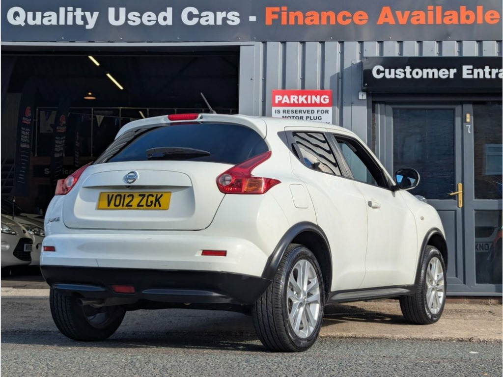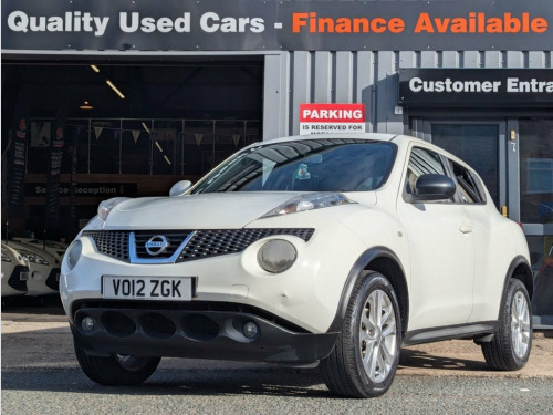 Stand out in this stylish 2012 Nissan Juke 1.6 Acenta Premium SUV 5dr Petrol Manual, finished in crisp White with sporty 17-inch alloy wheels and bold crossover styling. Powered by a 117PS petrol engine with manual transmission, it offers a fun, responsive drive with excellent economy and everyday practicality. Loaded with features including Nissan Connect touch-screen navigation, colour reversing camera, climate control, cruise control, Bluetooth, premium pack, leather steering wheel and gear knob, 60-40 split-fold rear seats, rear privacy glass, front fog lights, and ISOFIX child seat points, this Juke combines comfort, safety, and convenience in one striking package. With 121,000 miles, it has been fully inspected, HPI clear, and is ready to drive away today. Priced competitively at £2,490, with part exchange and finance options available. 12V Socket - Front, 17in Alloy Wheels - Sport, 3 Adjustable Rear Head Restraints, 60-40 Split Rear Folding Seats, ABS - Anti Lock Brakes, AUX-In Socket, Airbag - Driver, Airbag - Front Passenger, Airbags - Curtain, Airbags - Side, Bluetooth Telephone Integration, Body Coloured Door Mirrors, Body Coloured Handles, Body-Coloured Door Handles, Brake Assist, Bumpers - Body Coloured, CD Radio with MP3 Playback, Chrome Exhaust Finisher, Chrome Interior Door Handles, Climate Control Air Conditioning, Colour Reversing Camera, Cruise Control, Driver Seat Height Adjustment, EBD - Electronic Brakeforce Distribution, ESP - Electronic Stability Programme, Electric Door Mirrors, Electric Speed-Sensitive P
