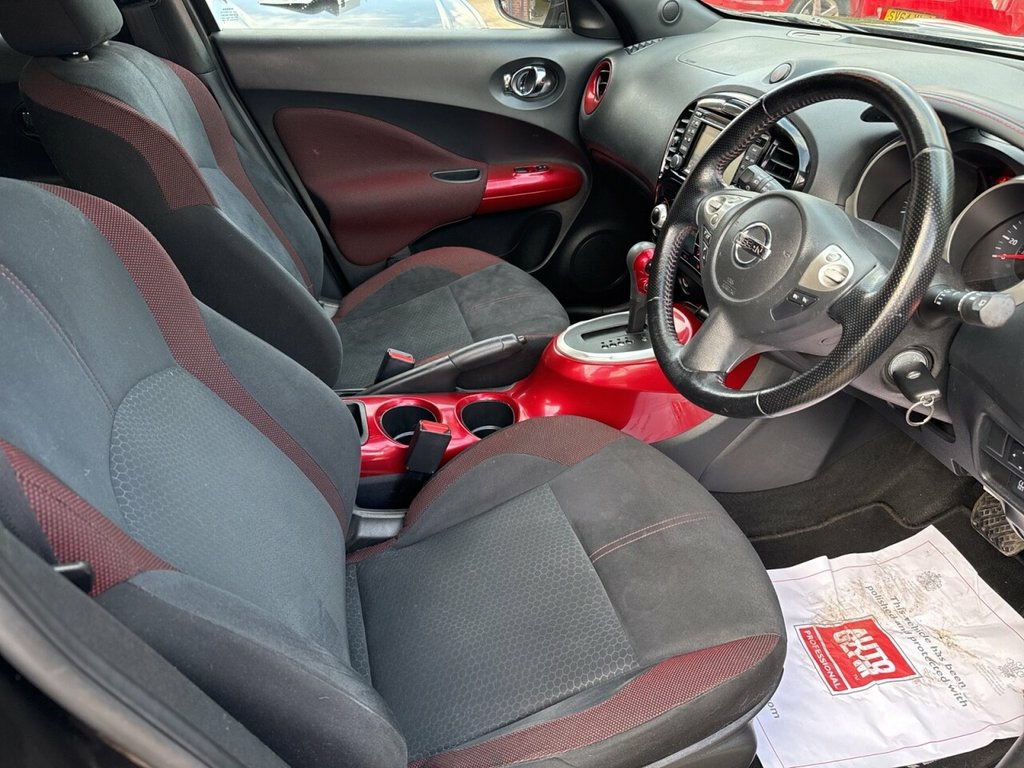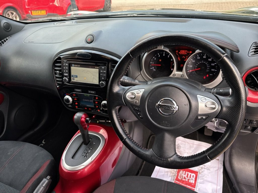 Now available from our dealership is this superb 2014 Nissan Juke 1.6 Acenta Premium Xtronic, a stylish and versatile automatic SUV finished in striking metallic black. Compact yet full of character, this Juke offers the perfect combination of sporty design, practicality, and comfort — ideal for both city driving and longer journeys. Powered by Nissan's reliable 1.6-litre petrol engine paired with the smooth Xtronic automatic gearbox, this Juke provides effortless driving and impressive fuel efficiency, returning around 44 MPG combined. With £215 annual road tax, it remains affordable to run while offering the convenience of an automatic transmission — a rare and highly sought-after feature in this model. This example has covered just 63,000 miles and has had only two previous owners, clearly reflecting careful use and regular maintenance. It presents beautifully inside and out, showcasing the attention to detail and quality Nissan is known for. The Acenta Premium specification means you'll enjoy a host of desirable features, including satellite navigation, reversing camera, Bluetooth connectivity, climate control, and stylish alloy wheels. The cabin is well-designed, offering a commanding driving position, excellent visibility, and ample comfort for both driver and passengers. Externally, the Juke's distinctive design gives it real road presence, while its compact dimensions make it easy to manoeuvre and park — perfect for urban dri 12V Socket - Front, 17in Alloy Wheels - Sport, 6 Speakers, 60-40 Split Rear Folding Seats, ABS - Anti Lock Brakes, AUX-In Socket, Air Vent Rings - Matching Centre Console, Airbag - Driver, Airbag - Front Passenger, Airbags - Curtain, Airbags - Side, Black Headliner, Body Coloured Door Mirrors, Body Coloured Handles, Brake Assist, Bumpers - Body Coloured, Chrome Interior Door Handles, Climate Control, Cruise Control, DAB Radio, Door Trim Finishers - Matching Centre Co, Driver Seat Height Adjustment, EBD - Electronic Brakeforce Distribution, ESP - Electronic Stability Programme, Electric Door Mirrors, First Aid Kit, Front Armrest, Front Door Pockets with Drinks Bottle Ho, Front Dual Cupholders