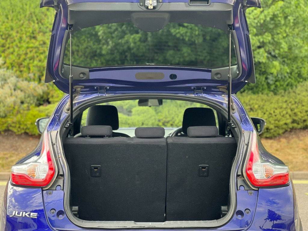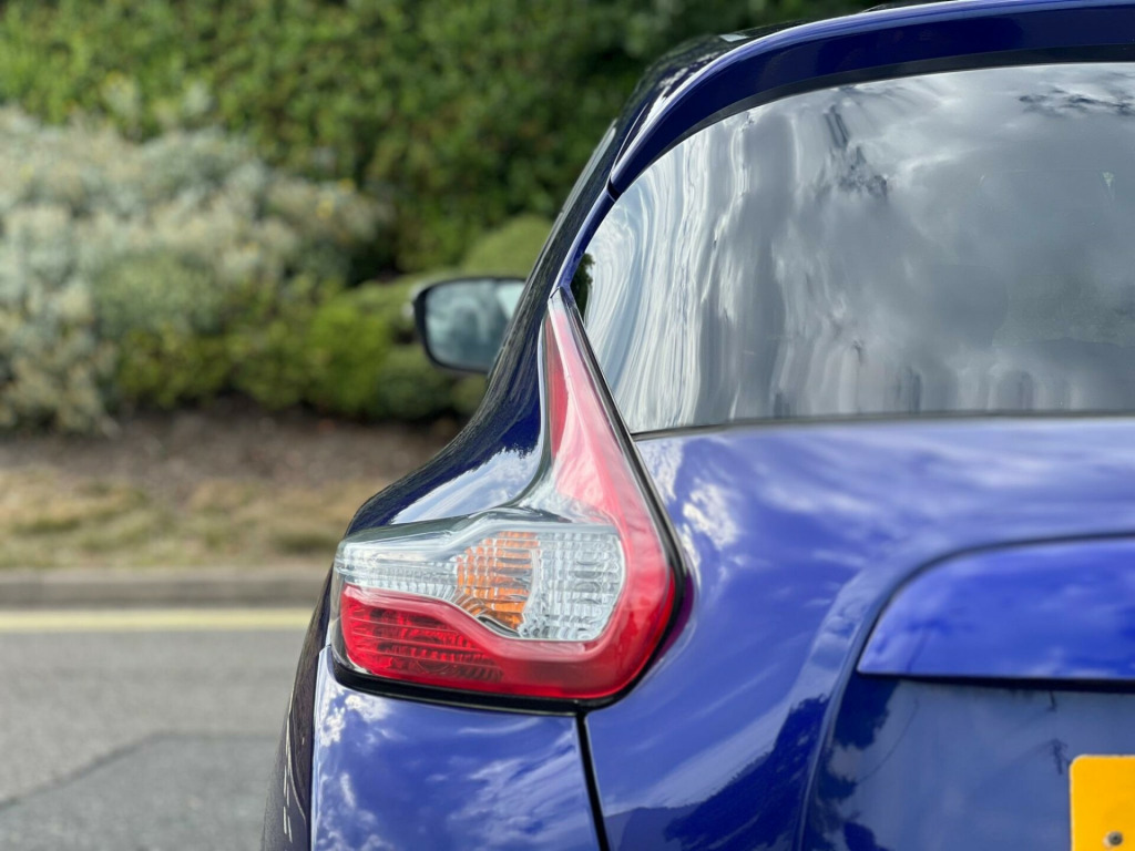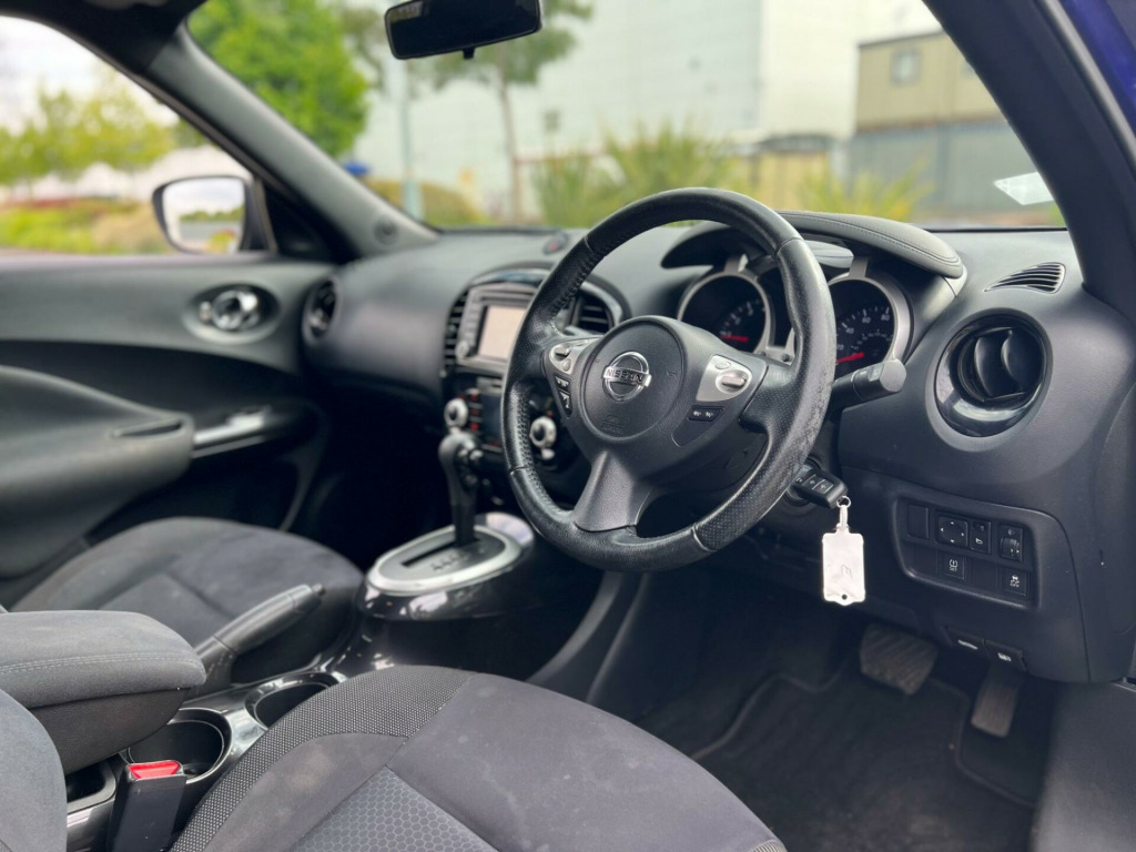 2015 Nissan Juke 1.6 Acenta Premium XTRON Euro 5 5dr in Blue. Only 42000 warranted miles on the clock. Car comes with a 12 Month Warranty!!! MOT till 4th December 2025. Only 2 previous owners from new. Service History Available: 6 Services 4 Main Dealer. Car drives well with no mechanical faults. Full V5 Available. Good spec including: Sat Nav, Leather Steering Wheel, CD/DAB Radio/AUX, Bluetooth, Reverse Camera, AC/Climate Control, Privacy Glass, Media Connectivity, Electric Windows, Electric Mirrors, Alloy Wheels, Cruise Control, Central Locking and many more. Nationwide Delivery Available. P/X Welcome. ULEZ Compliant. HPI Clear. 2 Keys. Any questions don't hesitate to contact us on 07443456706 v socket - front, 17in alloy wheels - sport, 6 speakers, 60-40 split rear folding seats, abs - anti lock brakes, aux-in socket, air vent rings - matching centre console, airbag - driver, airbag - front passenger, airbags - curtain, airbags - side, black headliner, body coloured door mirrors, body coloured handles, brake assist, bumpers - body coloured, chrome interior door handles, climate control, cruise control, dab radio, door trim finishers - matching centre console, driver seat height adjustment, ebd - electronic brakeforce distribution, esp - electronic stability programme, electric door mirrors, first aid kit, front armrest, front door pockets with drinks bottle holders, front dual cupholders, front fog lights, front map reading lights, front passenger seatback pockets, front and rear electric windows, gear knob - insert finisiher - matching centre console, gear shift indicator, glovebox, grey centre console-door trim finishers, head restraints - front, head restraints - rear, high visibility jackets, isofix child seat anchoring points, immobiliser, led daytime running lights, leather gear knob, leather steering wheel, nissan dynamic control system, passenger airbag cut-off switch, pollen filter, power assisted steering, puncture repair kit, radio-cd, rear door child locks, rear parking camera, rear privacy glass, rear tonneau cover integrated into tailgate, remote central locking, safety kit, satellite navigation - nissan connect, seats - sports, steering wheel - rake adjustment, steering wheel mounted audio controls, tpms - tyre pressure monitoring system, telephone - bluetooth integration, touch screen - colour 5.8in, traction control, trip computer, usb port, warning triangle