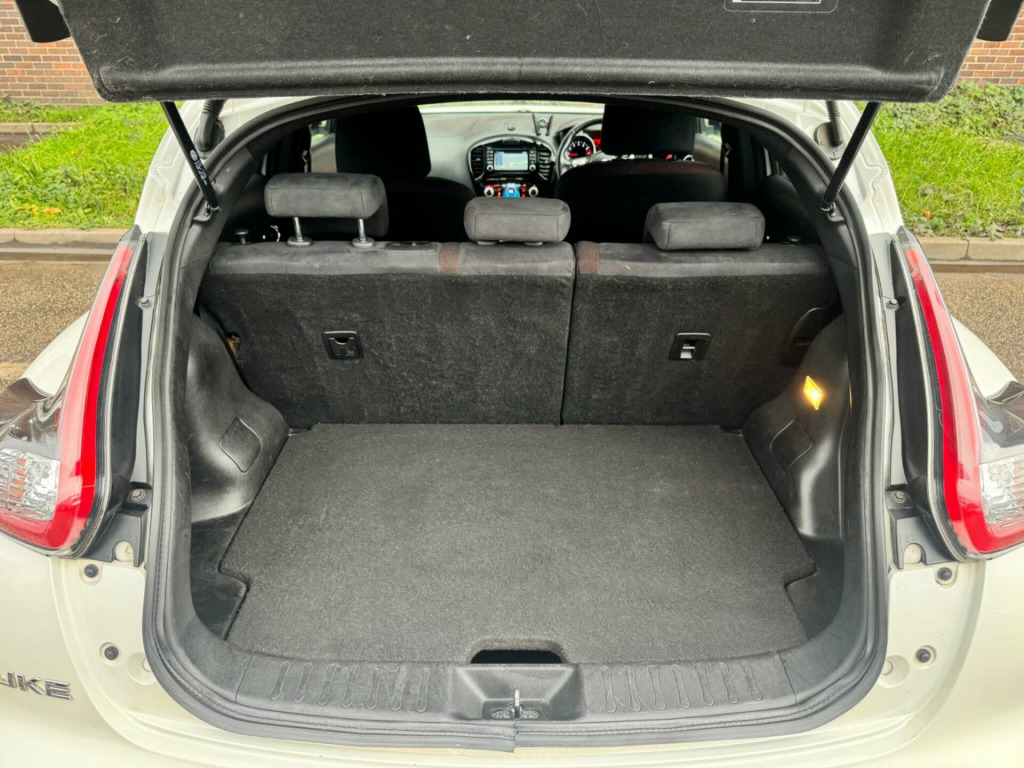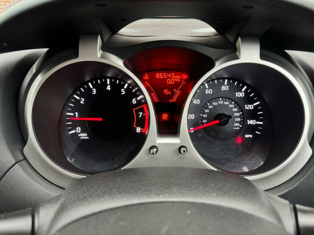 This 2014 Nissan Juke Acenta Premium boasts a full service history, with its last service completed on 3rd November 2025 at 86,000 miles, offering peace of mind for its next owner. This stylish 1.6 litre petrol model comes with a 3 month warranty and MOT due 9th November 2026 provided on purchase, ensuring roadworthiness. Inside, you'll find premium grey fabric upholstery complemented by a striking red centre console and red exterior accents, adding a touch of personality. For convenience, it features Bluetooth integration for seamless telephone connectivity and climate control to keep you comfortable in all conditions.The Juke Acenta Premium also includes a rear parking camera with parking assistance, making manoeuvring in tight spaces easier. Its low insurance group rating is a significant highlight, indicating that running costs are likely to be more affordable compared to similar vehicles. This combination of practical features, a well documented service history, and appealing design elements makes this Nissan Juke a compelling choice. v socket - front, 17in alloy wheels - sport, 6 speakers, 60-40 split rear folding seats, abs - anti lock brakes, aux-in socket, air vent rings - matching centre console, airbag - driver, airbag - front passenger, airbags - curtain, airbags - side, black headliner, body coloured door mirrors, body coloured handles, brake assist, bumpers - body coloured, chrome interior door handles, climate control, cruise control, dab radio, door trim finishers - matching centre console, driver seat height adjustment, ebd - electronic brakeforce distribution, esp - electronic stability programme, electric door mirrors, first aid kit, front armrest, front door pockets with drinks bottle holders, front dual cupholders, front fog lights, front map reading lights, front passenger seatback pockets, front and rear electric windows, gear knob - insert finisiher - matching centre console, gear shift indicator, glovebox, grey centre console-door trim finishers, head restraints - front, head restraints - rear, high visibility jackets, isofix child seat anchoring points, immobiliser, led daytime running lights, leather gear knob, leather steering wheel, nissan dynamic control system, passenger airbag cut-off switch, pollen filter, power assisted steering, puncture repair kit, radio-cd, rear door child locks, rear parking camera, rear privacy glass, rear tonneau cover integrated into tailgate, remote central locking, safety kit, satellite navigation - nissan connect, seats - sports, steering wheel - rake adjustment, steering wheel mounted audio controls, tpms - tyre pressure monitoring system, telephone - bluetooth integration, touch screen - colour 5.8in, traction control, trip computer, usb port, warning triangle, premium fabric - grey with red centre console and red exterior pack, premium fabric - grey with red centre console and red exterior plus pack
