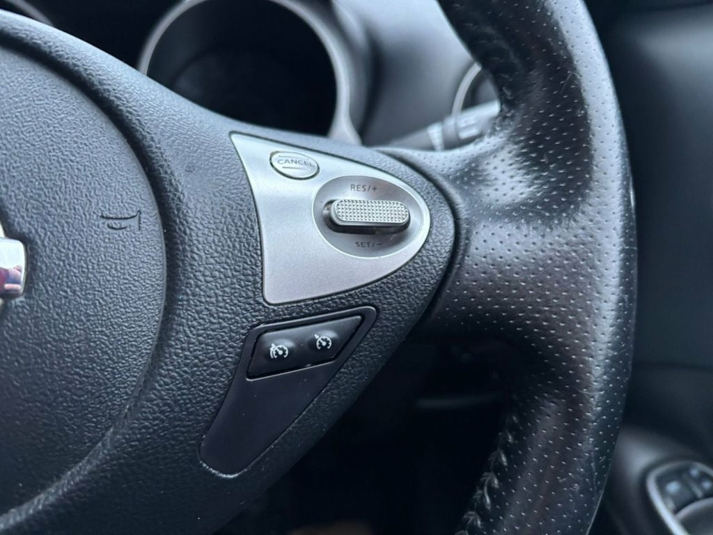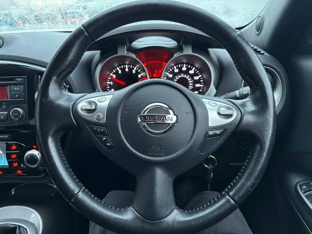 Powered by a 1.6 litre petrol engine and paired with a smooth 5 speed manual gear box the Nissan Juke boasts 115 bhp and returns an incredible 48.7 mpg on a combined cycle The Nissan has 5 seats and all offering ample leg room throughout, it also has a generous boot space for your needs The Juke does not stop with its superb spec all the way through and having great features such as parking camera, parking sensors, heated seats, bluetooth, steering wheel mounted controls, air conditioning, telephone connection and so much more 12V Socket - Front, 17in Alloy Wheels - Sport, 3 Adjustable Rear Head Restraints, 60-40 Split Rear Folding Seats, ABS - Anti Lock Brakes, AUX-In Socket, Airbag - Driver, Airbag - Front Passenger, Airbags - Curtain, Airbags - Side, Bluetooth Telephone Integration, Body Coloured Door Mirrors, Body Coloured Handles, Body-Coloured Door Handles, Brake Assist, Bumpers - Body Coloured, CD Radio with MP3 Playback, Chrome Exhaust Finisher, Chrome Interior Door Handles, Climate Control Air Conditioning, Cruise Control, Driver Seat Height Adjustment, EBD - Electronic Brakeforce Distribution, ESP - Electronic Stability Programme, Electric Door Mirrors, Electric Speed-Sensitive Power Steering, Engine Imm