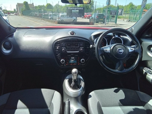 AN EXCEPTIONAL NISSAN JUKE 1.6 ACENTA SUV IN STUNNING FLAME RED WITH A NICE SPEC TO INCLUDE 16" ALLOYS, REAR PARKING SENSORS, LED DAYTIME RUNNING LIGHTS, LED FRONT FOG LIGHTS, (TPMS) TYRE PRESSURE MONITORING SYSTEM, REAR PRIVACY GLASS, NISSAN DYNAMIC CONTROL SYSTEM, AUTOMATIC CLIMATE CONTROL, RADIO CD AUDIO SYSTEM, AUX SOCKET FOR MP3 PLAYER, TELEPHONE-BLUETOOTH INTEGRATION, USB PORT+++++++++TO NAME A FEW!!! JUST 51,200 MILES BY 2 x OWNERS WITH SECOND OWNER SINCE MAY 2021!!! SUPPLIED WITH FULL SERVICE HISTORY CONSISTING OF 6 x SERVICE STAMPS 3 x J&J NISSAN-2 x WESSEX GARAGES NISSAN-1 x SPECIALIST + INVOICES!!! & FULL BOOK PACK. THERE IS NO ADD ON CHARGES WITH THIS CAR THE PRICE INCLUDES A 6 MTH WARRANTY, MINIMUM 6 MONTH MOT & INDEPENDENT INSPECTION PRIOR TO DELIVERY! WE ARE A FAMILY RUN BUSINESS WITH MORE THAN 50 YEARS EXPERIENCE IN THE MOTOR TRADE! GO TO OUR WEBSITE FOR A FREE NO OBLIGATION QUOTE ON A PCP OR HP FINANCE DEAL!!! ALSO GET AN INSTANT ONLINE DECISION ON FINANCE ON OUR WEBSITE!!! ITS SIMPLE!!! Cloth - Graphite, Flame Red, 12V Socket - Front, 16in Alloy Wheels - Aero Bi-Tone Grey, 2 Speed Wiper with Variable Intermittent, 3 Adjustable Rear Head Restraints, 6 Airbags, 60-40 Split Rear Folding Seats, AM-FM-CD Audio System, AUX Socket for MP3 Player, Automatic Climate Control with Pollen Fi, Body Coloured Door Mirrors, Body Coloured Handles, Chrome Interior Door Handles, Cruise Control with Speed Limiter, Dark Chrome Grille, Door Mirrors with LED Indicators, Door-Boot Open Warning Light, Drive Computer with Temperature Gauge, Driver and Passenger Sun Visor with Vani, ESP ABS EBD and Brake Assist, Electric Adjustable Door Mirrors, Electric Front Windows with Driver One-T, Engine Immobi