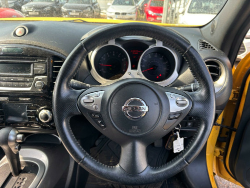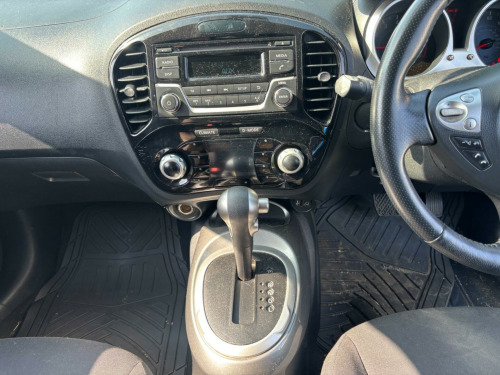 HERE WE HAVE A LOVLY JUKE PETROL 1.6 cc AUTO. GREAT CONDITION THROUGHOUT. DRIVES REALLY WELL SMOOTH AUTO BOX. SOLD WITH ONE YEAR. MOT. COMES WITH SERVICE HISTORY. AND SPARE KEY. HPI CLEAR. USUAL ACENTA XTRON EXTRAS. AC ALLOYS. BLUE TOOTH. VIDEO WALK AROUND AVAILABLE. FINANCE ARRANGED. ALL MAJOR CARDS ACCEPTED. PX CONSIDERED. WARRANTY INCLUDED. LOW COST HOME DELIVERY AVAILABLE. PLEASE CALL OR EMAIL FOR FULL DETAILS. WWW.M.A.G TRADE SALES.CO.UK sual fabric - grey, 12v socket - front, 17in alloy wheels - sport, 60-40 split rear folding seats, abs - anti lock brakes, aux-in socket, airbag - driver, airbag - front passenger, airbags - curtain, airbags - side, body coloured door mirrors, body coloured handles, brake assist, bumpers - body coloured, chrome interior door handles, climate control, cruise control, driver seat height adjustment, ebd - electronic brakeforce distribution, esp - electronic stability programme, electric door mirrors, first aid kit, front door pockets with drinks bottle holders, front dual cupholders, front fog lights, front map reading lights, front passenger seatback pockets, front and rear electric windows, gear shift indicator, glovebox, grey centre console-door trim finishers, head restraints - front, head restraints - rear, headliner - grey, high visibility jackets, isofix child seat anchoring points, immobiliser, led daytime running lights, leather gear knob, leather steering wheel, nissan dynamic control system, passenger airbag cut-off switch, pollen filter, power assisted steering, puncture repair kit, radio-cd, rear door child locks, rear privacy glass, rear tonneau cover integrated into tailgate, remote central locking, safety kit, speakers x4, steering wheel - rake adjustment, steering wheel mounted audio controls, tpms - tyre pressure monitoring system, telephone - bluetooth integration, traction control, trip computer, usb port, warning triangle