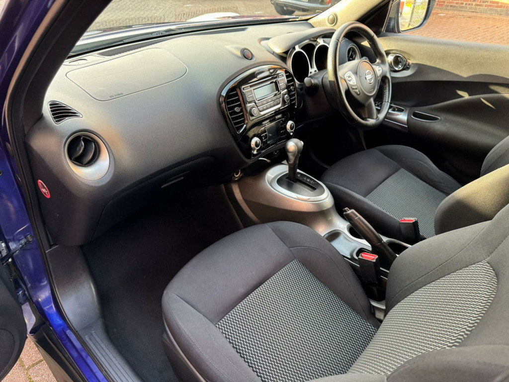 £199 compulsory 6month warranty to be charged upon collection, AUTOMATIC, 2 Former Keepers, Low Mileage with a Full Service History including 9 documented services, 2 Keys supplied, ULEZ Compliant Vehicle, This Nissan Juke boasts an impressive MOT valid until October 2026, offering peace of mind for the coming years. This 2015 Acenta model, with its 1.6 litre petrol engine, has covered a low mileage of just 62,000 miles for its age. It comes with a full service history and a clear vehicle history check, with the last service completed at 58,682 miles. Notable features include climate control for your comfort and Bluetooth integration for seamless telephone connectivity.The low insurance group for this Juke is a significant advantage, suggesting lower running costs compared to many other vehicles in its class. This, combined with its well documented provenance and desirable features, makes this Nissan Juke a compelling choice for those seeking a practical and economical compact car. imate control, 17in alloy wheels - sport, abs - anti lock brakes, cruise control, aux-in socket, ebd - electronic brakeforce distribution, esp - electronic stability programme, airbag - driver, airbag - front passenger, airbags - curtain, airbags - side, body coloured door mirrors, body coloured handles, brake assist, bumpers - body coloured, chrome interior door handles, driver seat height adjustment, electric door mirrors, 60-40 split rear folding seats, 12v socket - front, first aid kit, front door pockets with drinks bottle holders, front dual cupholders, front fog lights, front map reading lights, front passenger seatback pockets, front and rear electric windows, gear shift indicator, glovebox, grey centre console-door trim finishers, head restraints - front, head restraints - rear, headliner - grey, high visibility jackets, isofix child seat anchoring points, immobiliser, led daytime running lights, leather gear knob, leather steering wheel, nissan dynamic control system, passenger airbag cut-off switch, pollen filter, power assisted steering, puncture repair kit, radio-cd, rear door child locks, rear privacy glass, rear tonneau cover integrated into tailgate, remote central locking, safety kit, speakers x4, steering wheel - rake adjustment, steering wheel mounted audio controls, tpms - tyre pressure monitoring system, telephone - bluetooth integration, traction control, trip computer, usb port, warning triangle