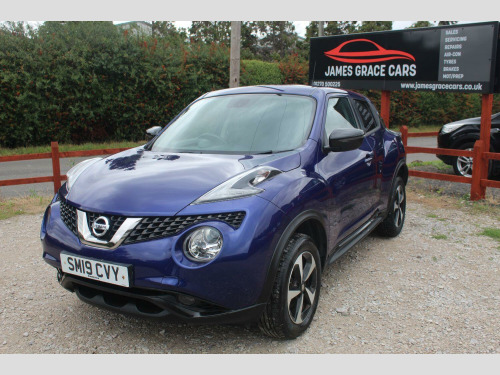 Discover this 2019 Nissan Juke Bose Personal Edition, a stylish and feature packed compact SUV. Powered by an efficient 1.6 litre petrol engine and meeting Euro 6 emissions standards, this Juke offers a refined driving experience. Key features include Intelligent Key with a push button start for effortless entry and ignition, alongside a colour reversing camera to aid with parking. Stay connected on the go with Bluetooth integration for handsfree calls and music streaming. Automatic headlights, activated by a dusk sensor, ensure optimal visibility, while the impressive BOSE Personal Sound System delivers an immersive audio experience. , This particular Nissan Juke Bose Personal Edition stands out with its inclusion of the premium BOSE Personal Sound System, offering superior audio quality compared to standard systems. Furthermore, its placement in a low insurance group makes it an economical choice for many drivers, indicating lower running costs. These highlights demonstrate how this Juke provides enhanced comfort, convenience, and value. , James Grace Cars hand pick all cars from major dealer groups. Most cars have full service history. All retail cars come with a valid MOT, pre-sales service, and a full valet. All major debit cards are welcome. Finance arranged subject to status. Over 35 years in the motor trade industry. CW1 4NB Tel: 01270 500 225 Find more cars on our website https://www.jamesgracecars.co.uk/