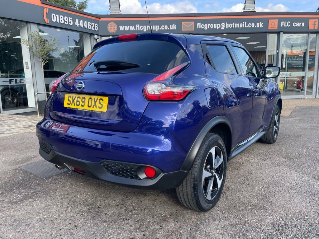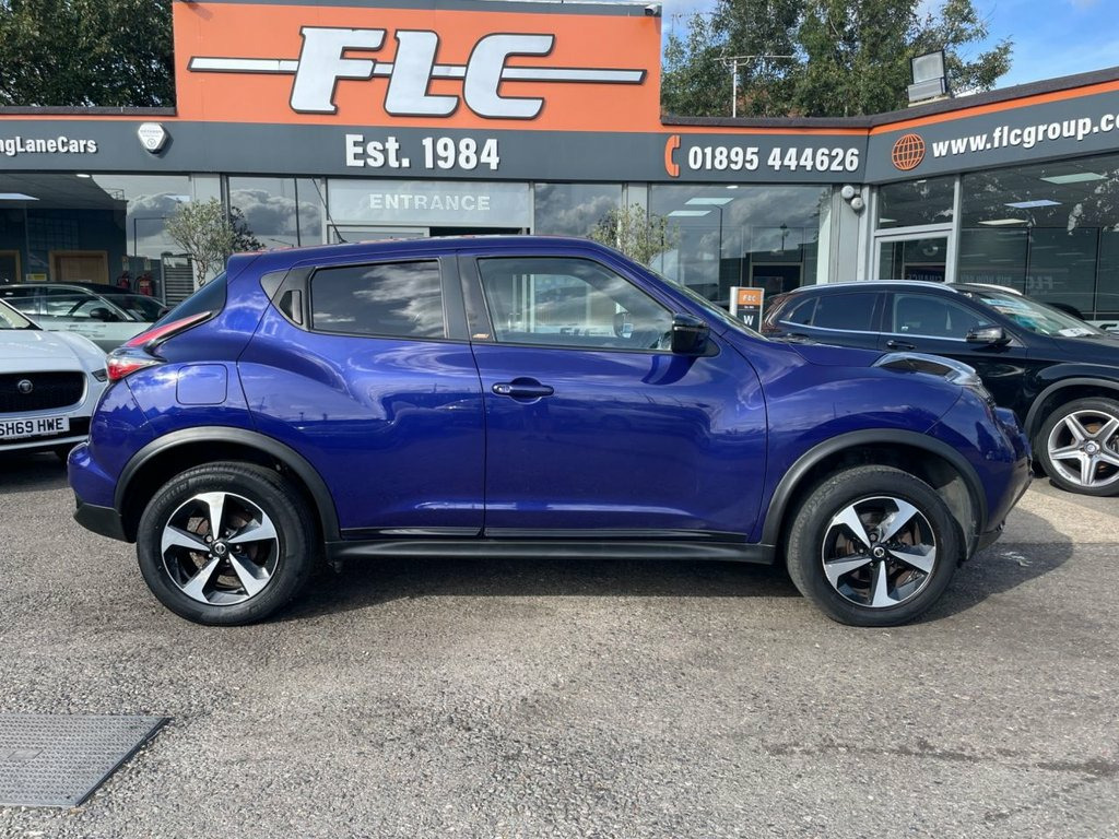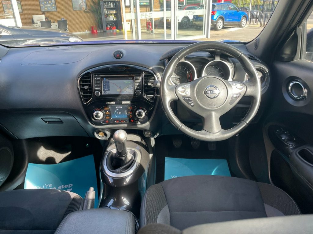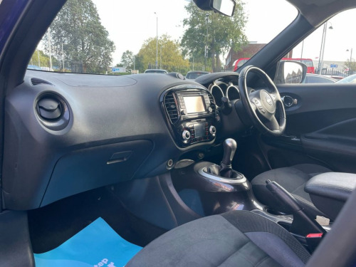FLC is proud to present this Nissan Juke, a bold and compact crossover that combines eye-catching design with practical usability. Finished in Ink Blue and complemented by two tone alloy wheels, this Juke delivers confident road presence with flair. This example has been carefully maintained, benefitting from service history and an MOT until 2026, and is presented in excellent condition overall, with only light age-related blemishes visible on close inspection. Inside, the interior blends functionality with comfort and style. It features – for example, touchscreen infotainment, Satellite Navigation, Reverse Camera, Bluetooth connectivity, parking sensors, air conditioning – making every journey enjoyable and well-equipped. All part exchanges considered – contact FLC today to arrange a viewing. Ink Blue, 12V Socket - Front, 16in Alloy Wheels - Aero Bi-Tone Black, 3 Adjustable Rear Head Restraints, 6 Airbags, 60-40 Split Rear Folding Seats, AM-FM-CD Audio System, AUX Socket for MP3 Player, Automatic Climate Control with Pollen Fi, Automatic Headlights - Dusk Sensor, BOSE Personal Sound System, Body Coloured Handles, Chrome Interior Door Handles, Colour Reversing Camera, Cruise Control with Speed Limiter, DAB Radio, Dark Chrome Grille, Door Mirrors with LED Indicators, Door-Boot Open Warning Light, Drive Computer with Temperature Gauge, Driver and Passenger Sun Visor with Vani, ESP ABS EBD and Brake Assist, Electric Folding and Heated Door Mirrors, Electric Front Windows with Driver