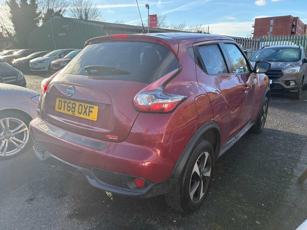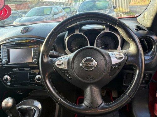 Nissan Juke Bose personal edition in metallic red. Comes with sat navigation, 16" alloy wheels, air conditioning, electric windows in the front and rear, electric folding mirrors, keyless start and entry, reversing camera, cruise control, auto lights and wipers, rear privacy glass, its a 5 speed, has a touchscreen dab radio, aux port, usb, bluetooth and a multifunction steering wheel. THE CAR WILL HAVE A SERVICE AND 12 MONTHS MOT / PART EXCHANGE IS ALWAYS WELCOME / FREE 12 MONTH AA ROADSIDE RECOVERY INCLUDED / FINANCE IS AVAILABLE VIA OUR WEBSITE LINK / THE CAR HAS BEEN HPI AND MILEAGE CHECKED, ALL OK / WE ARE A FAMILY RUN BUSINESS AND HAVE BEEN TRADING FOR OVER 30 YEARS, WE OFFER DELIVERY IN MAINLAND UK (Please ask for details), WE ARE HERE TO HELP YOU! PLEASE CONTACT US WITH ANY QUESTIONS 12V Socket - Front, 16in Alloy Wheels - Aero Bi-Tone Black, 3 Adjustable Rear Head Restraints, 6 Airbags, 60-40 Split Rear Folding Seats, AM-FM-CD Audio System, Automatic Climate Control with Pollen Fi, Automatic Headlights - Dusk Sensor, AUX Socket for MP3 Player, Body Coloured Handles, BOSE Personal Sound System, Chrome Interior Door Handles, Colour Reversing Camera, Cruise Control with Speed Limiter, DAB Radio, Dark Chrome Grille, Door Mirrors with LED Indicators, Door-Boot Open Warning Light, Drive Computer with Temperature Gauge, Driver and Passenger Sun Visor with Vani, Electric Folding and Heated Door Mirrors, Electric Front Windows with Driver One-T, Engine Immobiliser, ESP ABS EBD a