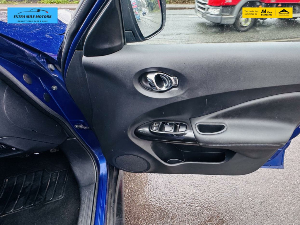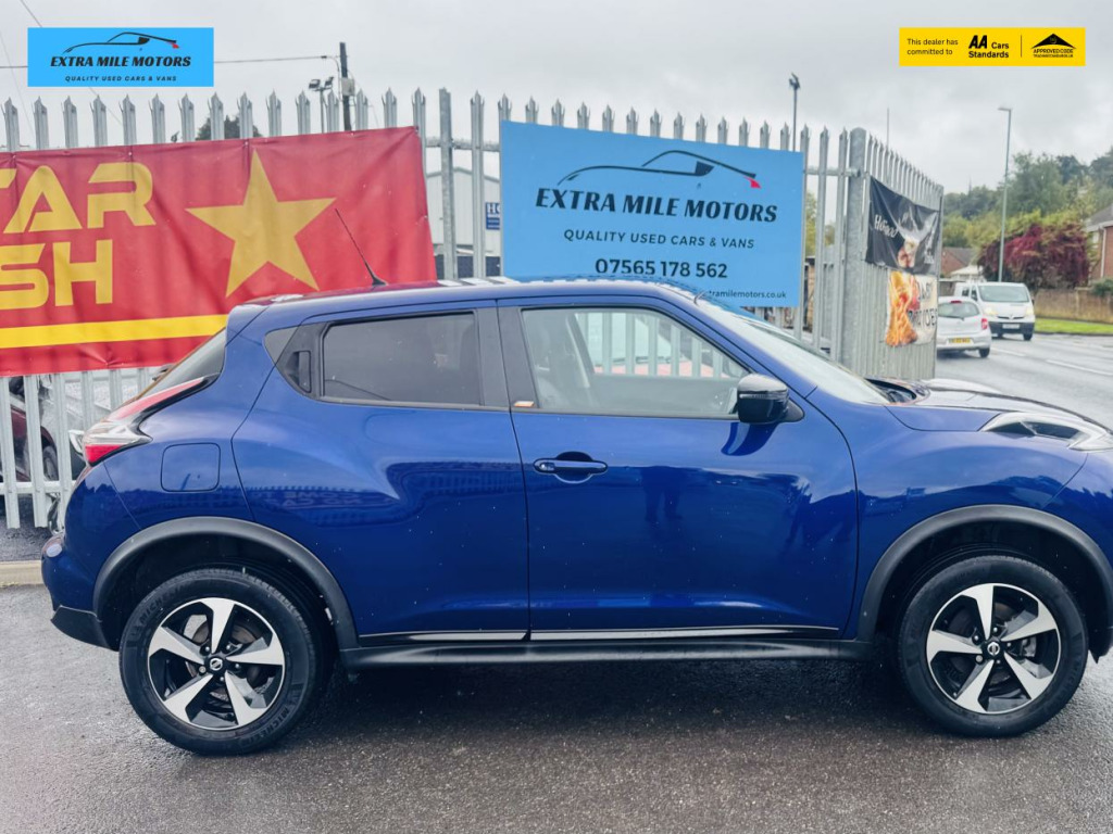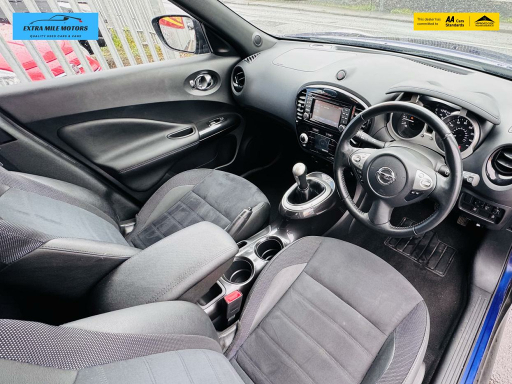 Here at Extra Mile Motors, we are excited to offer this stunning 2018 Nissan Juke 1.6 Bose Personal Edition SUV. With a striking blue exterior and a well-maintained mileage of just 43,000 miles, this vehicle combines style, performance, and practicality, making it an ideal choice for both city driving and weekend adventures. The 1.6-litre petrol engine delivers a spirited 110 bhp, allowing for a swift acceleration of 12.5 seconds to 60 mph and a top speed of 111 mph. Coupled with a manual transmission and front-wheel drive, this SUV offers an engaging driving experience while maintaining impressive fuel efficiency of 34.4 mpg.