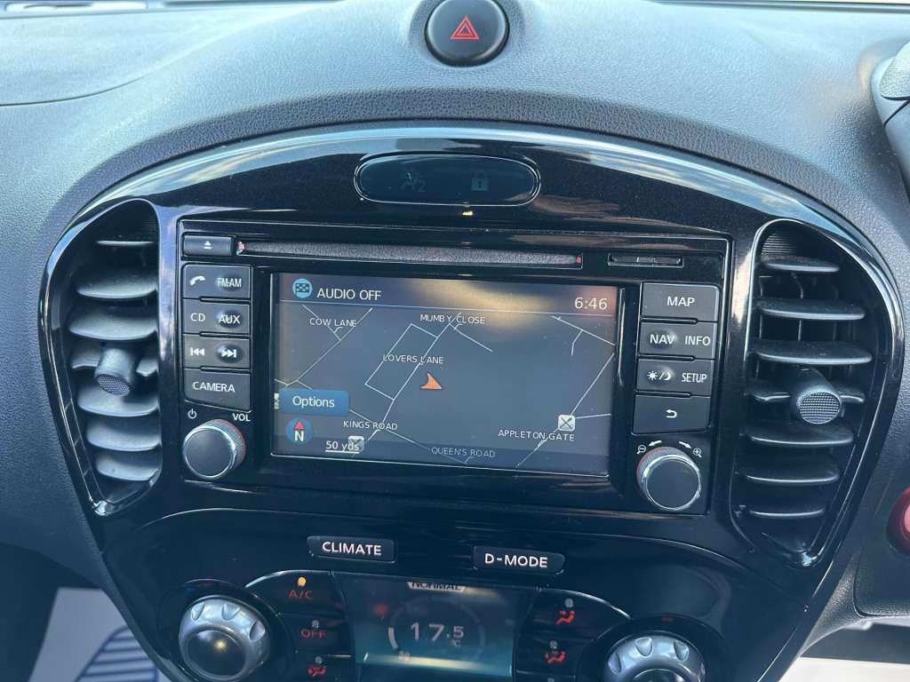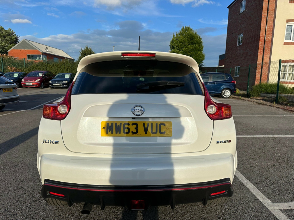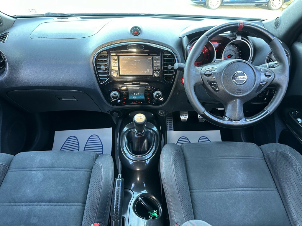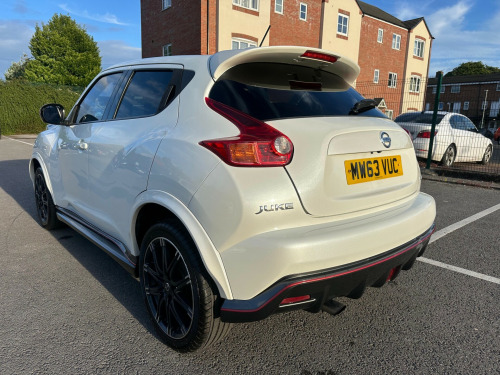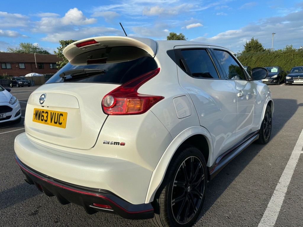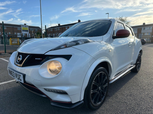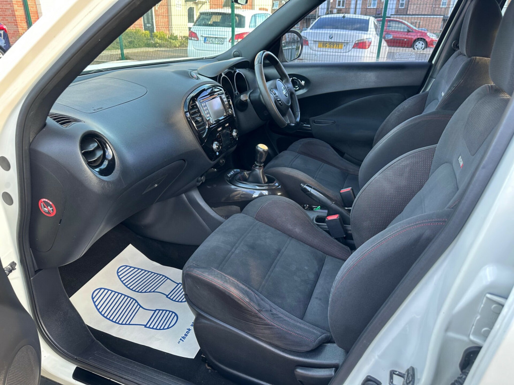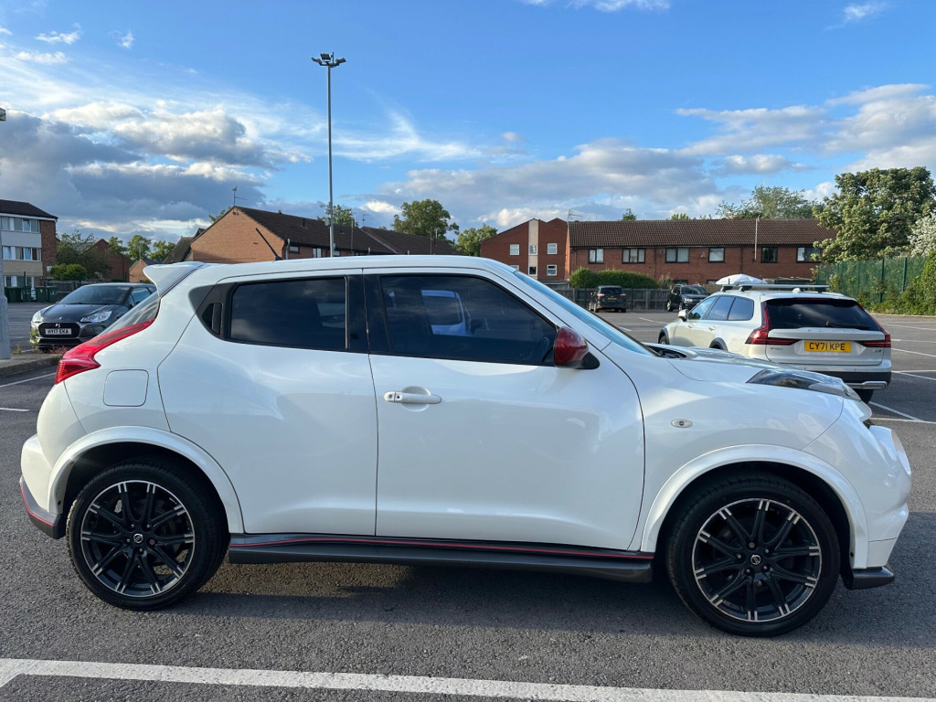 2013 Nissan Juke 1.6 Nismo - Sat Nav Heated Seats MOT Until May 2026 6 Months AA Warranty IncludedThis sporty 2013 Nissan Juke Nismo in pearl white is a bold and distinctive crossover, blending unique design with performance-inspired features and everyday practicality. With modern tech, heated sports seats, and striking Nismo styling, it's the perfect choice for drivers seeking something stylish, fun, and reliable.** Performance and Economy **Powered by a 1.6L petrol engine with manual transmission and sports suspension, the Juke Nismo delivers an engaging and dynamic drive. Its compact size makes it agile in the city, while cruise control and speed limiter add comfort on the motorway.** Features and Technology **Highlights include Nissan Connect satellite navigation with rear-view camera, Bluetooth connectivity with USB and AUX input, and heated front sports seats trimmed with Alcantara and leather. Automatic lights and wipers, electric folding heated mirrors, and climate control provide everyday convenience.** Comfort and Practicality **Inside, the Juke offers a driver-focused cockpit with push button start, intelligent key, sports pedals, and black headlining. Rear practicality is enhanced by a tonneau cover with underfloor storage, 60/40 split seats, and a spacious boot.** Safety and Security **Equipped with LED daytime running lights, multiple airbags, Isofix child seat mounts, ABS with brake assist, traction control, and electronic stability systems, the Juke provides peace of mind. Security features include remote central locking and immobiliser.** Ownership and Condition **Registered MW63 VUC and HPI clear, this Juke has been well maintained and remains in excellent condition throughout. It comes with all keys, original documentation, and a valid MOT until 5th May 2026, ensuring it's fully road-ready.** Included with Purchase **A 6 month AA warranty included, which can be extended12 month free AA breakdown cover£75 gift card toward your next MOT and serviceDrive away insurance available (T&Cs apply)Finance options available** Next Steps **This Nissan Juke Nismo is a fantastic choice and ready to drive away today. To book a test drive, request a personalised video walkaround, or reserve this car, call us on +44 7863 107747 or visit our website at www.iandbcarsvaletingltd.co.uk uetooth system, colour rear view camera, cruise control + speed limiter, electric speed sensitive power steering, nissan connect sat nav system, push button starter, service interval indicator, trip computer, sports suspension, 6 speakers, aux input, steering wheel mounted audio controls, stereo radio/cd player and mp3 facility, usb port, 2 speed wipers+variable intermittent wipe, automatic headlights, automatic rain sensing wipers, black headlamp bezels, body colour bumpers, body colour door handles, electric door mirrors, electric folding door mirrors, electric front/rear windows, front and rear bumper, front grille, heated door mirrors, led daytime running lights, privacy glass, rear spoiler, rear wiper, red door mirrors, side skirts, sports body kit, sports exhaust system, 12v socket, 60/40 split folding rear seat, alcantara/leather steering wheel, anthracite velour floor mats, black headlining, climate control, cloth upholstery, front armrest, front cupholders x 2, front door pockets with bottle holders, front head restraints, front seat belt pre-tensioners with load limiters, glovebox, heated front seats, height adjustable driver, internal chrome door handles, isofix child seat preparation, luggage area under floor storage box, map reading lamp, passenger seat back pocket, rear headrests, rear tonneau cover integrated into tailgate, sports pedals, sports seats, steering wheel rake adjustment, abs + ebd + eba, child locks on rear doors, driver and passenger airbags, driver and passenger side airbags, esp + traction control, front and rear curtain airbags, height adjustable front seatbelts, passenger airbag deactivate switch, three 3 point rear seatbelts, alarm, immobiliser, intelligent key, remote central locking, black centre console, 18'' alloy wheels, space saver spare wheel, 18'' Alloys