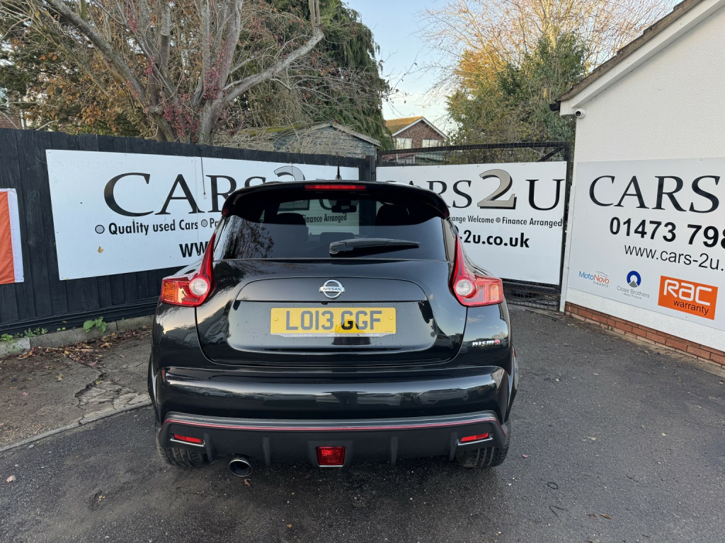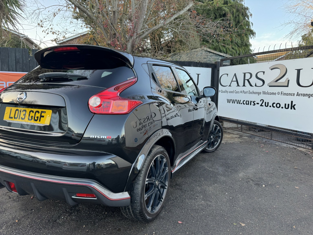Cars2u - Quality Used Cars with a Personal Touch, , , Established in 2012, Cars2u is a family-run business dedicated to providing quality used vehicles with a friendly ,no-pressure approach. Conveniently located on the outskirts of Ipswich, we have excellent transport links via the A12 and A14 and are just a 10 minute drive from Ipswich train station. , At Cars2u , every vehicle we sell is HPI clear and undergoes a full inspection to ensure it meets our high standards .For added peace of mind ,all cars come with an RAC warranty. We also offer finance options ,part exchange and nationwide delivery, making it easier than ever to find your perfect car. , Our focus is on customer satisfaction, providing a relaxed and professional service without the pressure of a hard sell. whether youre looking for your next car or simply exploring your options were here to help. , Visit Cars2u today and experience a stress-free way to buy a car. , , WE ARE VERY PLEASED TO OFFER THIS VERY GOOD LOOKING VERY CLEAN 2013 NISSAN JUKE 1.6 DiG-T NISMO , GOOD SPEC ,SHE HAS COVERED A MEAR 84,000 MILES FROM NEW HAS A GOOD SERVICE RECORD ,SHE WILL BE SERVICED WHEN SOLD AS WELL AS A CURRENT MOT UNTILL 07/2026 AND WILL COME WITH A 3 MONTH RAC WARRANTY FOR HER NEW OWNERS COMPLETE PEACE OF MIND.