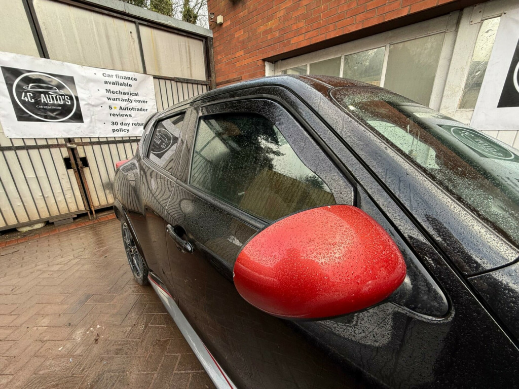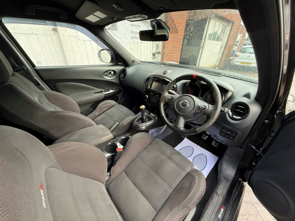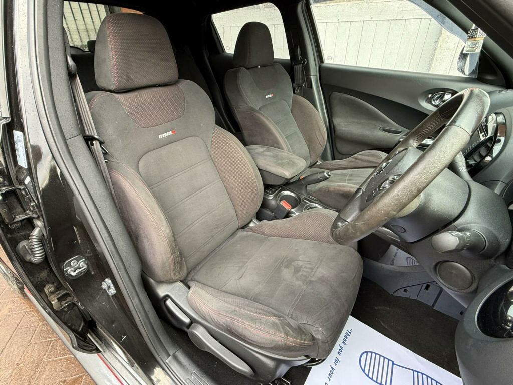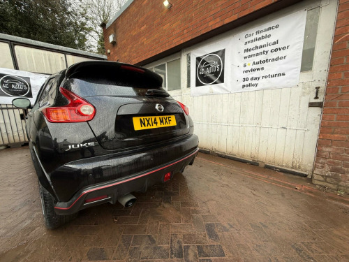 This 2014 Nissan Juke DIG-T Nismo offers a thrilling driving experience with its impressive 0-62mph acceleration of just 7.8 seconds. This particular model, in the Nismo trim, is equipped with a potent 1.6L petrol engine, delivering both performance and efficiency. Convenience is key with features like Intelligent Key for keyless entry, allowing you to unlock and start the car without reaching for your keys. The integrated Bluetooth telephone system ensures you can stay connected on the go, while the colour reversing camera, complete with parking assistance, makes manoeuvring in tight spaces effortless. For added comfort, the front seats are heated, perfect for those colder mornings.The DIG-T Nismo variant stands out from other Jukes thanks to its sporty enhancements and performance focus. The rapid acceleration highlights its dynamic capabilities, offering a more engaging drive compared to standard models. The combination of the powerful 1.6L engine and the Nismo specific tuning means this Juke is designed for those who appreciate spirited driving. Furthermore, the inclusion of practical features like the reversing camera and Bluetooth connectivity ensures that this performance oriented vehicle is also well suited for everyday use. v socket - front, 18in alloy wheels, 3 adjustable rear head restraints, 60-40 split rear folding seats, abs - anti lock brakes, aux-in socket, airbag - driver, airbag - front passenger, airbags - curtain, airbags - side, auto rain sensing wipers, automatic lighting system, black bezel combi lights, black headliner, bluetooth telephone integration, body coloured door mirrors, body coloured handles, brake assist, branded mats, bumpers - body coloured, cd radio with mp3 playback, chrome exhaust finisher, chrome interior door handles, climate control air conditioning, colour reversing camera, cruise control, driver seat height adjustment, ebd - electronic brakeforce distribution, esp - electronic stability programme, electric folding and heated door mirrors, electric speed-sensitive power steering, engine immobiliser, front armrest, front cupholders x2, front door pockets with drinks bottle holders, front fog lights, front map reading lights, front and rear electric windows, glovebox, isofix child seat anchoring points, intelligent key, led daytime running lights, nismo aero package -front and rear bumpers and side skirts, nismo badges front and rear, nismo front entry guards, nismo front grille, nissan connect with touch-screen navigation system, nissan dynamic control system, passenger airbag cut-off switch, passenger seat back pockets, pollen filter, rear door child locks, rear privacy glass, rear tonneau cover integrated into tailgate, remote central locking, reversing camera, roof spoiler, seats - heated front, seats - sports, signature red door mirrors and detail line, speakers x6, speed limiter, steering wheel - alcantara-leather with red stitching, steering wheel mounted audio controls, tilt adjustable steering wheel, trip computer, usb port