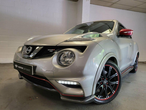 Stunning Nissan Juke Nismo RS edition finished in metallic silver fitted with many extras like:, *18 Alloy wheels, *Alcantara sport seats, *Heated seats, *Rear camera, *Sport carbon look steering wheel, *Power fold mirrors, *Keyless entry and start, *Xenon lights, *Multi function steering wheel, *Tyre pressure monitor, *Upgraded exhaust system with remote control valve, *AUX/USB, *Digital climate control, *Sports mode, *Navigation system, *DAB radio, *Plus much more. Comes with 2x keys, service history and owners manuals. |Norton car sales is VAT registered and fully FCA approved so we can tailor a finance package to suit your needs and budget|Receive a part exchange value for your vehicle and get pre-approved for the finance before leaving home|All major debit and credit cards welcome|Part exchange welcome|Warranties available from £149 up to 36 months|Nationwide delivery service available|We are based in Dukinfield Cheshire|follow us on Instagram @nortoncarsales