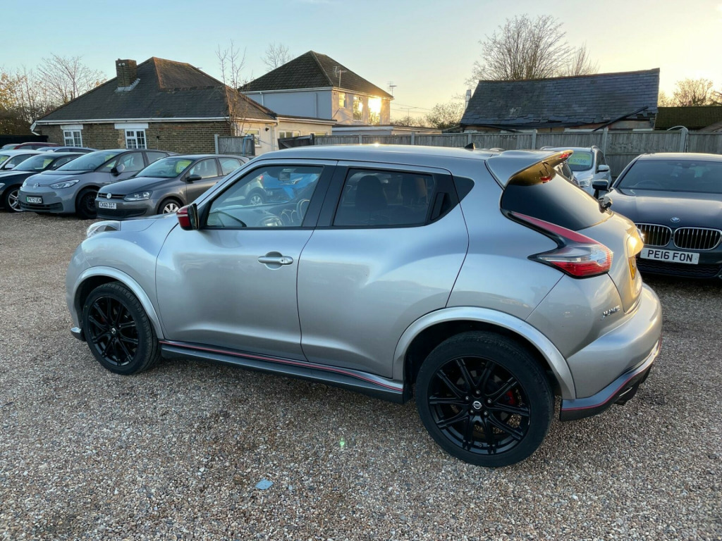 FREE 12 MONTHS AA BREAKDOWN COVER, ZERO DEPOSIT FINANCE AVAIL, 6 MONTHS NATIONWIDE WARRANTY, 2 Keys avail, Just been serviced, Hpi clear, all previous Mot's avail. We are located in CANVEY ISLAND, ESSEX SS8 0QDBoasting exceptionally low mileage for its age, this 2015 Nissan Juke DIG-T Nismo RS presents a compelling proposition. With only 44,400 miles on the clock, this Euro 6 compliant model has been meticulously maintained, evidenced by its last service on 27th November 2025 at 44,400 miles. It comes with a 12 month MOT provided on purchase and a 6 month warranty for your peace of mind. Inside, you'll find a host of desirable features including automatic climate control with a pollen filter, a colour reversing camera for effortless parking, and intelligent key with a push button start for convenient access. Enjoy the comfort of heated front seats and stay connected on the go with Bluetooth integration for your telephone.This Juke Nismo RS stands out from the crowd with its impressive performance, achieving 0-62mph in a swift 7.0 seconds, a figure that highlights its dynamic capabilities compared to similar vehicles. Furthermore, its placement in a low insurance group makes it an economical choice for many drivers. This combination of spirited performance, advanced technology, and cost effective ownership makes this Nissan Juke a truly attractive option.. 12V Socket - Front, 18in NISMO Alloy Wheels, 2 Speed Wiper with Variable Intermittent, 3 Adjustable Rear Head Restraints, 60-40 Split Rear Folding Seats, AUX Socket for MP3 Player, Airbag - Driver, Airbag - Front Passenger, Airbags - Curtain, Airbags - Side, Alcantara Armrest, Automatic Climate Control with Pollen Filter, Automatic Lights and Wipers, Badges - Front and Rear - NISMO RS, Black Bezel Combi Lights, Black Headliner, Body Coloured Handles, Boot Capacity with Flexi-Floor Board, Carbon-Look Finish, Chrome Interior Door Handles, Colour Reversing Camera, Combi-Meter - Nismo with Red Face, Cruise Control with Speed Limiter, DAB and Internet Radio with 6 Speakers, Diffuser - Nismo, Door Panels and Meter Hood - Suede, Drive Computer with Temperature Gauge, ESP ABS EBD and Brake Assist, Electric Folding and Heated Door Mirrors, Engine Immobiliser, Front Armrest, Front Cupholders x2, Front Door Pockets with Drinks Bottle Holders, Front Entry Guards - NISMO, Front Map Reading Lights, Front Seat Belt Height Adjustment, Front Seat Belts with Load Limiter and Pretensioners, Front and Rear Electric Windows, Front and Rear Red Brake Callipers, Gear Shift Indicator, Gloss Black Centre Console - Door Trim Finisher and Air Vent Rings, Glovebox, Height Adjustable Driver Seat, ISOFIX Child Seat Anchoring Points, Insurance Approved Alarm, Intelligent Key with Start Push Button, LED Signature Daytime Running Lights, Limited Slip Differential, Luxury Floor Mats, NISMO Front Grille, Nismo Aero Package, Nismo-Tuned Exhaust System, Nissan Dynamic Control System, NissanConnect, Passenger Airbag Cut-Off Switch, Power Assisted Steering - Speed Sensitive, Puncture Repair Kit, Rear Door Child Locks, Rear Privacy Glass, Rear Tonneau Cover Integrated into Tailgate, Rear Wiper with Intermittent, Seats - Heated Front, Signature Red Door Mirrors and Detail Line, Sports Exhaust Finisher - Single, Sports Suspension and Steering Set Up, Steering Wheel - Leather-Alcantara with Red Stitching and Centre Mark, Steering Wheel Mounted Audio Controls, TPMS - Tyre Pressure Monitoring System, Telephone - Bluetooth Integration, Tilt Adjustable Steering Wheel, Traction Control, USB Port, Upgraded Brakes. Full service history