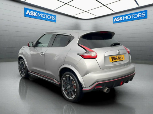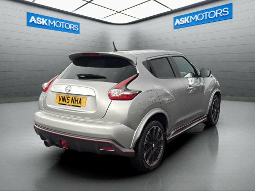 This 2015 Nissan Juke DIG-T Nismo RS is presented with a clear vehicle history check, offering peace of mind for its next owner. This distinctive model features a powerful 1.6 litre petrol engine and is presented in the Nismo RS trim. Inside, you'll find a range of convenient features designed to enhance your driving experience, including a rear parking camera with parking assistance, Bluetooth integration for seamless phone connectivity, keyless entry for effortless access, and climate control to maintain a comfortable cabin temperature. The Nismo RS variant of the Juke stands out with its impressive performance, achieving 0 to 60 miles per hour in just 7.8 seconds, a highlight that demonstrates its dynamic capability compared to other vehicles in its class. Furthermore, this particular model benefits from a low insurance group, making it a more economical choice for many drivers. 12V Socket - Front, 18in Alloy Wheels, 60-40 Split Rear Folding Seats, ABS - Anti Lock Brakes, AUX-In Socket, Airbag - Driver, Airbag - Front Passenger, Airbags - Curtain, Airbags - Side, Alarm, Body Coloured Handles, Brake Assist, Brake Calipers - Red, Bumpers - Body Coloured, Bumpers - Front and Rear - Nismo, Climate Control, Cruise Control, Diffuser - Nismo, Door Mirrors - Electric Adjustment and H, Driver Seat Height Adjustment, EBD - Electronic Brakeforce Distribution, ESP - Electronic Stability Programme, First Aid Kit, Front Fog Lights, Front and Rear Electric Windows, Gear Shift Indicator, Head Restraints - Rear, High Visibility Jackets, ISOFIX Child Seat Anchoring Points, Immobilise