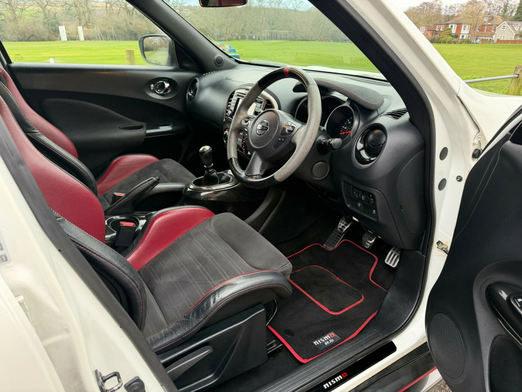 **Appointment Only** 15 Reg - Pearl White With Recaro Leather/Suede Sports Seats, This 1.6 Petrol Juke Nismo RS Comes With A Huge Specification Which Includes: Factory Nismo Recaro Bucket Seats, Factory Colour Touch Screen Satelitte Navigation, Digital Climate Control, Trip Computer, CD/USB/AUX/DAB/ Bluetooth Streaming, With Fingertip Controls, Bluetooth Phone, Reversing Camera, 4x Electric Windows, Electric (Power Folding) Mirrors, Keyless Entry & Go, 18'' Alloy Wheels, Driver Modes, Eco,Sport & Normal, Front Fogs, Arm Rest, Fitted Nismo Mats, Privacy Glass, Remote Central Locking, Comes With A Full Service History (5 Stamps) Including Coming With A MOT Until 30th November 2026, ULEZ Friendly, Amazingly Rare Fine A Pearl White Nismo RS With The Super Rare Recaro Seats, Drives superbly so any inspection welcome, - HPI Clear, Part Exchange welcome. **Debit/Credit Cards Accepted** **Open 7 Days a week** **POOR CREDIT NO PROBLEMS - Finance available (subject to status)**