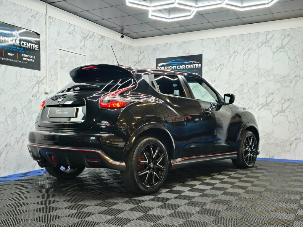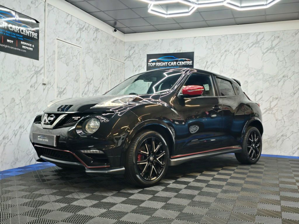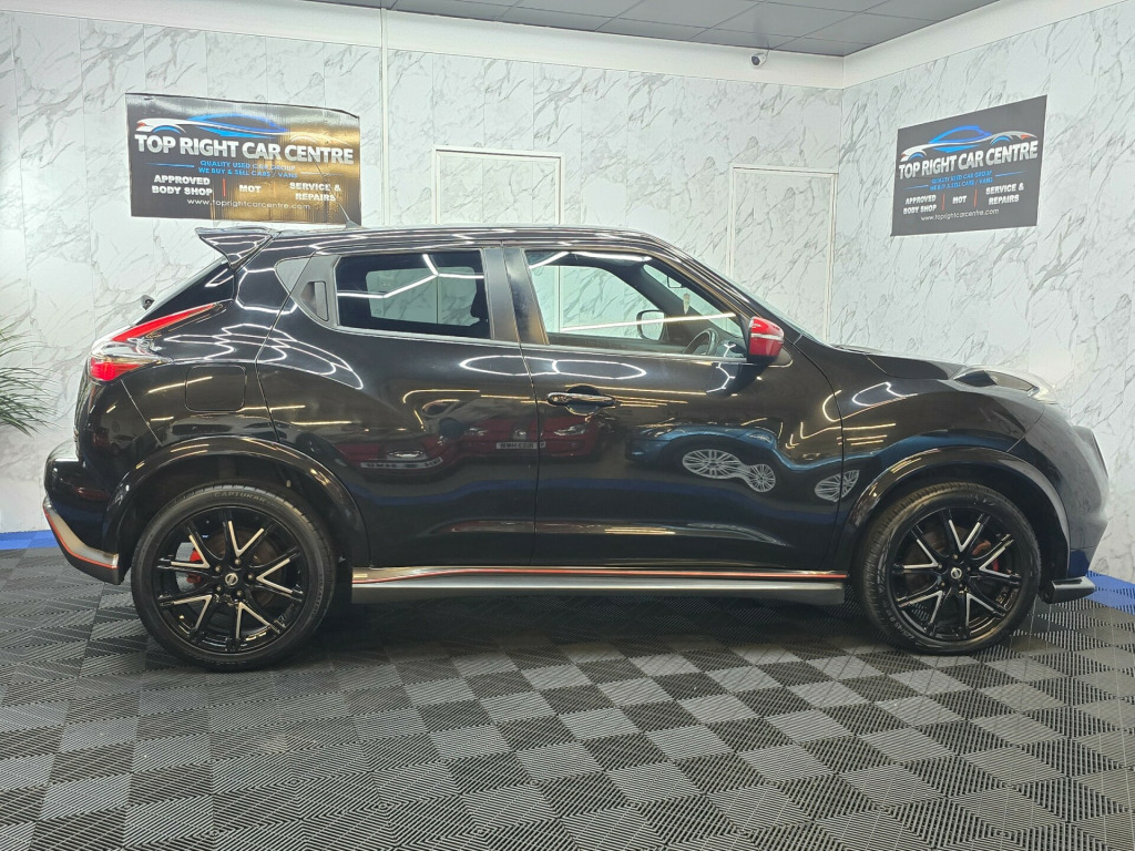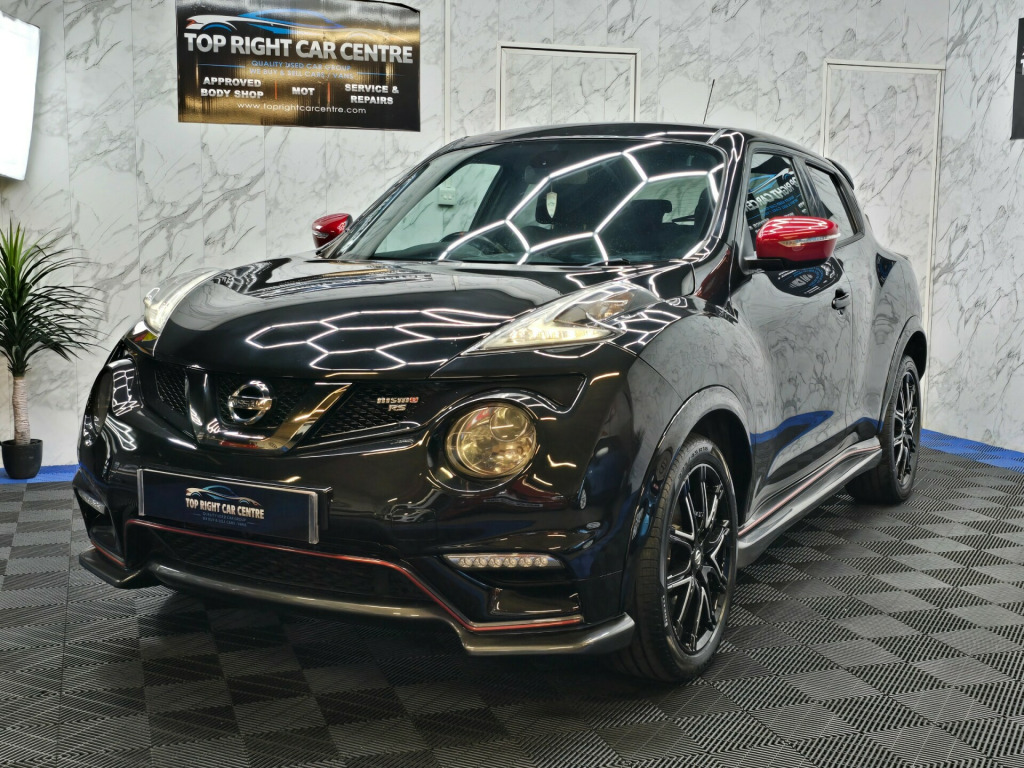 *** NIL DEPOSIT FINANCE AVAILABLE ***6 MONTHS WARRANTY AND BREAKDOWN COVER WITH THIS CAR.Low mileage 53k miles only.FULL SERVICE HISTORY. FULL MOT on sale. Fresh service just been done with suspension full arm, track and tie rods, both front droplinks replaced.This stunning Nissan Juke has been sourced directly from its Previous Private Owner. Every now and again, a car comes into stock at Top Right Car Centre, that you cannot help but fall in love with.Top Spec Nismo RS has massive centre touch screen SATNAV, reversing camera, alkantara interior with heated seats, all electric windows, privacy glass, auto folding electric side mirrors, driving modes, digital climate control, daytime running LED lights, cruise control. Clean Car in Black colour. Great comfortable family car. Well maintained body work and interior. Bullet fast response. Checked by our engineers. Professionally detailed. Good reliable runner. Price checked. We've just completed a full pre delivery inspection on the car to give you complete piece of mind. central locking key. Smooth gear box. Clean alloy wheels. Excellent condition tyres. Multimedia has Bluetooth DABRADIO CD mp3 USB AUX. Run with no fault strong reliable engine. Good fuel economy. First to see will buy it this well looked after car. cat N. p/x welcome. We do price our cars/van as competitively as possible and because of this we sell cars/vans very quickly. BE QUICK! MISS IT - MISS OUT. With so much variety, quality and highly rated award winner 2024, it is no wonder we are super busy all the time. Why Buy From Top Right Car Centre?Thoroughly Inspected Cars. All our vehicles are quality-checked and HPi verified, giving you peace of mind with every purchase.Multi Award-Winning Family Business. As a trusted family-run business, we have earned awards for our customer service and expertise.Hand-Picked, Quality Cars. We carefully select only the finest cars with full service histories, so you can drive away with confidence.Test Driven for Assurance. Each car is personally test-driven by our team, ensuring it meets our high standards.Delivery Service available. v socket - front, aux socket for mp3 player, dab and internet radio with 6 speakers, nissanconnect, telephone - bluetooth integration, usb port, 18in nismo alloy wheels, badges - front and rear - nismo rs, black bezel combi lights, body coloured handles, diffuser - nismo, electric folding and heated door mirrors, front and rear electric windows, front and rear red brake callipers, nismo front grille, nismo aero package, puncture repair kit, rear privacy glass, signature red door mirrors and detail line, sports exhaust finisher - single, 2 speed wiper with variable intermittent, 3 adjustable rear head restraints, 60-40 split rear folding seats, alcantara armrest, automatic climate control with pollen filter, black headliner, boot capacity with flexi-floor board, carbon-look finish, chrome interior door handles, door panels and meter hood - suede, front armrest, front cupholders x2, front door pockets with drinks bottle holders, front entry guards - nismo, front map reading lights, gloss black centre console - door trim finisher and air vent rings, glovebox, height adjustable driver seat, luxury floor mats, rear tonneau cover integrated into tailgate, seats - heated front, steering wheel - leather-alcantara with red stitching and centre mark, steering wheel mounted audio controls, tilt adjustable steering wheel, airbag - driver, airbag - front passenger, airbags - curtain, airbags - side, esp abs ebd and brake assist, engine immobiliser, front seat belt height adjustment, front seat belts with load limiter and pretensioners, isofix child seat anchoring points, insurance approved alarm, intelligent key with start push button, passenger airbag cut-off switch, rear door child locks, rear wiper with intermittent, traction control, upgraded brakes, automatic lights and wipers, led signature daytime running lights, colour reversing camera, combi-meter - nismo with red face, cruise control with speed limiter, drive computer with temperature gauge, gear shift indicator, limited slip differential, nismo-tuned exhaust system, nissan dynamic control system, power assisted steering - speed sensitive, sports suspension and steering set up, tpms - tyre pressure monitoring system