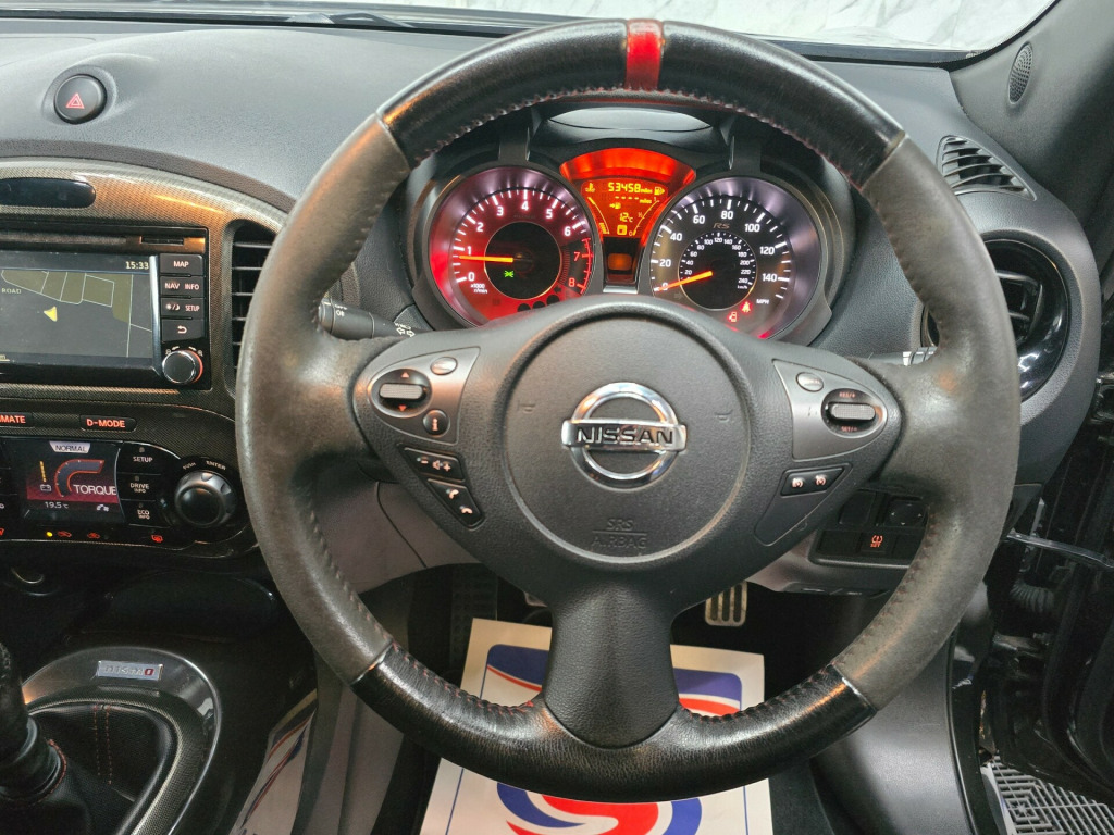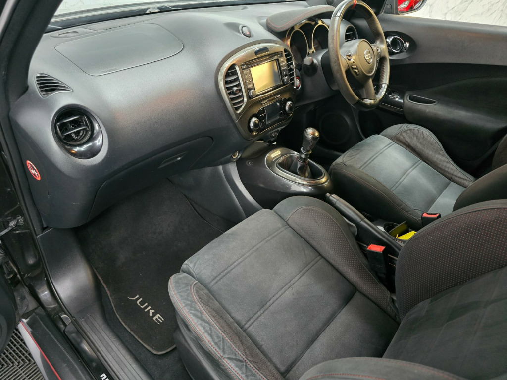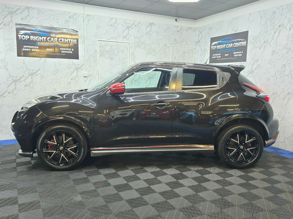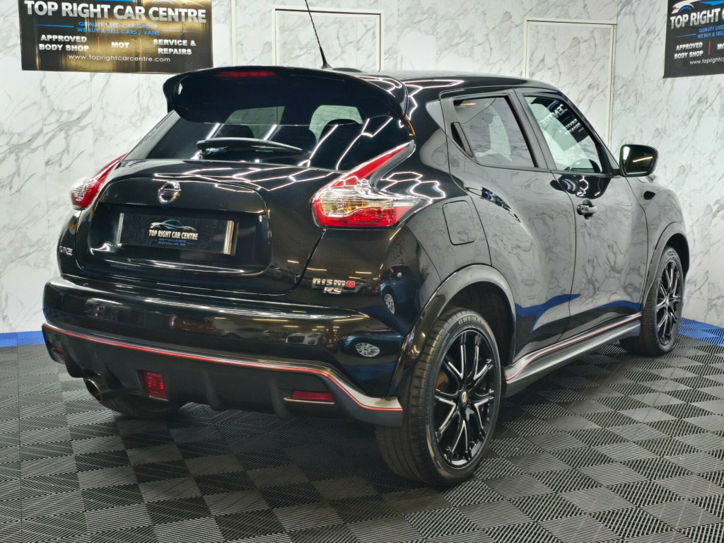 *** NIL DEPOSIT FINANCE AVAILABLE ***6 MONTHS WARRANTY AND BREAKDOWN COVER WITH THIS CAR.Low mileage 53k miles only.FULL SERVICE HISTORY. FULL MOT on sale. Fresh service just been done with suspension full arm, track and tie rods, both front droplinks replaced.This stunning Nissan Juke has been sourced directly from its Previous Private Owner. Every now and again, a car comes into stock at Top Right Car Centre, that you cannot help but fall in love with.Top Spec Nismo RS has massive centre touch screen SATNAV, reversing camera, alkantara interior with heated seats, all electric windows, privacy glass, auto folding electric side mirrors, driving modes, digital climate control, daytime running LED lights, cruise control. Clean Car in Black colour. Great comfortable family car. Well maintained body work and interior. Bullet fast response. Checked by our engineers. Professionally detailed. Good reliable runner. Price checked. We've just completed a full pre delivery inspection on the car to give you complete piece of mind. central locking key. Smooth gear box. Clean alloy wheels. Excellent condition tyres. Multimedia has Bluetooth DABRADIO CD mp3 USB AUX. Run with no fault strong reliable engine. Good fuel economy. First to see will buy it this well looked after car. cat N. p/x welcome. We do price our cars/van as competitively as possible and because of this we sell cars/vans very quickly. BE QUICK! MISS IT - MISS OUT. With so much variety, quality and highly rated award winner 2024, it is no wonder we are super busy all the time. Why Buy From Top Right Car Centre?Thoroughly Inspected Cars. All our vehicles are quality-checked and HPi verified, giving you peace of mind with every purchase.Multi Award-Winning Family Business. As a trusted family-run business, we have earned awards for our customer service and expertise.Hand-Picked, Quality Cars. We carefully select only the finest cars with full service histories, so you can drive away with confidence.Test Driven for Assurance. Each car is personally test-driven by our team, ensuring it meets our high standards.Delivery Service available. v socket - front, aux socket for mp3 player, dab and internet radio with 6 speakers, nissanconnect, telephone - bluetooth integration, usb port, 18in nismo alloy wheels, badges - front and rear - nismo rs, black bezel combi lights, body coloured handles, diffuser - nismo, electric folding and heated door mirrors, front and rear electric windows, front and rear red brake callipers, nismo front grille, nismo aero package, puncture repair kit, rear privacy glass, signature red door mirrors and detail line, sports exhaust finisher - single, 2 speed wiper with variable intermittent, 3 adjustable rear head restraints, 60-40 split rear folding seats, alcantara armrest, automatic climate control with pollen filter, black headliner, boot capacity with flexi-floor board, carbon-look finish, chrome interior door handles, door panels and meter hood - suede, front armrest, front cupholders x2, front door pockets with drinks bottle holders, front entry guards - nismo, front map reading lights, gloss black centre console - door trim finisher and air vent rings, glovebox, height adjustable driver seat, luxury floor mats, rear tonneau cover integrated into tailgate, seats - heated front, steering wheel - leather-alcantara with red stitching and centre mark, steering wheel mounted audio controls, tilt adjustable steering wheel, airbag - driver, airbag - front passenger, airbags - curtain, airbags - side, esp abs ebd and brake assist, engine immobiliser, front seat belt height adjustment, front seat belts with load limiter and pretensioners, isofix child seat anchoring points, insurance approved alarm, intelligent key with start push button, passenger airbag cut-off switch, rear door child locks, rear wiper with intermittent, traction control, upgraded brakes, automatic lights and wipers, led signature daytime running lights, colour reversing camera, combi-meter - nismo with red face, cruise control with speed limiter, drive computer with temperature gauge, gear shift indicator, limited slip differential, nismo-tuned exhaust system, nissan dynamic control system, power assisted steering - speed sensitive, sports suspension and steering set up, tpms - tyre pressure monitoring system