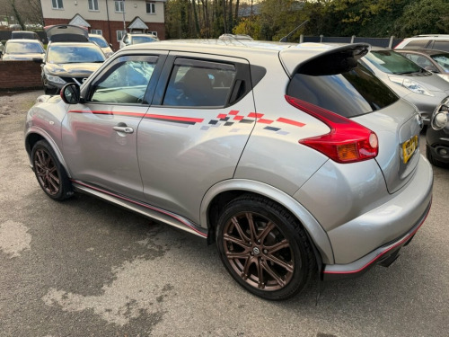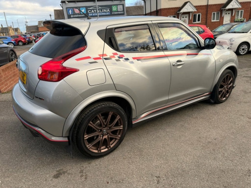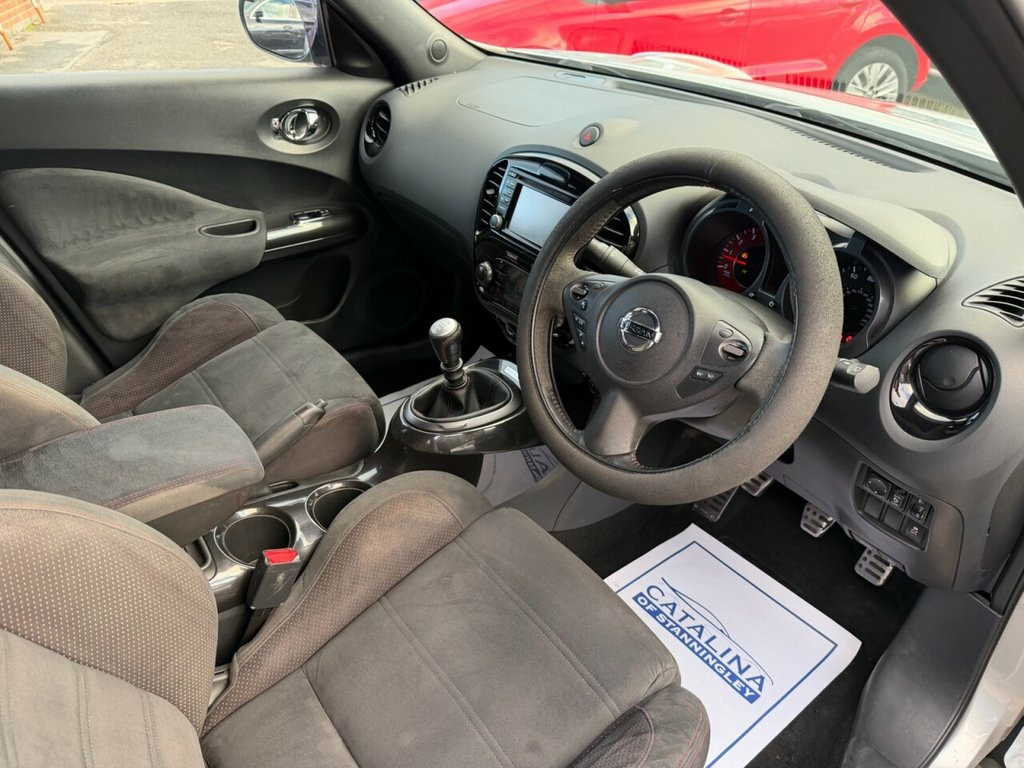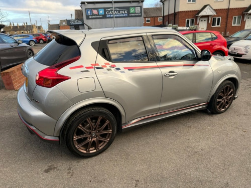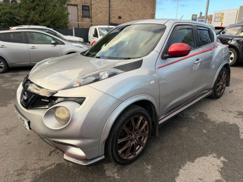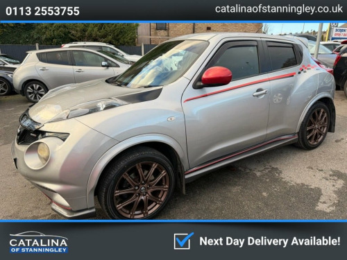 Nissan Juke 1.6 DIG-T Nismo – 200 PS | Great Spec | Just Serviced Petrol | Manual | Euro 5 | 200 PS | 96,000 Miles | MOT Until 25-11-2026 This Nissan Juke 1.6 DIG-T Nismo is a sporty, well-presented example of Nissan's performance compact SUV. With 96,000 miles from new, low miles for its age, and freshly serviced by us at 96k, it offers strong performance and great value for money. Powered by the impressive 1.6 DIG-T petrol engine producing 200 PS, it delivers lively acceleration, sporty handling, and an engaging drive. The Nismo styling and engineering enhancements give it a more dynamic feel than the standard Juke. Finished in silver with a dark cloth interior, this Nismo model comes equipped with satellite navigation, Bluetooth, a reverse camera, alloy wheels, and all the bold styling touches that make the Nismo version stand out. A fun, distinctive, and well-kept example of the Nissan Juke Nismo — offering sporty looks, great spec, and superb value. 2010 NISSAN JUKE 1.6 DIG-T Nismo SUV 5dr is offered to you for sale in Pudsey, Leeds, finished in silver this NISSAN JUKE 1.6 DIG-T Nismo SUV 5dr is one of many handpicked used cars that used car dealer, Catalina of Stanningley, Pudsey, Leeds have available for sale. 12V Socket - Front, 18in Alloy Wheels, 3 Adjustable Rear Head Restraints, 60-40 Split Rear Folding Seats, ABS - Anti Lock Brakes, AUX-In Socket, Airbag - Driver, Airbag - Front Passenger, Airbags - Curtain, Airbags - Side, Auto Rain Sensing Wipers, Automatic Lighting System, Black Bezel Combi Lights, Black Headliner, Bluetooth Telephone Integration, Body Coloured Door Mirrors, Body Coloured Handles, Brake Assist, Branded Mats, Bumpers - Body Coloured, CD Radio with MP3 Playback, Chrome Exhaust Finisher, Chrome Interior Door Handles, Climate Control Air Conditioning, Colour Reversing Camera, Cruise Control, Driver Seat Height Adjustment, EBD - Electronic Brakeforce Distribution, ESP - Electro