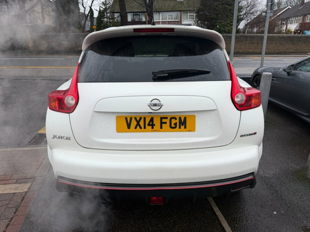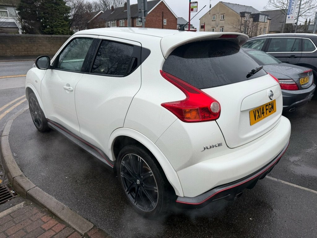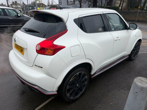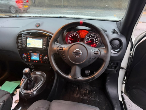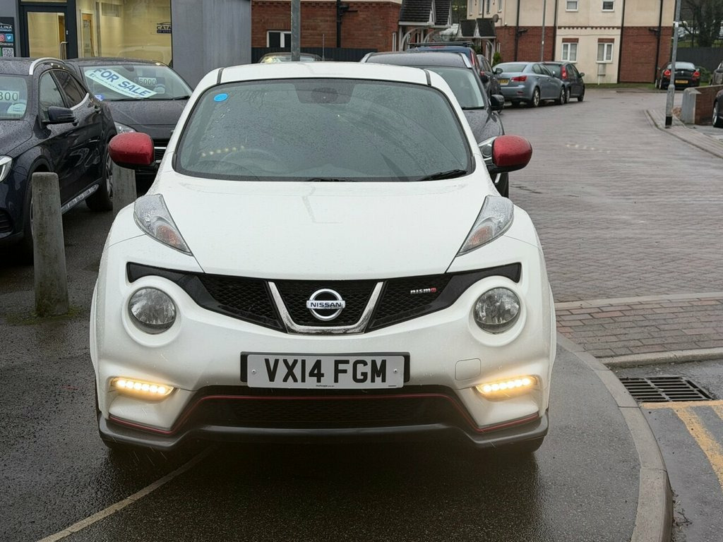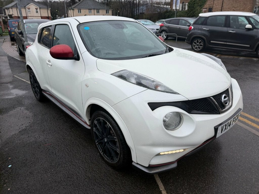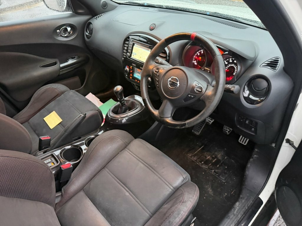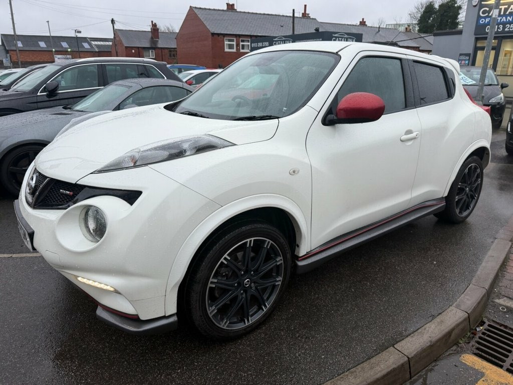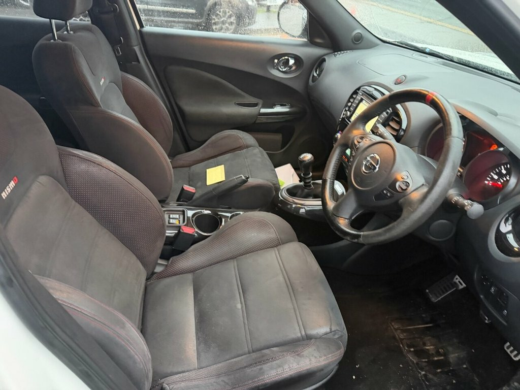 Nissan Juke 1.6 DIG-T Nismo – 200 PS | Just Serviced | Heated Seats | Rare Performance Model Petrol | Manual | Euro 5 | 200 PS | 65,411 Miles | MOT Until 27-01-2027 This Nissan Juke 1.6 DIG-T Nismo is a fantastic, low-mileage example of Nissan's rare and performance-focused compact SUV. With just 65,411 miles from new, a long MOT until January 2027, and just serviced by us, it is ready to drive away with confidence. Powered by the punchy 1.6-litre turbo petrol engine producing an impressive 200 PS, it delivers strong acceleration and an exciting driving experience, backed up by Nismo's sporty styling and handling upgrades. Finished in white with a dark interior, this Nismo model comes well equipped with satellite navigation, Bluetooth, alloy wheels, a reverse camera, and heated seats, combining performance with everyday comfort and practicality. A superb example of the Nissan Juke Nismo — offering rare power, standout looks, and excellent value. Vehicle Preparation & Warranty Every vehicle is supplied with a minimum of 6 months MOT. If the remaining MOT is less than 6 months at point of sale, the car will receive a FREE 12-month MOT prior to collection. All vehicles are fully up to date with servicing where required. We include a FREE 3-month engine warranty, provided on a return-to-base basis. For additional peace of mind, we offer comprehensive nationwide warranty upgrades covering both parts and labour. These policies can include cover for m 12V Socket - Front, 18in Alloy Wheels, 3 Adjustable Rear Head Restraints, 60-40 Split Rear Folding Seats, ABS - Anti Lock Brakes, AUX-In Socket, Airbag - Driver, Airbag - Front Passenger, Airbags - Curtain, Airbags - Side, Auto Rain Sensing Wipers, Automatic Lighting System, Black Bezel Combi Lights, Black Headliner, Bluetooth Telephone Integration, Body Coloured Door Mirrors, Body Coloured Handles, Brake Assist, Branded Mats, Bumpers - Body Coloured, CD Radio with MP3 Playback, Chrome Exhaust Finisher, Chrome Interior Door Handles, Climate Control Air Conditioning, Colour Reversing Camera, Cruise Control, Driver Seat Height Adjustment, EBD - Electronic Brakeforce Distribution, ESP - Electro
