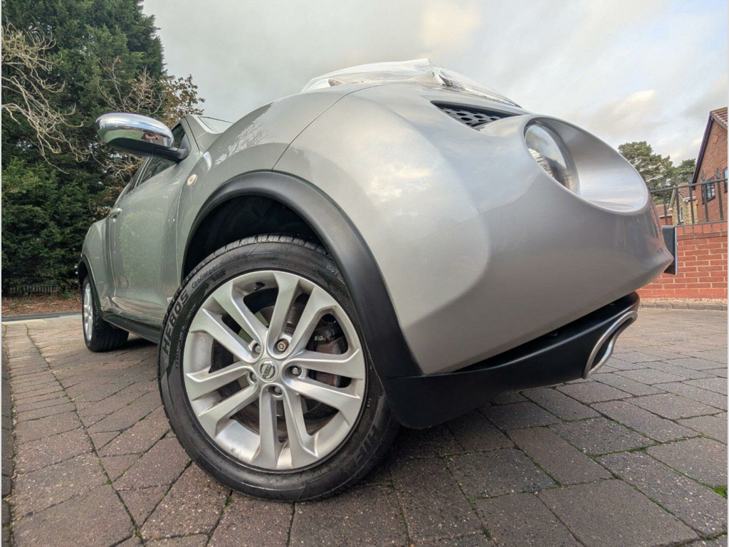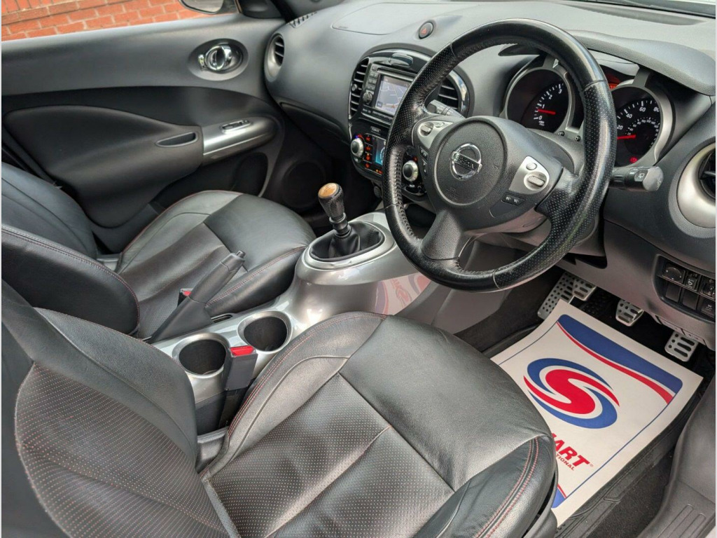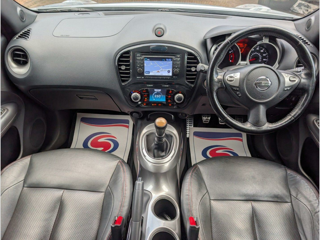 Full Service History, Last Serviced at 69,360 Miles, Timing Chain Replaced on 17th October 2024, MOTed Until 5th November 2026 :: 1.6 DiG-T Petrol Engine, 190 BHP, 6-Speed Manual Gearbox :: ECONOMICALLY; Averages 40.9 MPG! 50.4 MPG on Motorways! :: 5 Door SUV, 5 Seats, Blade Silver Metallic Paintwork with Mirrored Mirror Covers, Daytime Running Lights, Full Black Leather Upholstery with Red Stitching, Satin Grey Interior Trim :: Nissan Connect with Touch Screen Navigation, Reversing Camera, 17'' Sport Alloy Wheels, Heated Front Seats with 2-Levels, Cruise Control, Air Conditioning, Bluetooth Phone Connection, MP3 CD Player, USB & Auxiliary Connections, Bluetooth Music Streaming, All Electric Windows, Electric Fold-In Heated Mirrors, Multi-Functional Steering Wheel, Keyless Entry, Keyless Go, Remote Central Locking with Spare Key, Vehicle Start Button, Cupholders, Rear Boot Spoiler, Trip Computer, External Temperature Gauge, Auto Lights, Electric Speed Sensitive Power Steering, Front Foglamps, Privacy Glass, Electronic Stability Program, Engine Immobiliser :: Cost Over £25,000 When New in 2011! A stunning sporty Juke in the best colour!. 12V Socket - Front, 17in Alloy Wheels - Sport, 3 Adjustable Rear Head Restraints, 60-40 Split Rear Folding Seats, ABS - Anti Lock Brakes, AUX-In Socket, Airbag - Driver, Airbag - Front Passenger, Airbags - Side, Auto Rain Sensing Wipers, Automatic Lighting System, Bluetooth Telephone Integration, Brake Assist, Bumpers - Body Coloured, CD Radio with MP3 Playback, Climate Control with Pollen Filter, Cruise Control, Documents Glove Box, Drive Computer, Driver Seat Height Adjustment, EBD - Electronic Brakeforce Distribution, ESP - Electronic Stability Programme, Electric Door Mirrors, Electric Folding Door Mirrors, Electric Speed-Sensitive Power Steering, Engine Immobiliser, Front Cupholders x2, Front Fog Lights, Front and Rear Electric Windows, ISOFIX Child Seat Anchoring Points, Intelligent Key, Nissan Dynamic Control System, NissanConnect, Passenger Airbag Cut-Off Switch, Rear Door Child Locks, Rear Privacy Glass, Remote Central Locking, Reversing Camera, Seats - Heated Front, Speed Limiter, Steering Wheel - Leather and Gear Knob, Steering Wheel Mounted Audio Controls, Tilt Adjustable Steering Wheel, USB Port, Leather- Black with Red stitching.