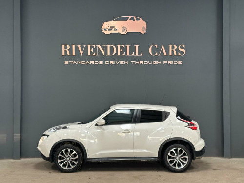 At Rivendell Cars we pride ourselves on delivering a bespoke 5 star service to all of our clients. This, along with providing only the finest hand picked cars is of the utmost importance to us. Discover this exceptional 2015 Nissan Juke DIG-T Tekna, boasting incredibly low mileage of just 33,000 miles and a clear vehicle history check, making it a truly stand out example. This Euro 6 compliant 1.6L petrol model has been cherished by only two owners, offering a superb combination of style and practicality. Inside, youll find a wealth of advanced features designed for your convenience and safety, including Bluetooth integration for seamless phone connectivity, a colour reversing camera with rear parking assistance, and automatic climate control with a pollen filter to ensure a comfortable cabin environment. The Tekna trim also benefits from a comprehensive safety pack, featuring Blind Spot Assistance and a 360 degree camera for enhanced all round visibility, alongside keyless entry and a push button start thanks to the intelligent key system. This Nissan Juke DIG-T Tekna offers a compelling driving experience, highlighted by its brisk acceleration from 0-62mph in just 8.0 seconds, demonstrating its lively performance. Its low insurance group rating further enhances its appeal, suggesting lower running costs compared to many similar vehicles. With its combination of advanced technology, low ownership, minimal mileage, and impressive performance figures, this Juke represents a smart choice for anyone seeking a distinctive and well equipped compact car.