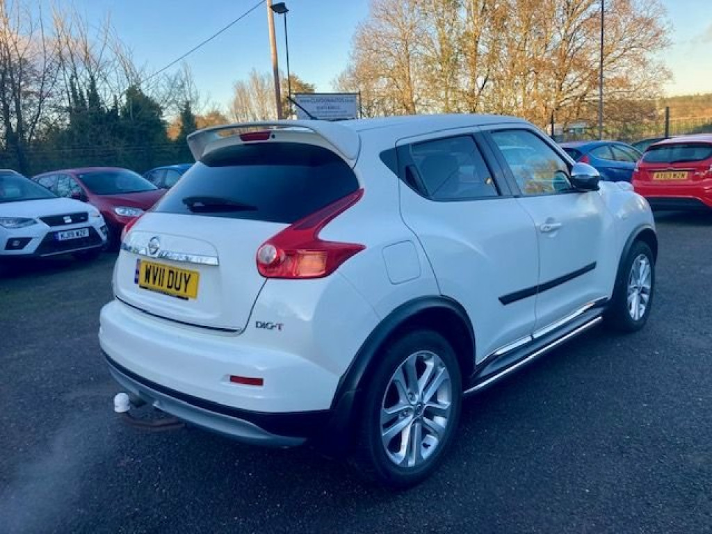 A CREDIT TO THE PREVIOUS OWNER WITH SERVICE HISTORY, WARRANTY AND GREAT SPEC This Nissan Juke DIG-T Tekna from 2011 offers excellent provenance, having had only two owners. Under the bonnet, you'll find a responsive 1.6 litre petrol engine. Inside, the Tekna trim ensures a comfortable experience with climate control, complete with a pollen filter, and heated front seats for those colder days. Manoeuvring is made easier thanks to the integrated reversing camera and the automatic lighting system ensures visibility is always optimised. Stay connected on the go with Bluetooth telephone integration. This Juke stands out with its impressive acceleration, reaching 0-60mph in just 8.0 seconds, indicating a lively performance compared to many similar vehicles. Furthermore, its low insurance group rating makes it an economical choice for many drivers. These combined factors, along with its well maintained history and desirable features, present a compelling package. 12V Socket - Front, 17in Alloy Wheels - Sport, 3 Adjustable Rear Head Restraints, 60-40 Split Rear Folding Seats, ABS - Anti Lock Brakes, AUX-In Socket, Airbag - Driver, Airbag - Front Passenger, Airbags - Side, Auto Rain Sensing Wipers, Automatic Lighting System, Bluetooth Telephone Integration, Brake Assist, Bumpers - Body Coloured, CD Radio with MP3 Playback, Climate Control with Pollen Filter, Cruise Control, Documents Glove Box, Drive Computer, Driver Seat Height Adjustment, EBD - Electronic Brakeforce Distribution, ESP - Electronic Stability Programme, Electric Door Mirrors, Electric Folding Door Mirrors, Electric Speed-Sensitive Power Steering, Engine Immobiliser, Front Cupholders x2,
