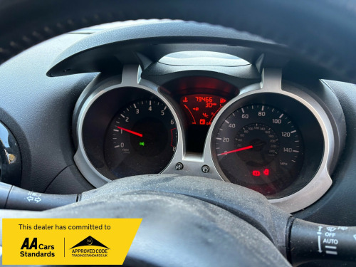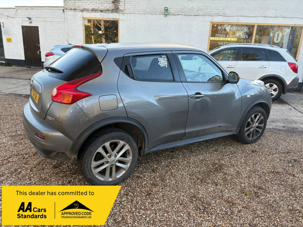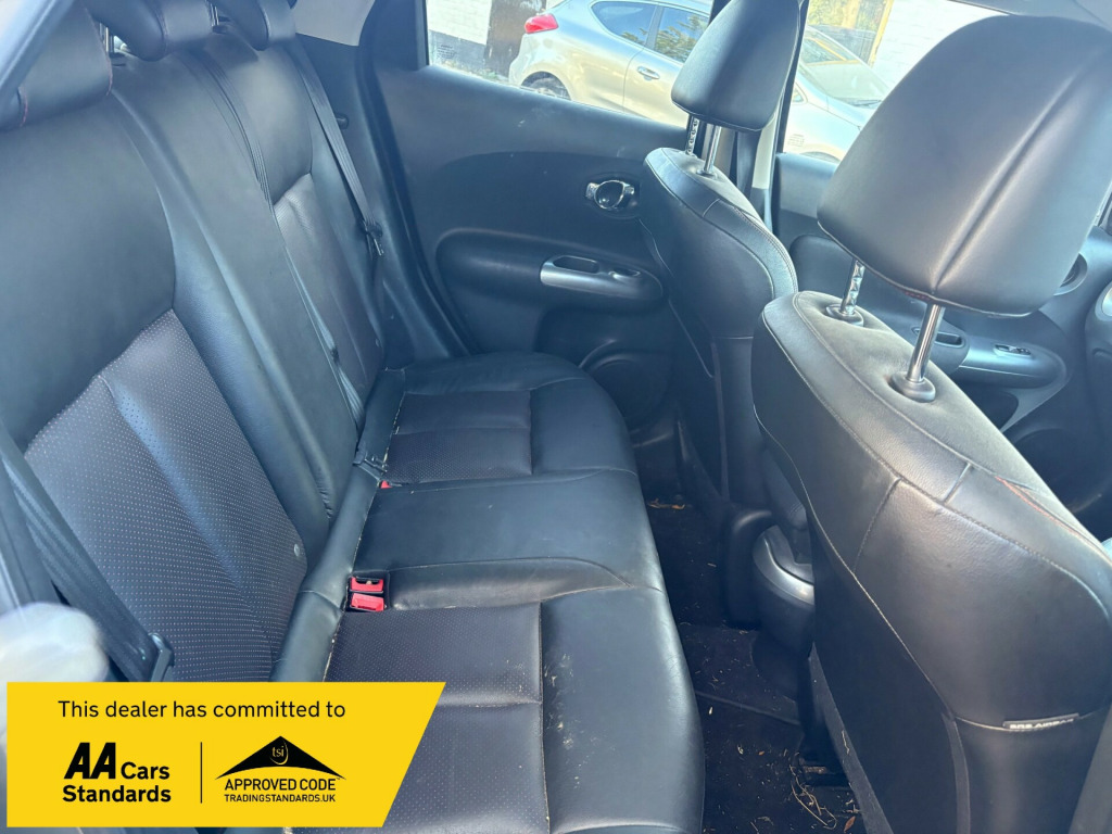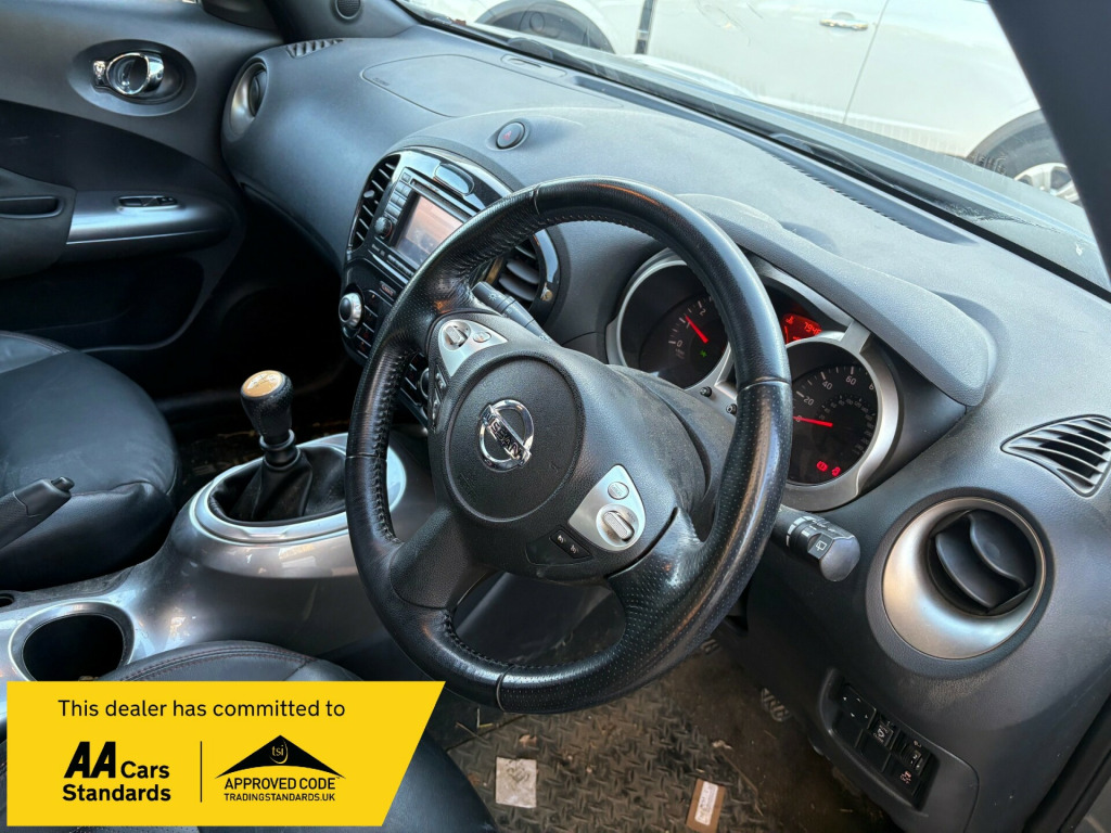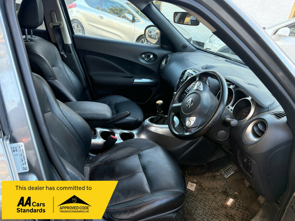 ARRIVING THIS WEEK THIS REALLY LOVELY TOP OF THE RANGE EXAMPLE 2011/11 NISSAN JUKE 1.6 DIG-TEC TEKNA WITH A LOW MILEAGE OF ONLY 79,000MILES , FINISHED IN A REALLY LOVELY METALLIC GREY WITH UNMARKED BLACK LEATHER INTERIOR AND A NICE SERVICE HISTORY , JUST LITERALLY HAD A BRAND NEW CLUTCH AND SLAVE CYLINDER , HAS SAT NAV AND A GREAT SPEC INDEED JUST TOO MUCH TO LIST BUT SUCH A LOVELY GENUINE EXAMPLE AND BEAUTIFUL TO DRIVE , WILL COME WITH NEW MOT AND 12 MONTHS PARTS AND LABOUR WARRANTY INCLUDED .RAN CARS AND COMMERCIALS LIMITED v socket - front, aux-in socket, bluetooth telephone integration, cd radio with mp3 playback, nissanconnect, usb port, 17in alloy wheels - sport, bumpers - body coloured, electric door mirrors, electric folding door mirrors, front and rear electric windows, rear privacy glass, 3 adjustable rear head restraints, 60-40 split rear folding seats, auto rain sensing wipers, climate control with pollen filter, documents glove box, driver seat height adjustment, front cupholders x2, seats - heated front, steering wheel - leather and gear knob, steering wheel mounted audio controls, tilt adjustable steering wheel, abs - anti lock brakes, airbag - driver, airbag - front passenger, airbags - side, brake assist, ebd - electronic brakeforce distribution, esp - electronic stability programme, engine immobiliser, isofix child seat anchoring points, intelligent key, passenger airbag cut-off switch, rear door child locks, remote central locking, automatic lighting system, front fog lights, cruise control, drive computer, electric speed-sensitive power steering, nissan dynamic control system, reversing camera, speed limiter