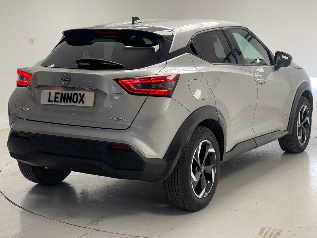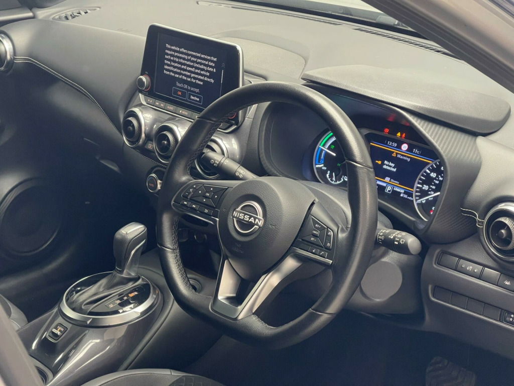 Discover this 2023 Nissan Juke N Connecta, a stylish and efficient compact SUV that's ready for your next adventure. This Euro 6 compliant model boasts a 1.6 litre petrol hybrid engine, offering a compelling blend of performance and economy. Keyless entry is a breeze with the Intelligent Key and Start Push Button, featuring convenient Walk Away Lock and Approach Unlock functions. Stay connected and entertained with USB AUX socket input and Bluetooth connectivity, while the LED headlights ensure excellent visibility. Parking is made simpler with rear parking sensors, and you can enjoy a comfortable cabin environment thanks to the automatic climate control.This Nissan Juke N Connecta stands out with its impressive fuel economy, achieving a remarkable 55 miles per gallon, which indicates it is more economical than many similar vehicles. Furthermore, its low insurance group rating suggests that running costs will be more affordable compared to other cars in its class. The low CO2 emissions also highlight its environmental credentials, making it a sensible choice for the conscious driver. in alloy wheels - two tone, 3 adjustable rear head restraints, 6 speakers, 60-40 split folding rear seats, 7in full colour tft screen combimeter, abs with ebd and brake assist, active ride control, active trace control, airbag - driver, airbag - front passenger, apple carplay and google android auto, auto dimming rear view mirror, automatic climate control, automatic hazard signal and emergency stop signal, cabin light front and rear, cruise control and speed limiter, dab radio, door handles body coloured, drive modes - sport-normal-eco, driver and passenger sun visor with vanity mirror, driver-passenger and rear seatbelt reminder, e-pedal step, esp - electronic stability programme, ev mode switch, electric handbrake with auto hold function, electronically adjustable - heated and auto folding door mirrors with integrated indicators, emergency and breakdown call, follow me home headlights, front armrest, front doors with bottle holders, front parking sensors, front and rear electric windows with one touch driver window, grab handles passenger and rear, height adjustable driver seat, height adjustable seatbelts, high beam assist, hill start assist, intelligent emergency braking with pedestrian and cyclist recognition, intelligent key and start push button with walk away lock and approach unlock functions, intelligent lane intervention, interior chrome door handles, led daytime running lights, led headlights, led rear fog light, led rear lights, lane departure warning, leather shift knob, leather steering wheel, luggage board, luggage space lighting, monoform sporty seats, multifunctional steering wheel, nissanconnect 8in touchscreen entertainment system, nissanconnect navigation with tomtom traffic, nissanconnect services, outside temperature sensor, power steering, puncture repair kit, rain sensing wipers, rear coat hanger - drivers side, rear console usb port, rear parking sensors, rear privacy glass, rear spoiler, rear view camera, side and curtain airbags, syntech leather knee pad, tpms - tyre pressure monitoring system, telescopic steering wheel adjustment, three blink turn signal, traffic sign recognition, two cup holders in the centre console, two rear isofix child seat anchorage point with top tether, usb-aux socket input and bluetooth connectivity, vdc - vehicle dynamic control, welcome light and console tray ambient lighting, wifi and voice recognition