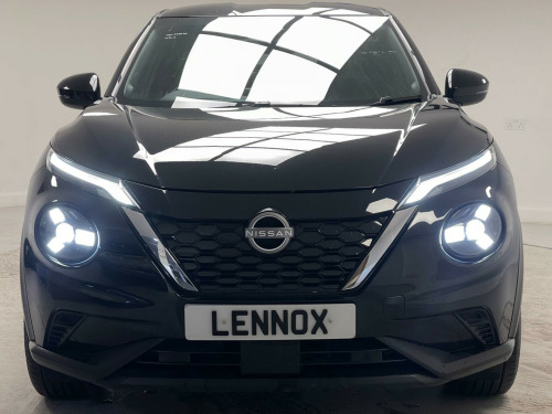 This 2024 Nissan Juke N Connecta is a superb example, having had only one owner since new. This stylish compact SUV features a 1.6 litre petrol hybrid engine, meeting Euro 6 emissions standards. It comes equipped with a rear view camera for easy parking assistance, and intelligent key functionality with walk away lock and approach unlock for seamless keyless entry. You'll also benefit from bright LED headlights, and the convenience of Apple CarPlay and Google Android Auto integration, all managed through an automatic climate control system.The Nissan Juke N Connecta offers excellent running costs, highlighted by an impressive fuel economy of 59 miles per gallon. This vehicle also sits in a low insurance group, making it an economical choice for many drivers. Furthermore, its low CO2 emissions indicate a more environmentally friendly performance compared to similar vehicles. These combined highlights make this Juke a smart and appealing option. .3in full colour tft screen combimeter, 17in alloy wheels, 3 adjustable rear head restraints, 6 speakers, 60-40 split folding rear seats, abs with ebd and brake assist, active ride control, active trace control, airbag - driver, airbag - front passenger, apple carplay and google android auto, auto dimming rear view mirror, automatic climate control, automatic hazard signal and emergency stop signal, bluetooth connectivity with usb a+c ports, cabin light front and rear, card holder on drivers sun visor, cruise control and speed limiter, dab radio, door handles body coloured, drive modes - sport-normal-eco, driver and passenger sun visor with vanity mirror, driver-passenger and rear seatbelt reminder, e-pedal step, esp - electronic stability programme, ev mode switch, electric handbrake with auto hold function, electronically adjustable - heated and auto folding door mirrors with integrated indicators, emergency and breakdown call, exterior mirrors painted pearl black, follow me home headlights, front armrest, front doors with bottle holders, front parking sensors, front and rear electric windows with one touch driver window, grab handles passenger and rear, height adjustable driver seat, height adjustable seatbelts, high beam assist, hill start assist, intelligent driver alertness, intelligent emergency braking with pedestrian and cyclist recognition, intelligent key and start push button with walk away lock and approach unlock functions, intelligent lane intervention, interior chrome door handles, led daytime running lights, led headlights, led rear fog light, led rear lights, lane departure warning, leather shift knob, luggage board, luggage space lighting, monoform sporty seats, multifunctional steering wheel, nissanconnect 12.3in touchscreen entertainment system, nissanconnect navigation with tomtom traffic, nissanconnect services, outside temperature sensor, power steering, puncture repair kit, rain sensing wipers, rear coat hanger - drivers side, rear console usb port, rear parking sensors, rear privacy glass, rear spoiler, rear view camera, shark fin antenna - solid black, side and curtain airbags, smooth synthetic leather steering wheel, syntech leather knee pad, tpms - tyre pressure monitoring system, telescopic steering wheel adjustment, three blink turn signal, traffic sign recognition, two cup holders in the centre console, two rear isofix child seat anchorage point with top tether, vdc - vehicle dynamic control, welcome light and console tray ambient lighting, wifi and voice recognition, windows - passenger - one touch, wireless phone charger