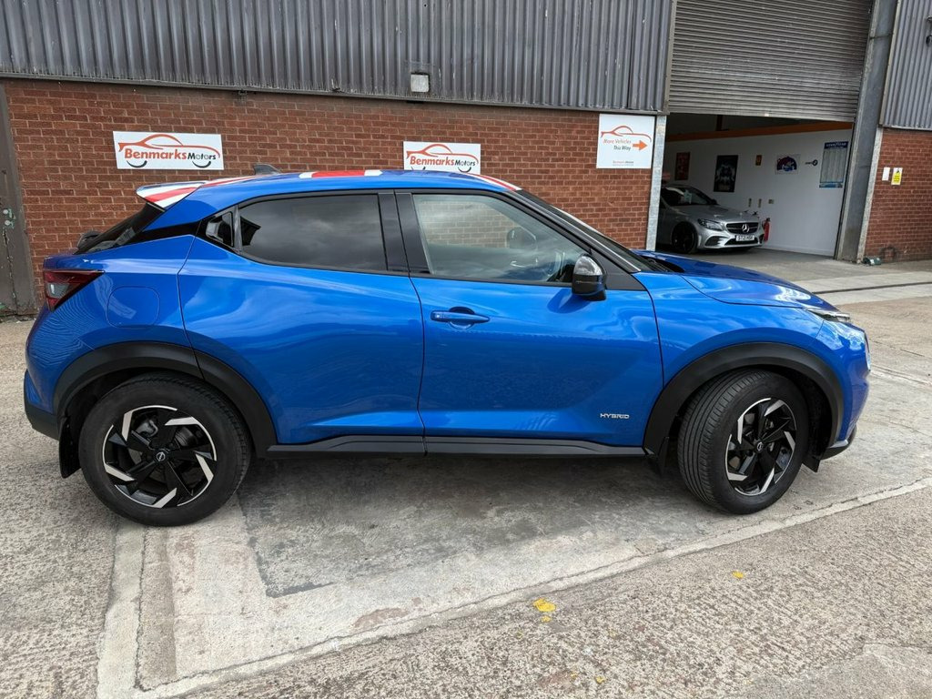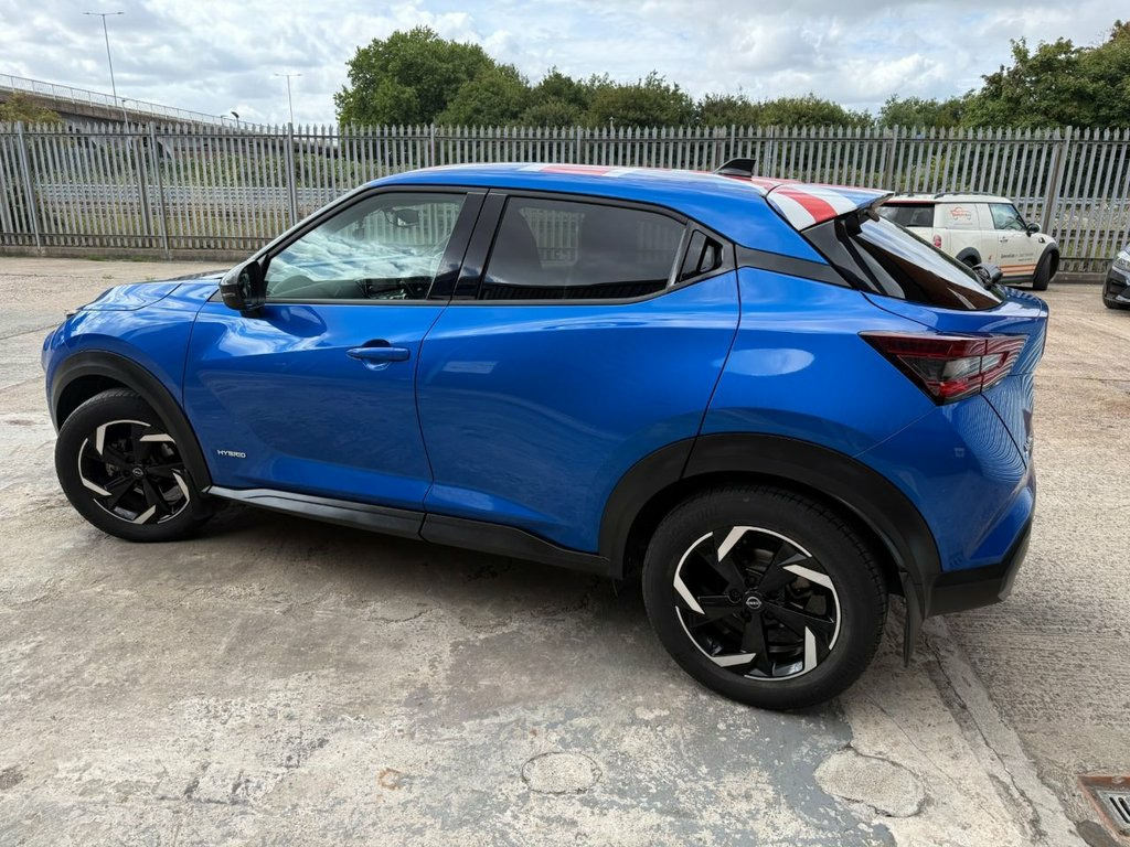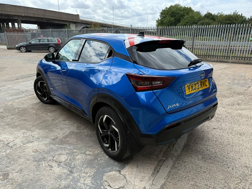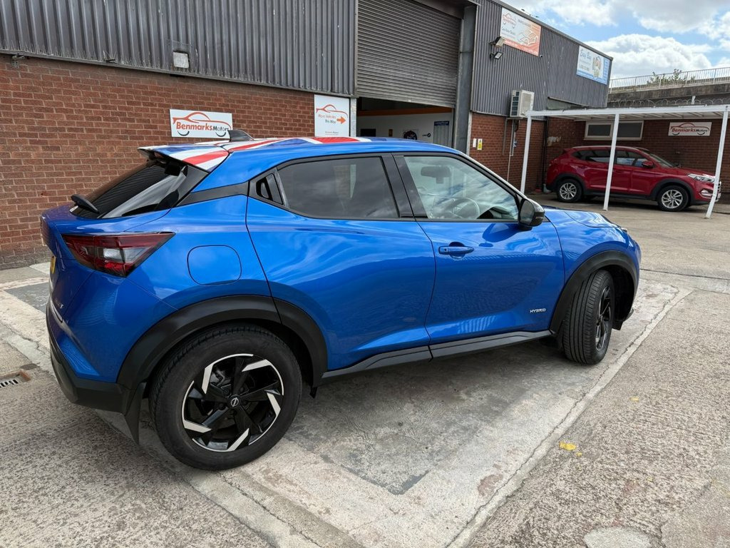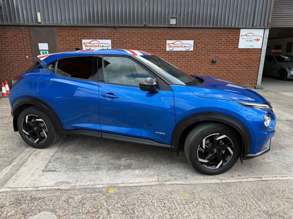 This 2023 Nissan Juke 1.6 N-Connecta Hybrid SUV was first registered on 31st March 2023 and has covered just 8,488 miles. Finished in eye-catching blue with a striking Union Jack roof, it's powered by a 1.6-litre petrol hybrid engine producing 143 PS and paired with an automatic gearbox. With just two previous keepers, this nearly-new car is still covered by Nissan's manufacturer warranty and roadside assistance until 31st March 2026 but will come with at least 6 Months warranty , with the option to extend. Car will come with a new service, making it a hassle-free ownership proposition. Annual road tax is just £195. This N-Connecta model offers a high level of specification, including modern tech, safety features, and stylish design throughout. It combines sharp, distinctive looks with hybrid efficiency and smooth automatic driving, making it an ideal choice for those looking for something practical, economical, and fun to drive. With low mileage, 6-Months Platinum Warranty, and a high-spec interior, this Juke offers incredible value and peace of mind — all wrapped in a bold, modern package that stands out from the crowd. 17in Alloy Wheels - Two Tone, 3 Adjustable Rear Head Restraints, 6 Speakers, 60-40 Split Folding Rear Seats, 7in Full Colour TFT Screen Combimeter, ABS with EBD and Brake Assist, Active Ride Control, Active Trace Control, Airbag - Driver, Airbag - Front Passenger, Apple CarPlay and Google Android Auto, Auto Dimming Rear View Mirror, Automatic Climate Control, Automatic Hazard Signal and Emergency St, Cabin Light Front and Rear, Cruise Control and Speed Limiter, DAB Radio, Door Handles Body Coloured, Drive Modes - Sport-Normal-Eco, Driver and Passenger Sun Visor with Vani, Driver-Passenger and Rear Seatbelt Remin, E-Pedal STEP, Electric Handbrake with Auto Hold Functi, Electronically Adjustab