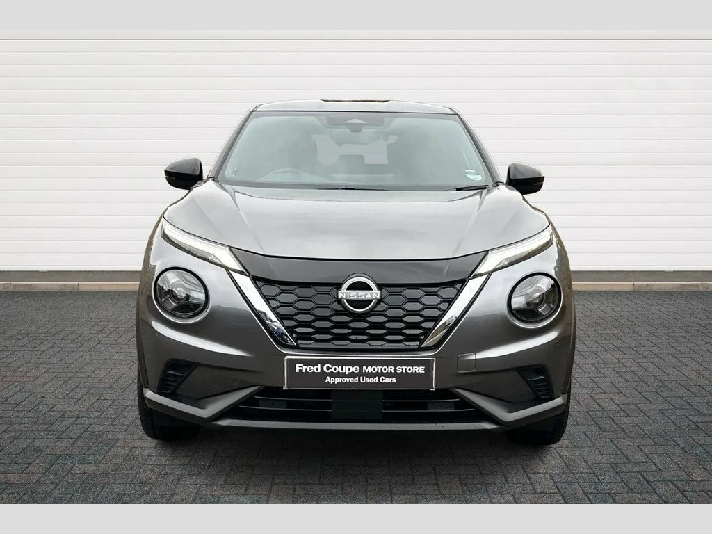Don't miss this 'great value' 2025 Nissan Juke HYBRID/ petrol Automatic N-Connecta grade is finished in blade silver with a sporty black cloth interior. Specification includes; USB/USC/wireless charging, i-key, front and rear parking sensors, a colour rear camera, satellite navigation and cruise and climate control. With low mileage and the balance of the Nissan 3 year/60,000 mile warranty this is a great car for those looking for a nearly new automatic with massive savings compared to purchasing new. Fred Coupe is a NISSAN and INFINITI authorised repairer and a multiple global award winner for customer service as well as a 4th generation family business. We pride ourselves on quality, reliability, great service and good value. *Buy online, visit www.fredcoupe.co.uk * 12.3in Full Colour TFT Screen Combimeter, 17in Alloy Wheels, 3 Adjustable Rear Head Restraints, 6 Speakers, 60-40 Split Folding Rear Seats, ABS with EBD and Brake Assist, Active Ride Control, Active Trace Control, Airbag - Driver, Airbag - Front Passenger, Apple CarPlay and Google Android Auto, Auto Dimming Rear View Mirror, Automatic Climate Control, Automatic Hazard Signal and Emergency St, Bluetooth Connectivity with USB A+C Port, Cabin Light Front and Rear, Card Holder on Drivers Sun Visor, Cruise Control and Speed Limiter, DAB Radio, Door Handles Body Coloured, Drive Modes - Sport-Normal-Eco, Driver and Passenger Sun Visor with Vani, Driver-Passenger and Rear Seatbelt Remin, E-Pedal STE