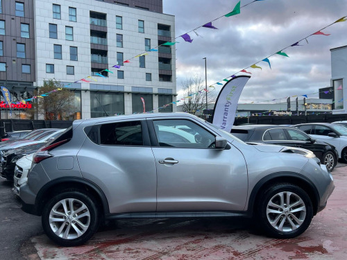 SELECT MOTORS (GB) DELIGHTED TO OFFER YOU THIS STUNNING NISSAN JUKE 1.6 N-CONNECTA 5DR IN SILVER COLOUR AND COMPLEMENTED WITH 17IN SPORT DESIGN ALLOY WHEELS. THIS VEHICLE HAS A HUGE SPECIFICATION WHICH INCLUDES THE FOLLOWING; SATELLITE NAVIGATION SYSTEM, REVERSING CAMERA, BLUETOOTH CONNECTIVITY FOR PHONE AND MEDIA, DAB-FM/AM RADIO, CRUISE CONTROL WITH SPEED LIMITER, AUX SOCKET FOR MP3 PLAYER, AUTOMATIC CLIMATE CONTROL, LED DAYTIME RUNNING LIGHTS, TYRE PRESSURE WARNING SYSTEM. THIS VEHICLE IS ULEZ EXEMPT. , WE ARE OFFERING NATIONWIDE DELIVERY ON ALL VEHICLE (PLEASE GET IN TOUCH DIRECTLY FOR DETAILS). WE CAN ALSO CONDUCT VIRTUAL VIEWINGS AND ACCOMMODATE ANY REQUESTS YOU MAY HAVE. ALL OUR ADVERTISED STOCK IS TEST-DRIVEN, INSPECTED BY OUR MECHANIC TO MAKE SURE OUR CUSTOMERS DRIVE AWAY WITH THE BEST QUALITY CARS. WE CAN PROVIDE A VIDEO WALK AROUND THIS VEHICLE UPON REQUEST. ALL OF OUR VEHICLES ARE SUPPLIED WITH A 3 MONTHS WARRANTY WITH EXTENDED OPTION. 12 MONTHS FREE AA BREAKDOWN COVER. FINANCE AVAILABLE.