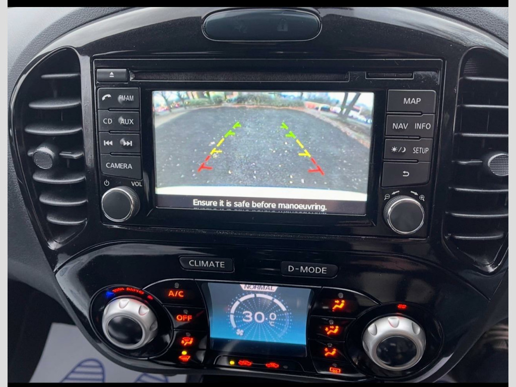Discover this 2014 Nissan Juke n-tec, a car with remarkably low mileage for its year, having covered just 62,559 miles. This particular Juke is powered by a 1.6 litre petrol engine and comes equipped with a colour reversing camera, offering helpful parking assistance. Stay connected on the go with Bluetooth telephone integration, and enjoy a comfortable driving environment thanks to the climate control air conditioning.The n-tec trim level ensures you benefit from these practical and convenient features. Furthermore, this Nissan Juke sits in a low insurance group, which can make it a more economical choice for many drivers compared to similar vehicles. Its combination of useful technology and cost saving potential makes it a compelling option. v socket - front, 18in alloy wheels, 3 adjustable rear head restraints, 60-40 split rear folding seats, abs - anti lock brakes, aux-in socket, airbag - driver, airbag - front passenger, airbags - curtain, airbags - side, black bezel combi lights, black centre console-door trim finishers, bluetooth telephone integration, body coloured door mirrors, body coloured handles, brake assist, bumpers - body coloured, cd radio with mp3 playback, chrome exhaust finisher, chrome interior door handles, climate control air conditioning, colour reversing camera, cruise control, door mirrors - gloss black, driver seat height adjustment, ebd - electronic brakeforce distribution, esp - electronic stability programme, electric door mirrors, electric speed-sensitive power steering, engine immobiliser, front cupholders x2, front door pockets with drinks bottle holders, front fog lights, front map reading lights, front and rear electric windows, glovebox, isofix child seat anchoring points, nissan connect with touch-screen navigation system, nissan dynamic control system, passenger airbag cut-off switch, passenger seat back pockets, pollen filter, rear door child locks, rear privacy glass, rear tonneau cover integrated into tailgate, remote central locking, speakers x6, speed limiter, steering wheel - leather and gear knob, steering wheel mounted audio controls, tilt adjustable steering wheel, trip computer, usb port