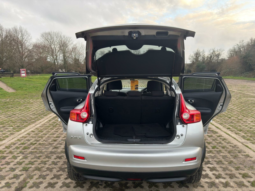 Nissan Juke 1.6 n-tec SUV 5dr Vehicle DetailsMileage: 68,451 miles (Warranted)Fuel Type: PetrolTransmission: ManualColour: SilverBody Type: SUVHPI Status: ClearULEZ Compliant / ULEZ FreeKey Features & SpecificationSatellite Navigation (SD Card)Climate Control18'' Alloy WheelsPrivacy GlassAir Conditioningn-tec SpecificationLow Insurance GroupVery Economical to RunCondition & DriveThis Nissan Juke has been very well maintained and looks and drives brilliantly.The 1.6 petrol engine is smooth and responsive, the gearbox and suspension operate perfectly, and the car offers a comfortable and confident drive. Clean interior, tidy exterior, and mechanically perfect - just buy and drive.Peace of MindHPI ClearMechanically Sound ThroughoutFRESH SERVICE, FRESH MOT, FREE BREAKDOWN COVER, NATIONWIDE DELIVERY AVAILABLEPart Exchange WelcomeView by Appointment Only SummaryA stylish, practical, and economical Nissan Juke n-tec, ULEZ compliant and ready to drive away.First to see will buy. v socket - front, 17in alloy wheels, 3 adjustable rear head restraints, 60-40 split rear folding seats, abs - anti lock brakes, aux-in socket, airbag - driver, airbag - front passenger, airbags - curtain, airbags - side, black bezel combi lights, black centre console-door trim finishers, bluetooth telephone integration, body coloured door mirrors, body coloured handles, brake assist, bumpers - body coloured, cd radio with mp3 playback, chrome exhaust finisher, chrome interior door handles, climate control air conditioning, colour reversing camera, cruise control, door mirrors - gloss black, driver seat height adjustment, ebd - electronic brakeforce distribution, esp - electronic stability programme, electric door mirrors, electric speed-sensitive power steering, engine immobiliser, front cupholders x2, front door pockets with drinks bottle holders, front fog lights, front map reading lights, front and rear electric windows, glovebox, isofix child seat anchoring points, nissan connect with touch-screen navigation system, nissan dynamic control system, passenger airbag cut-off switch, passenger seat back pockets, pollen filter, rear door child locks, rear privacy glass, rear tonneau cover integrated into tailgate, remote central locking, speakers x6, speed limiter, steering wheel - leather and gear knob, steering wheel mounted audio controls, tilt adjustable steering wheel, trip computer, usb port
