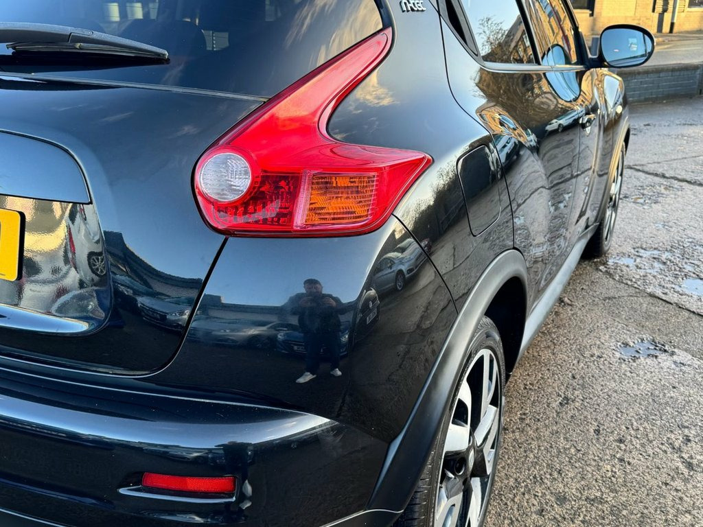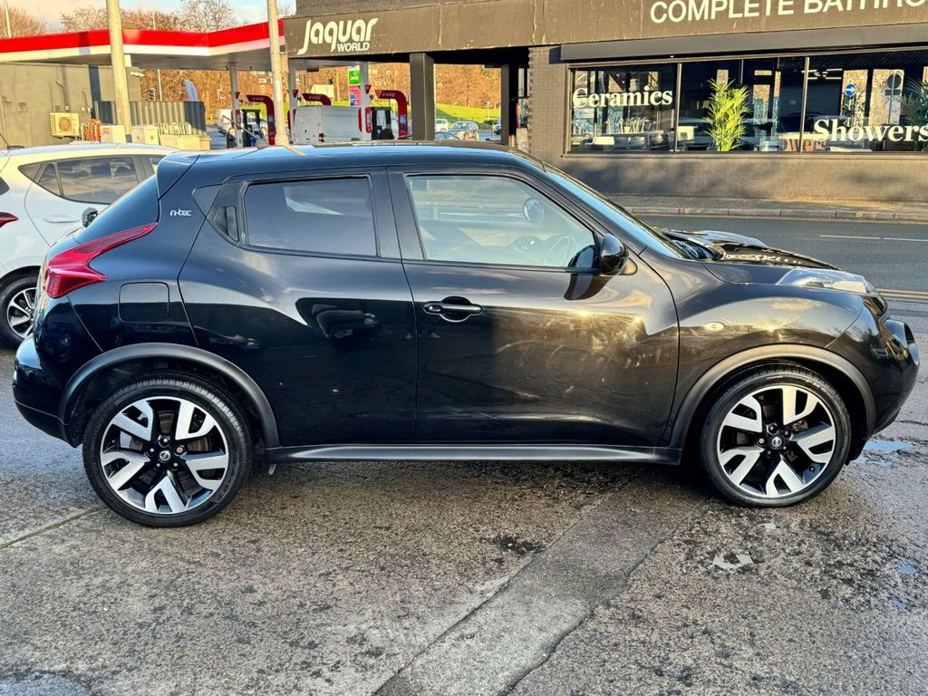 COMES WITH 12 MONTH MOT! This 2013 Nissan Juke n-tec is a standout example in Pearl Black paintwork, upgraded 18" alloys, and boasting an exceptionally low mileage of just 20,000 miles. This particular 2 owner Juke is equipped with a 1.6 litre petrol engine and comes with a full service history, offering peace of mind for its next owner. Notable features include climate control air conditioning for a comfortable cabin environment, a colour reversing camera to aid with parking, and Bluetooth telephone integration for convenient handsfree calls. Upgraded 18inch Dimond cut alloy wheels The appeal of this Nissan Juke n-tec is further enhanced by its economical running costs. With an impressive fuel economy of 47 miles per gallon, it offers better value than many similar vehicles. Additionally, its low CO2 emissions and low insurance group rating mean that running this Juke is designed to be more affordable, making it an attractive choice for a wide range of drivers. Pearl Black, 12V Socket - Front, 3 Adjustable Rear Head Restraints, 60-40 Split Rear Folding Seats, ABS - Anti Lock Brakes, AUX-In Socket, Airbag - Driver, Airbag - Front Passenger, Airbags - Curtain, Airbags - Side, Black Bezel Combi Lights, Black Centre Console-Door Trim Finishers, Bluetooth Telephone Integration, Body Coloured Door Mirrors, Body Coloured Handles, Brake Assist, Bumpers - Body Coloured, CD Radio with MP3 Playback, Chrome Exhaust Finisher, Chrome Interior Door Handles, Climate Control Air Conditioning, Colour Reversing Camera, Cruise Control, Door Mirrors - Gloss Black, Driver Seat Height Adjustment, EBD - Electronic Brakeforce Distribution, ESP - Electronic Stability Progra