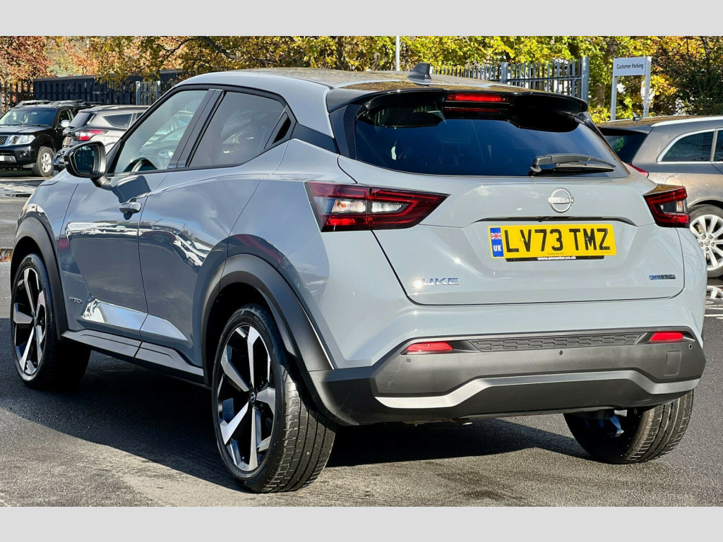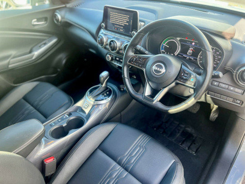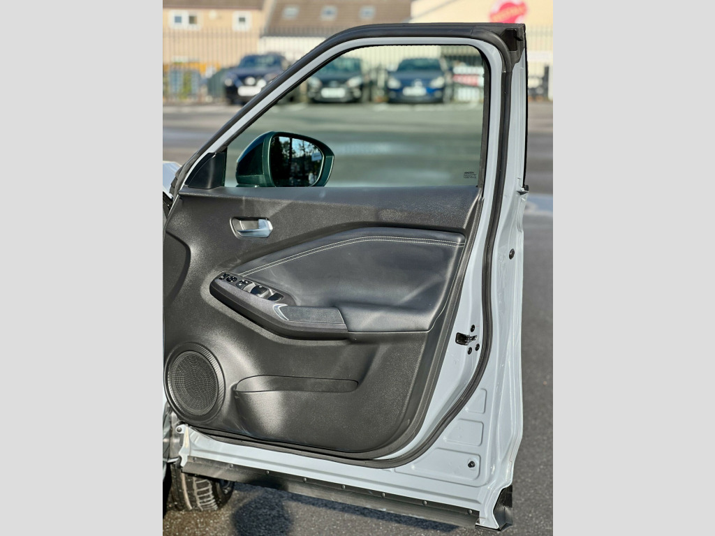 This 2023 Nissan Juke Tekna presents an exceptional opportunity with an incredibly low mileage of just 4000 miles, making it practically new. This 1.6 litre petrol hybrid model, adhering to Euro 6 emissions standards, is presented in the desirable Tekna trim. It boasts a premium Bose Personal Plus Audio System for an immersive sound experience, and the ProPilot Pack enhances safety and convenience with Blind Spot Assistance, Adaptive Cruise Control, and a 360 degree camera. Keyless entry and start are made effortless with the Intelligent Key system, featuring walk away lock and approach unlock functions, complemented by front parking sensors for added peace of mind. The Comfort Pack ensures a pleasant journey with climate control.This Juke Tekna stands out with its impressive fuel economy of 55 mpg, indicating it is more economical than many similar vehicles. Furthermore, its low insurance group and low CO2 emissions highlight its cost effectiveness and environmental consideration. With only one owner from new, this vehicle has been meticulously cared for, offering a superb combination of advanced technology, efficiency, and pristine condition., in alloy wheels, 3 adjustable rear head restraints, 60-40 split folding rear seats, 7in full colour tft screen combimeter, abs with ebd and brake assist, active ride control, active trace control, airbag - driver, airbag - front passenger, apple carplay and google android auto, auto dimming rear view mirror, automatic hazard signal and emergency stop signal, bose personal plus audio system, cabin light front and rear, comfort pack, dab radio, design pack, door ambient lighting, door handles body coloured, drive modes - sport-normal-eco, driver seat back pockets, driver and passenger sun visor with vanity mirror, driver-passenger and rear seatbelt reminder, e-pedal step, esp - electronic stability programme, ev mode switch, electric handbrake with auto hold function, electronically adjustable door mirrors with integrated indicators, emergency and breakdown call, follow me home headlights, front armrest, front doors with bottle holders, front parking sensors, front and rear electric windows with one touch driver window, gear console ambient circle lighting, grab handles passenger and rear, heat pack, height adjustable driver seat, height adjustable seatbelts, high beam assist, hill start assist, intelligent emergency braking with pedestrian and cyclist recognition, intelligent key and start push button with walk away lock and approach unlock functions, intelligent lane intervention, interior chrome door handles, led daytime running lights, led headlights, led rear fog light, led rear lights, lane departure warning, leather shift knob, leather steering wheel, luggage board, luggage space lighting, monoform sporty seats, multifunctional steering wheel, nissanconnect 8in touchscreen entertainment system, nissanconnect navigation with tomtom traffic, nissanconnect services, outside temperature sensor, passenger seat back pockets, power steering, propilot pack, puncture repair kit, rear coat hanger - drivers side, rear console usb port, rear parking sensors, rear spoiler, side and curtain airbags, syntech leather knee pad, tpms - tyre pressure monitoring system, telescopic steering wheel adjustment, three blink turn signal, traffic sign recognition, two cup holders in the centre console, two rear isofix child seat anchorage point with top tether, usb-aux socket input and bluetooth connectivity, vdc - vehicle dynamic control, welcome light and console tray ambient lighting, wifi and voice recognition