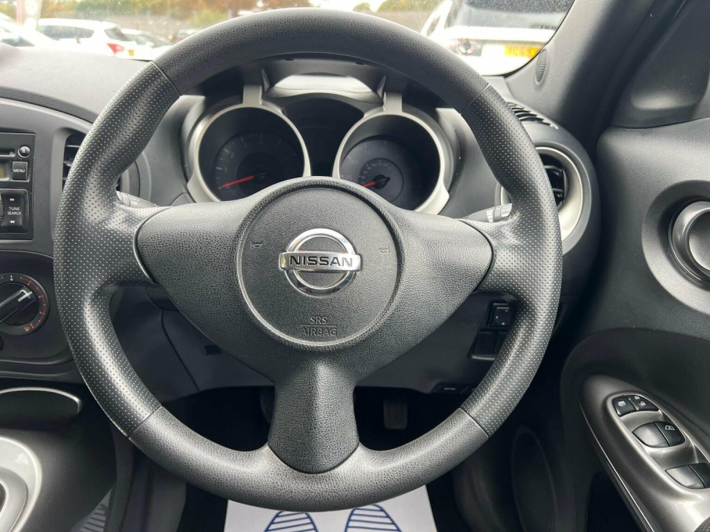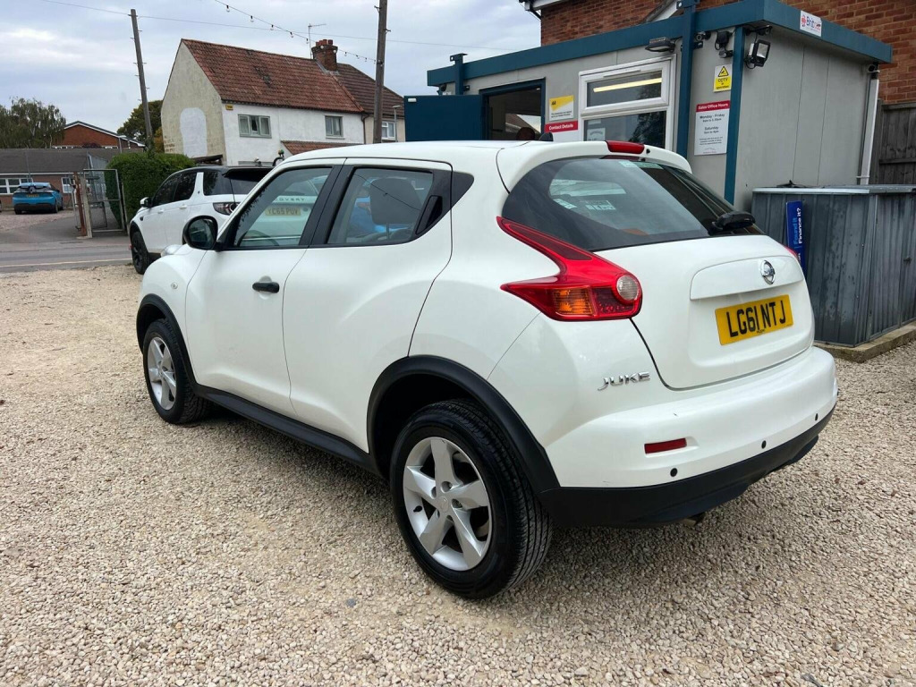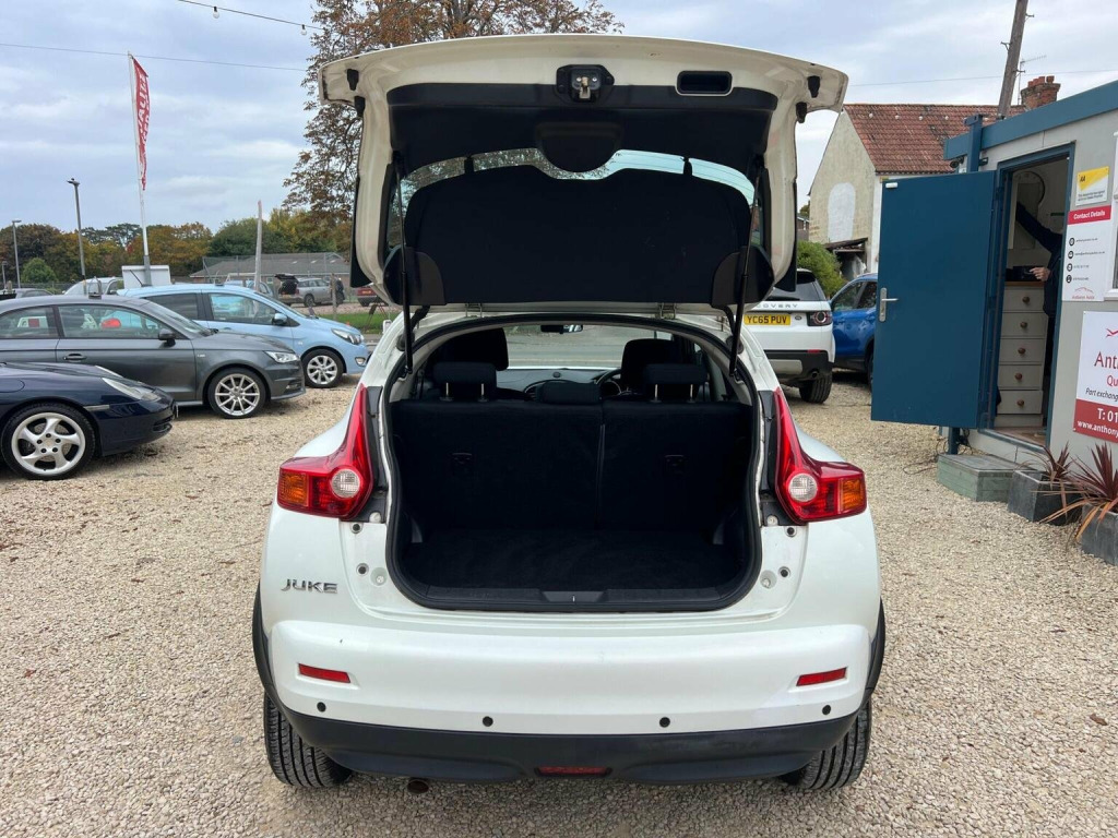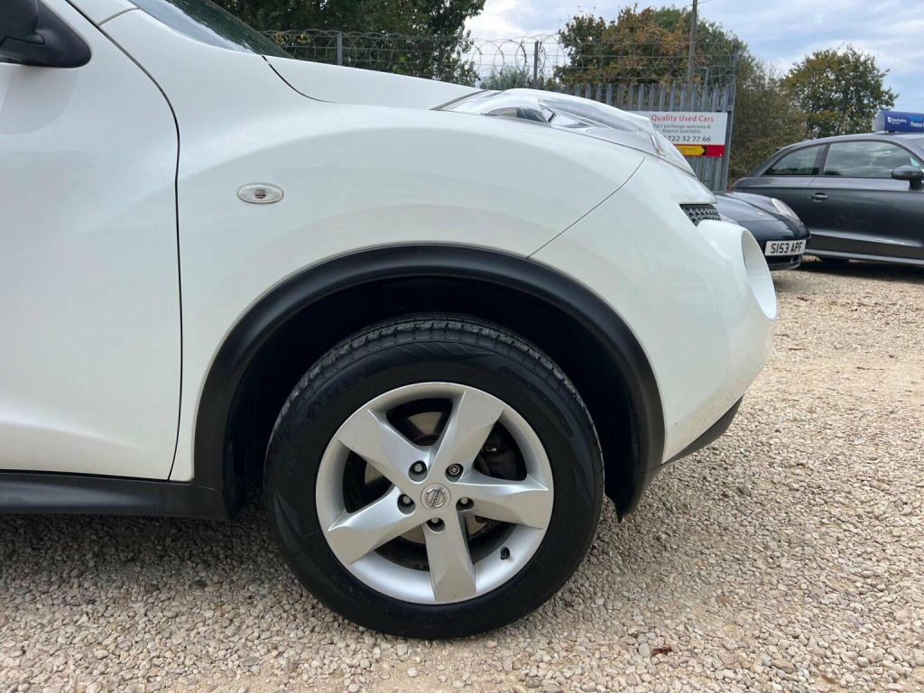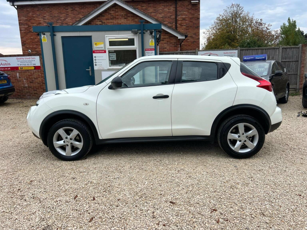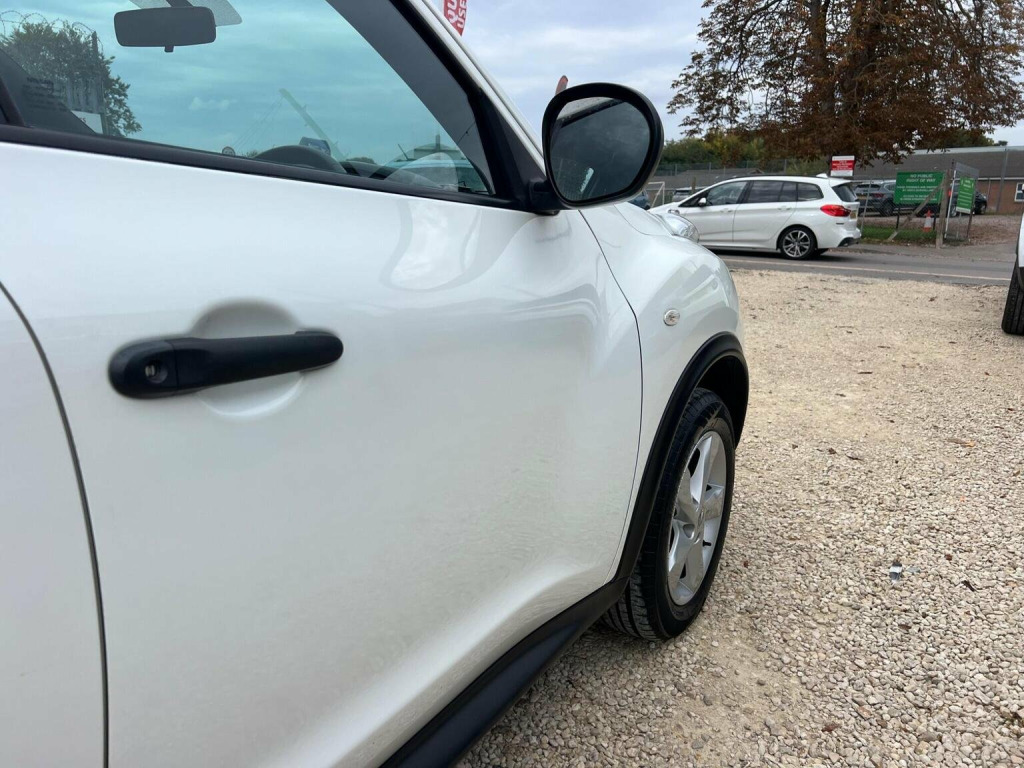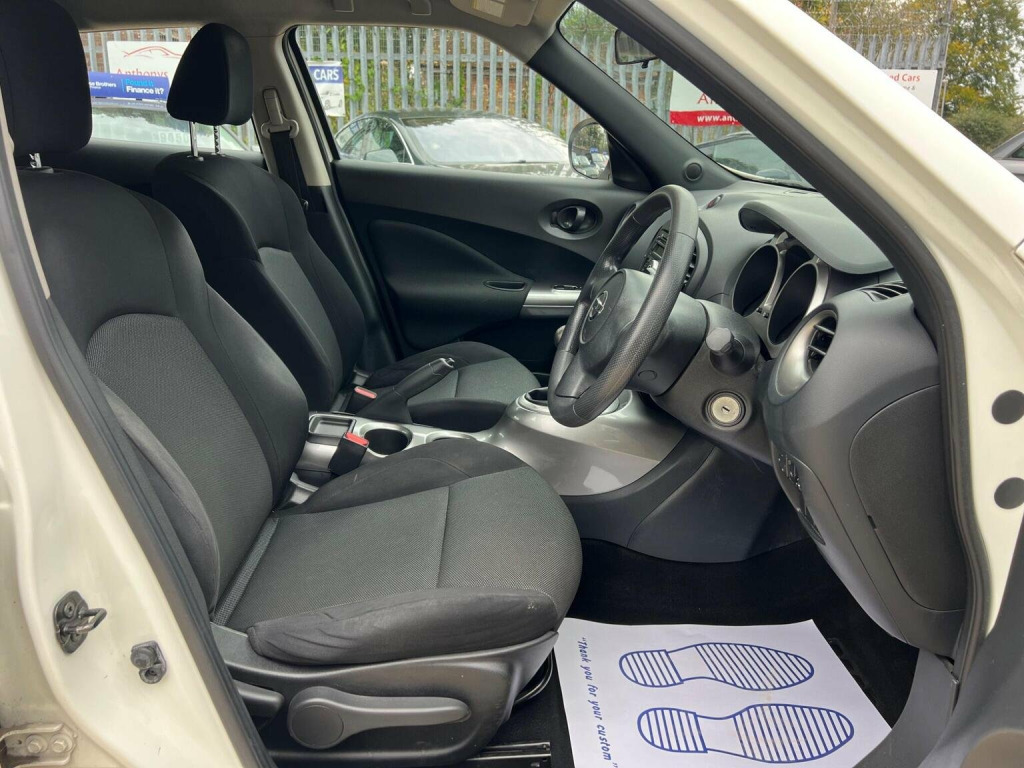 Nissan Juke 1.6 Tekna CVT Euro 5 5dr r in White with a Clean Cloth Interior! Just 78k miles from new. Service History is as follows: 6K, 12K, 20K, 25K, 29K, 38K & 73K and MOT till September 2026. 17 Alloys, Bluetooth, climate control, Isofix CD player. USB & AUX input and much more. Free 12 AA months roadside breakdown and recovery. Part exchange Welcome. AA warranties for 1, 2 or 3 years available. 3 months warranty included. All Major Cards Accepted. ***FINANCE AVAILABLE***Call today to view and test drive!