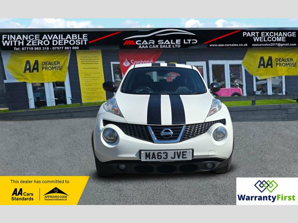 **AAA CAR SALES DARLINGTON LTD HAVE THE PLEASURE TO PRESENT THIS NISSAN JUKE 1.6 Tekna SUV 5dr Petrol Manual Euro 5 (s/s) (117 ps) in ARTIC WHITE PAINT WORK, SERVICE HISTORY SERVICED AT 5K, 12K, 24K, 36K, 49K AND SERVICED BY OUR TEAM AT 74K, 2 KEYS ALL OUR CARS GO THROUGH 72 POINT INSPECTION,ALL OF OUR CARS COME WITH 12 MONTHS AA BREAKDOWN COVER, FRESH MOT WITHOUT ADVISORIES,INTERIM SERVICE,HPI CHECKED VIA EXPERIAN,3 MONTHS WARRANTY WITH THE OPTION TO UPGRADE ***AUTOTRADER CUSTOMER SERVICE AWARD 2019,2020,2021,2022,2023 and 2024 YEAR ON YEAR***, WE ARE OPEN 7 DAYS A WEEK FOR YOUR CONVIENIENCE,CALL 01325 511665 OR EMAIL US AT [email protected] or visit our website www.aaa-carsales.co.uk, , Service history, Clean bodywork, Cloth interior - Clean Condition, Tyre condition good, YOU CAN BUY WITH FULL CONFIDENCE FROM AAA CARS CHECK OUR AUTOTRADER REVIEWS FOR FULL PEACE OF MIND, Arctic White, 12V Socket - Front, 17in Alloy Wheels - Urban, 3 Adjustable Rear Head Restraints, 60-40 Split Rear Folding Seats, ABS - Anti Lock Brakes, AUX-In Socket, Airbag - Driver, Airbag - Front Passenger, Airbags - Curtain, Airbags - Side, Auto Rain Sensing Wipers, Automatic Lighting System, Bluetooth Telephone Integration, Body Coloured Door Mirrors, Body Coloured Handles, Body-Coloured Door Handles, Brake Assist, Bumpers - Body Coloured, CD Radio with MP3 Playback, Chrome Exhaust Finisher, Chrome Interior Door Handles, Climate Control Air Conditioning, Colour Reversing Camera, Cruise Control, Driver Seat Height Adjustment, EBD - Electronic Brakeforce Distribution, ESP - Electronic Sta