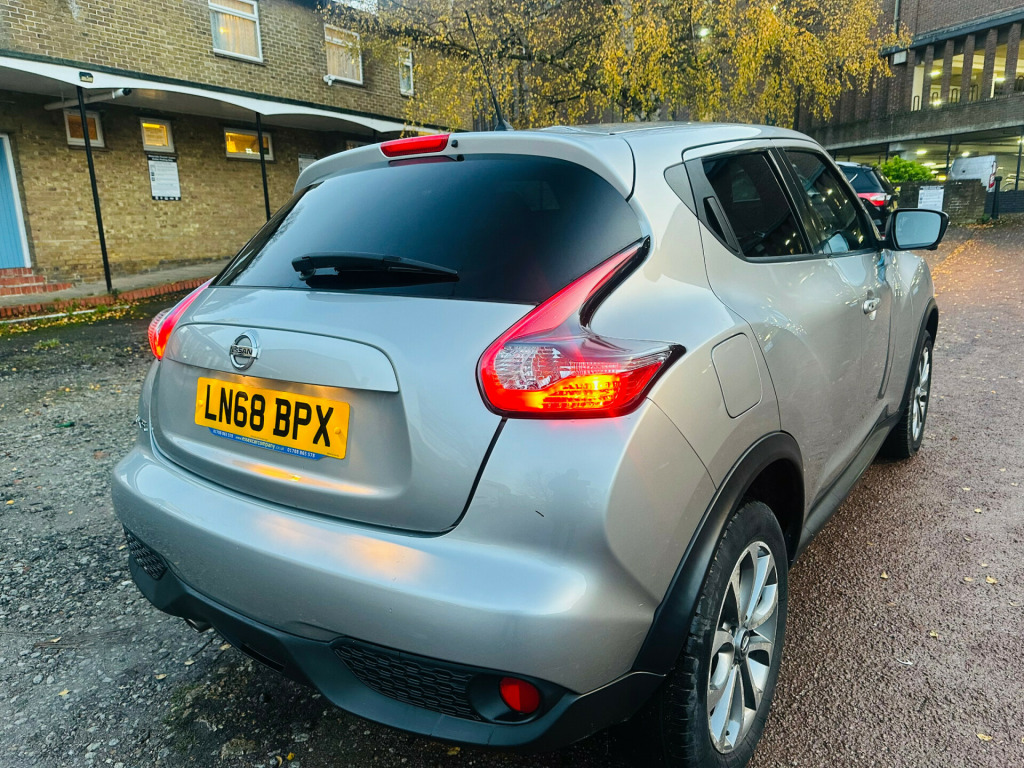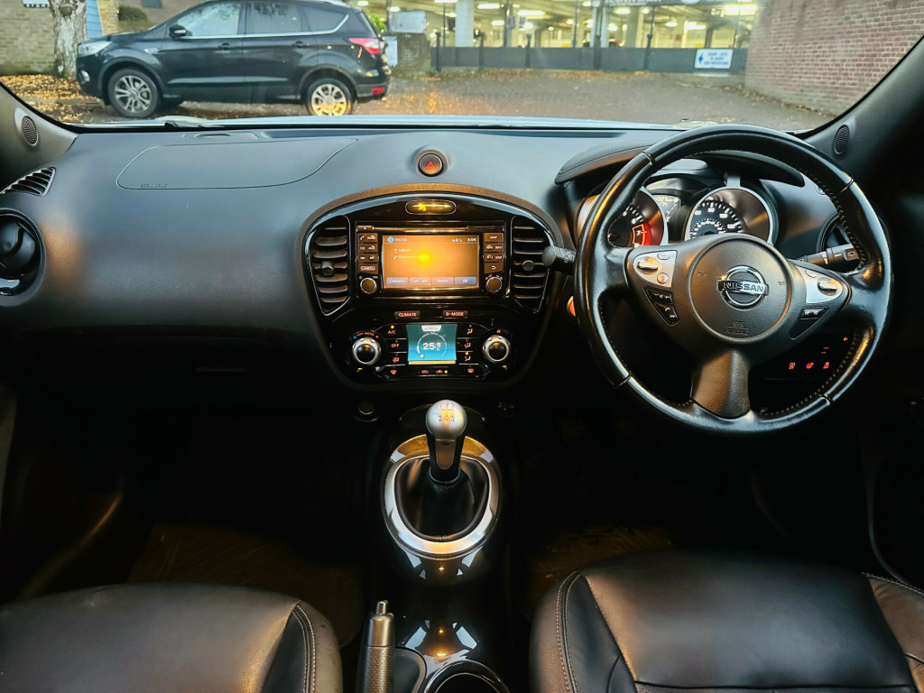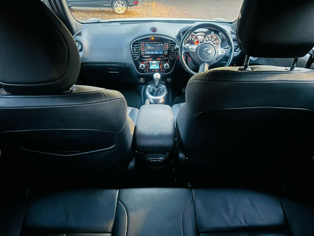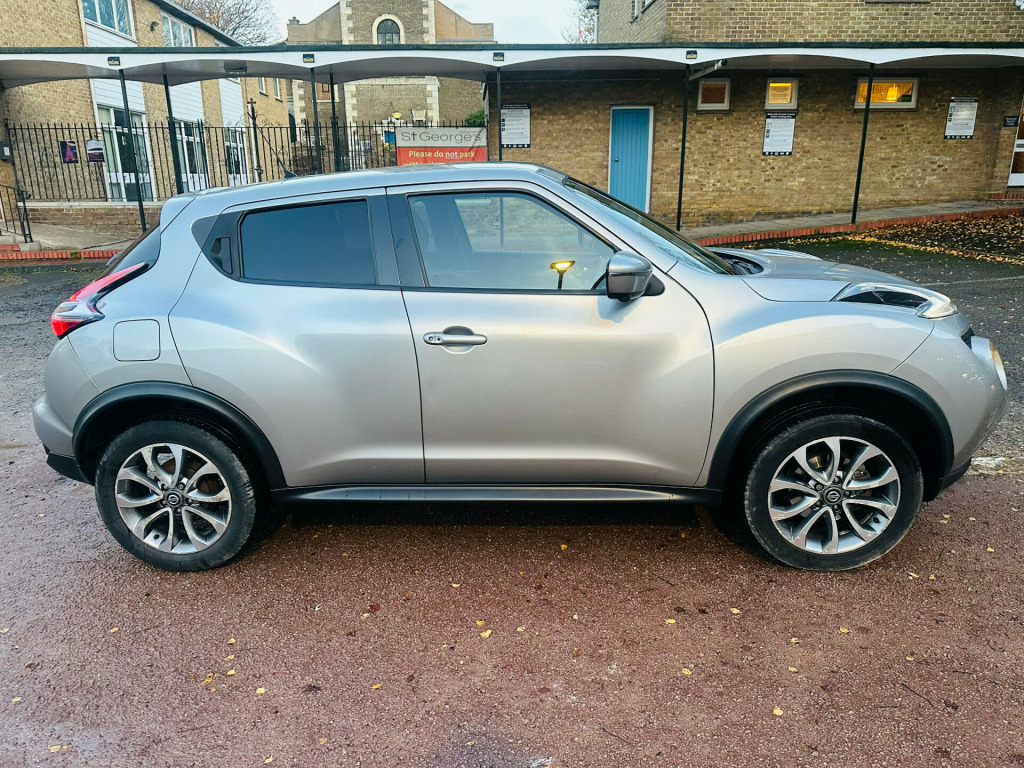 ? Nissan Juke Tekna Start/Stop Boss Edition (68 REG)? 1.6, Petrol, Silver, SUV, Manual, Start/Stop? MOT: 02 October 2026? MILEAGE: 44200 Miles? HPI STATUS: Fully Cleared? Power Steering. Bluetooth? Excellent Condition? BODYWORK IS AN 10 OUT OF 10? INTERIOR IS AN 10 OUT OF 10? ROAD TAX: £107.25/6 MONTHS, £195/YEAR? 12 MONTHS WARRANTY? ULEZ FREEKey(s) - 2, CO2 Emissions -104 g/km, The vehicle Has been Fully Checked, Everything Is In Excellent Condition. 17in Alloy Wheels - Urban, Airbag - Front Passenger, Airbags - Side, Automatic Lights and Wipers, 360 Colour Reversing Camera, Cruise Control with Speed Limiter, ESP ABS EBD and Brake Assist, Front Fog Lights, Leather Steering Wheel and Gear Knob, NissanConnect, Power Assisted Steering - Speed Sensitive, Rear Privacy Glass, TPMS - Tyre Pressure Monitoring System, Telephone - Bluetooth Integration, Traction Control. For more information Contact MARE'S AUTOS LTD www.maresautosltd.co.uk, v socket - front, am-fm-cd audio system, aux socket for mp3 player, bose personal sound system, dab radio, nissanconnect, telephone - bluetooth integration, usb port, 17in alloy wheels - urban, body coloured door mirrors, body coloured handles, dark chrome grille, door mirrors with led indicators, electric folding and heated door mirrors, electric front windows with driver one-touch, heated rear windscreen, puncture repair kit, rear electric windows, rear privacy glass, 3 adjustable rear head restraints, 60-40 split rear folding seats, automatic climate control with pollen filter, black headliner, chrome interior door handles, driver and passenger sun visor with vanity mirror, flexi-board boot storage system, front armrest, front cupholders x2, front door pockets with drinks bottle holders, front map reading lights, glovebox, height adjustable driver seat, interior courtesy light operated by all doors, interior personalisation - energy orange, interior personalisation - enigma black, interior personalisation - power blue, leather steering wheel and gear knob, rain sensing windscreen wipers, rear courtesy lights, rear tonneau cover integrated into tailgate, seats - heated front, steering wheel mounted audio controls, tilt adjustable steering wheel, 360 degree around view monitor, blind spot warning, colour reversing camera, cruise control with speed limiter, door-boot open warning light, drive computer with temperature gauge, gear shift indicator, lane departure warning, low fuel level warning light, moving object detection, nissan dynamic control system, oil level gauge, outside temperature gauge, power assisted steering - speed sensitive, rev counter, tpms - tyre pressure monitoring system, trip computer, 6 airbags, esp abs ebd and brake assist, engine immobiliser, front seat belt height adjustment, front seat belts with load limiter and pretensioners, isofix child seat anchoring points, intelligent key - ikey- with start push button, passenger airbag cut-off switch, rear door child locks, rear wiper with intermittent, automatic headlights - dusk sensor, led daytime running lights, led front fog lights