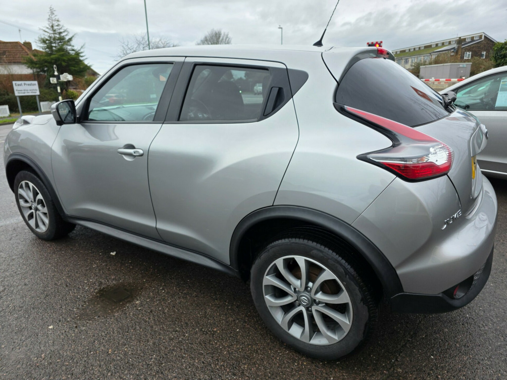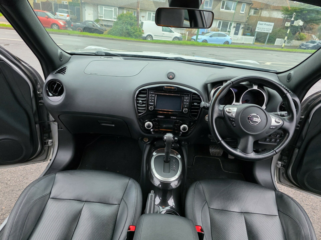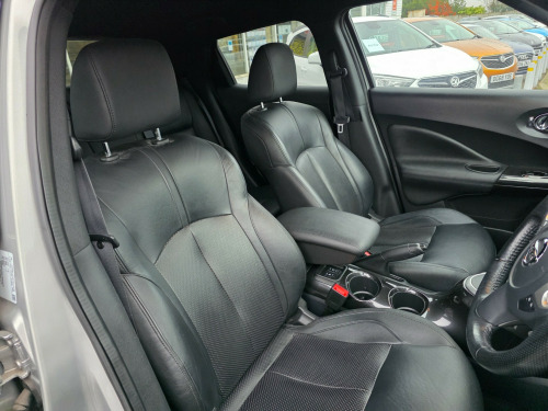 Just arrived, fabulous example of one of best sellers, prepared like no other, supplied with an award winning 6 month warranty with free breakdown cover. This 2016 Nissan Juke 1.6 Tekna SUV with 38171 miles on the odometer is a stylish and reliable choice for those in need of a spacious and practical vehicle. This SUV runs on petrol and boasts 5 seats and 5 doors, making it perfect for transporting both passengers and cargo. With an MOT that doesn't expire until 13/09/2026 and ULEZ compliance, this car offers peace of mind to its next owner. The Nissan Juke comes with modern features such as a 12V Socket in the front, AUX Socket for MP3 Player, DAB and Internet Radio with 6 Speakers, NissanConnect, and Telephone with Bluetooth Integration, ensuring a comfortable driving experience. Whether you're heading out for a weekend adventure or navigating city streets, this well-maintained SUV is up for the task. v socket - front, aux socket for mp3 player, dab and internet radio with 6 speakers, nissanconnect, telephone - bluetooth integration, usb port, 17in alloy wheels - urban, body coloured handles, body-coloured door mirrors with led indicators, electric folding and heated door mirrors, front and rear electric windows, puncture repair kit, rear privacy glass, 2 speed wiper with variable intermittent, 3 adjustable rear head restraints, 60-40 split rear folding seats, armrest - coloured stitching to matching centre console, automatic climate control with pollen filter, black headliner, boot capacity with flexi-floor board, chrome interior door handles, front armrest, front cupholders x2, front door pockets with drinks bottle holders, front map reading lights, glovebox, height adjustable driver seat, leather steering wheel and gear knob, rear tonneau cover integrated into tailgate, seats - heated front, steering wheel mounted audio controls, tilt adjustable steering wheel, airbag - driver, airbag - front passenger, airbags - curtain, airbags - side, esp abs ebd and brake assist, engine immobiliser, front seat belt height adjustment, front seat belts with load limiter and pretensioners, isofix child seat anchoring points, intelligent key with start push button, passenger airbag cut-off switch, rear door child locks, rear wiper with intermittent, safety pack, traction control, automatic lights and wipers, front fog lights, led signature daytime running lights, colour reversing camera, cruise control with speed limiter, drive computer with temperature gauge, gear shift indicator, nissan dynamic control system, power assisted steering - speed sensitive, tpms - tyre pressure monitoring system
