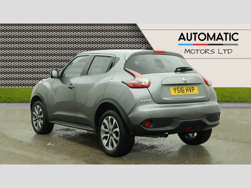 2 KEYS, ULEZ FREE, FRESH SERVICE, TOTAL OF 10 SERVICES (3 MAIN DEALER SERVICES), MOT DUE 11/11/2026, SATNAV, CLIMATE CONTROL, LEATHER TRIM, 17'' ALLOY WHEELS, PRIVACY GLASSFor sale is a 2016 Nissan Juke 1.6 Tekna SUV with 59200 miles on the clock, powered by a petrol engine and equipped with XTRON Euro 6 technology producing 117 ps. This 5-door SUV comfortably seats 5 people, making it ideal for family outings or road trips. The vehicle comes with a valid MOT until 11/11/2026 and is ULEZ compliant, ensuring smooth driving in low emission zones. It includes modern features such as 12V Socket, AUX Socket for MP3 Player, DAB and Internet Radio with 6 Speakers, NissanConnect, and Telephone with Bluetooth integration, perfect for staying connected and entertained on the go. If you're in the market for a reliable, spacious SUV, this Nissan Juke is worth considering. v socket - front, aux socket for mp3 player, dab and internet radio with 6 speakers, nissanconnect, telephone - bluetooth integration, usb port, 17in alloy wheels - urban, body coloured handles, body-coloured door mirrors with led indicators, electric folding and heated door mirrors, front and rear electric windows, puncture repair kit, rear privacy glass, 2 speed wiper with variable intermittent, 3 adjustable rear head restraints, 60-40 split rear folding seats, armrest - coloured stitching to matching centre console, automatic climate control with pollen filter, black headliner, boot capacity with flexi-floor board, chrome interior door handles, front armrest, front cupholders x2, front door pockets with drinks bottle holders, front map reading lights, glovebox, height adjustable driver seat, leather steering wheel and gear knob, rear tonneau cover integrated into tailgate, seats - heated front, steering wheel mounted audio controls, tilt adjustable steering wheel, airbag - driver, airbag - front passenger, airbags - curtain, airbags - side, esp abs ebd and brake assist, engine immobiliser, front seat belt height adjustment, front seat belts with load limiter and pretensioners, isofix child seat anchoring points, intelligent key with start push button, passenger airbag cut-off switch, rear door child locks, rear wiper with intermittent, safety pack, traction control, automatic lights and wipers, front fog lights, led signature daytime running lights, colour reversing camera, cruise control with speed limiter, drive computer with temperature gauge, gear shift indicator, nissan dynamic control system, power assisted steering - speed sensitive, tpms - tyre pressure monitoring system