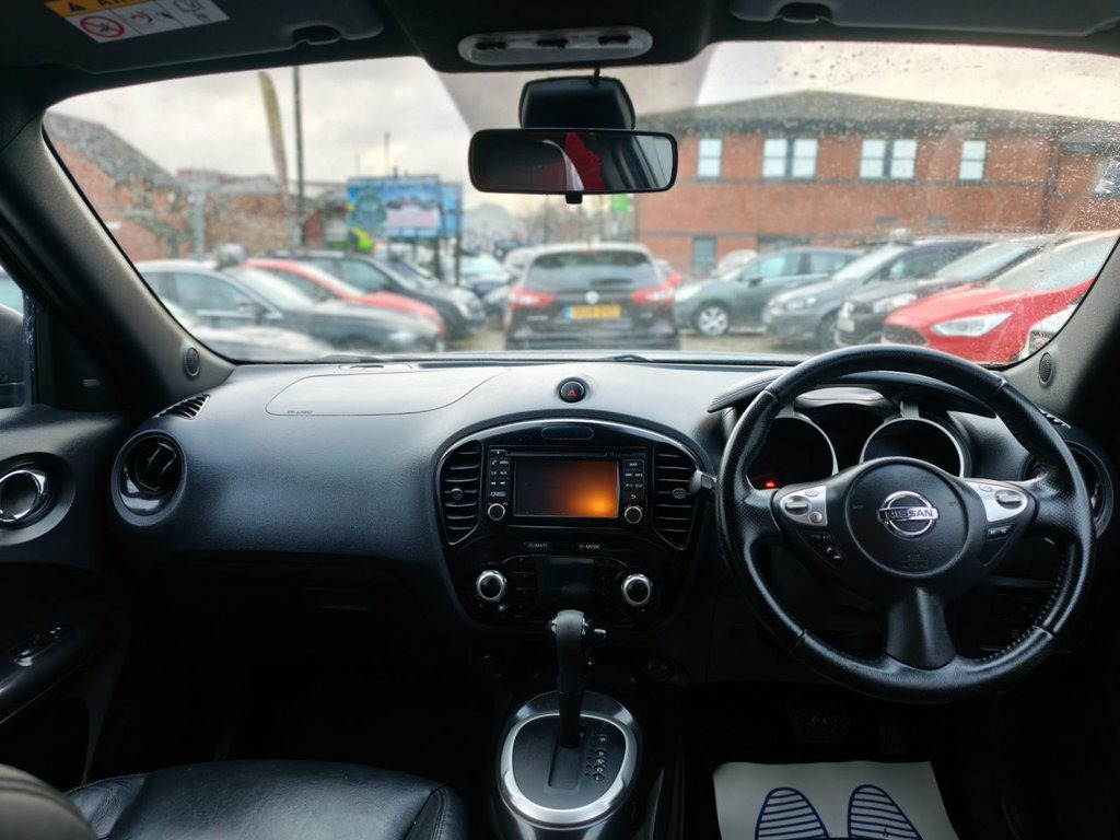 Automatic, Low Mileage, Ulez Free, NISSAN JUKE 1.6 Tekna SUV 5dr Petrol XTRON Euro 6 (117 ps), 1.6L, Petrol, Black, MOT January 2027, HPI Clear, 5 Stamps Part Service History, 2 Former Keepers, Spare Key, Good Spec, Sat Nav, Reverse Camera, Climate Control, Starts and Drives Great, Well Looked After, 12V Socket - Front, 17in Alloy Wheels - Urban, 2 Speed Wiper with Variable Intermittent, 3 Adjustable Rear Head Restraints, 60-40 Split Rear Folding Seats, AUX Socket for MP3 Player, Airbag - Driver, Airbag - Front Passenger, Airbags - Curtain, Airbags - Side, Armrest - Coloured Stitching to Matching, Automatic Climate Control with Pollen Fi, Automatic Lights and Wipers, Black Headliner, Body Coloured Handles, Body-Coloured Door Mirrors with LED Indi, Boot Capacity with Flexi-Floor Board, Chrome Interior Door Handles, Colour Reversing Camera, Cruise Control with Speed Limiter, DAB and Internet Radio with 6 Speakers, Drive Computer with Temperature Gauge, ESP ABS EBD and Brake Assist, Electri