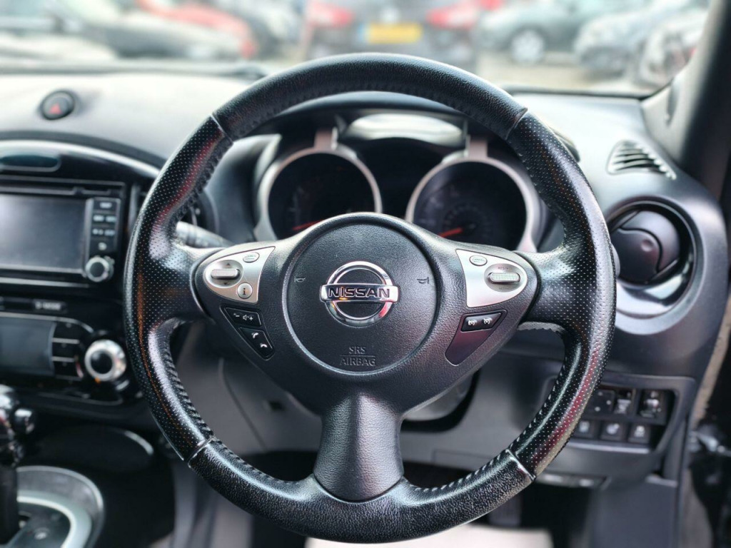 This 2016 Nissan Juke Tekna boasts a clear vehicle history and an MOT valid until January 2027, offering peace of mind for its next owner. Powered by an efficient 1.6 litre Euro 6 petrol engine, this Tekna variant comes with partial service history. Key features include Intelligent Key with Start Push Button for keyless entry and ignition, alongside automatic climate control with a pollen filter to ensure a comfortable cabin environment. Parking is made easier with a colour reversing camera and the comprehensive Safety Pack, which includes Blind Spot Assistance and a 360 degree camera. For added comfort, the front seats are heated.This Nissan Juke stands out with its favourable low insurance group, making it an economical choice. Furthermore, its impressive fuel economy of 47 miles per gallon indicates that it is more efficient than many similar vehicles. These highlights demonstrate the Juke Tekna's appeal as a practical and cost effective option.. 12V Socket - Front, 17in Alloy Wheels - Urban, 2 Speed Wiper with Variable Intermittent, 3 Adjustable Rear Head Restraints, 60-40 Split Rear Folding Seats, AUX Socket for MP3 Player, Airbag - Driver, Airbag - Front Passenger, Airbags - Curtain, Airbags - Side, Armrest - Coloured Stitching to Matching Centre Console, Automatic Climate Control with Pollen Filter, Automatic Lights and Wipers, Black Headliner, Body Coloured Handles, Body-Coloured Door Mirrors with LED Indicators, Boot Capacity with Flexi-Floor Board, Chrome Interior Door Handles, Colour Reversing Camera, Cruise Control with Speed Limiter, DAB and Internet Radio with 6 Speakers, Drive Computer with Temperature Gauge, ESP ABS EBD and Brake Assist, Electric Folding and Heated Door Mirrors, Engine Immobiliser, Front Armrest, Front Cupholders x2, Front Door Pockets with Drinks Bottle Holders, Front Fog Lights, Front Map Reading Lights, Front Seat Belt Height Adjustment, Front Seat Belts with Load Limiter and Pretensioners, Front and Rear Electric Windows, Gear Shift Indicator, Glovebox, Height Adjustable Driver Seat, ISOFIX Child Seat Anchoring Points, Intelligent Key with Start Push Button, LED Signature Daytime Running Lights, Leather Steering Wheel and Gear Knob, Nissan Dynamic Control System, NissanConnect, Passenger Airbag Cut-Off Switch, Power Assisted Steering - Speed Sensitive, Puncture Repair Kit, Rear Door Child Locks, Rear Privacy Glass, Rear Tonneau Cover Integrated into Tailgate, Rear Wiper with Intermittent, Safety Pack, Seats - Heated Front, Steering Wheel Mounted Audio Controls, TPMS - Tyre Pressure Monitoring System, Telephone - Bluetooth Integration, Tilt Adjustable Steering Wheel, Traction Control, USB Port. Part service history