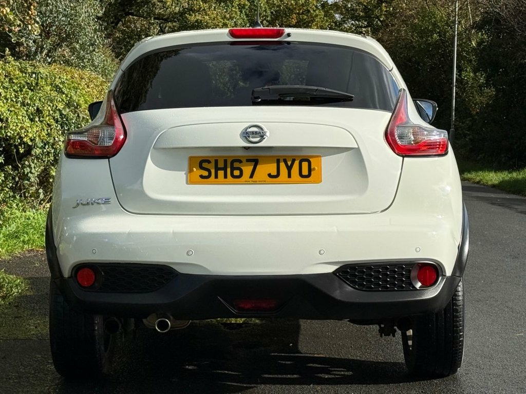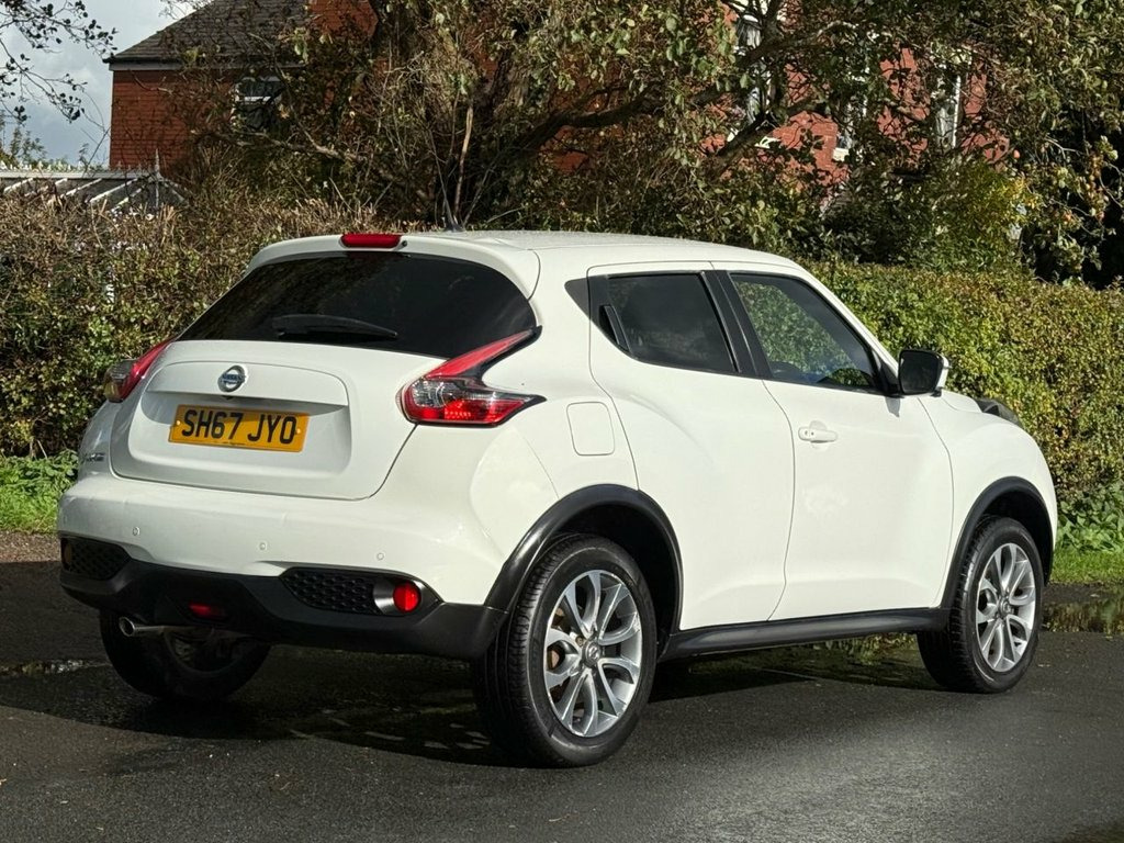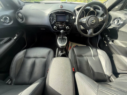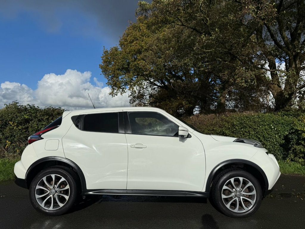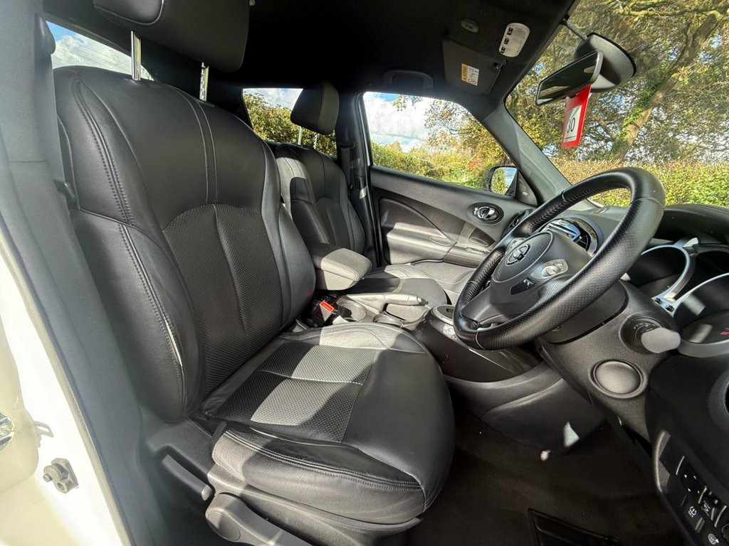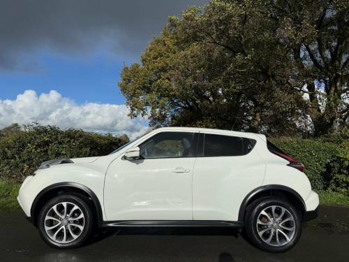 Excellent service history with 7 Nissan services on this Nissan Juke 1.6 Tekna petrol automatic Euro 6 ULEZ compliant and great spec inc full leather/ satellite navigation/ 360 degree cameras / B Tooth/ climate control/ blind sport monitoring/ electric folding door mirrors/ cruise control/ privacy glass/ excellent condition drive and service history 7 Nissan services . Supplied with a full MOT pre delivery inspection and warranty// Arctic White, 12V Socket - Front, 17in Alloy Wheels - Urban, 2 Speed Wiper with Variable Intermittent, 3 Adjustable Rear Head Restraints, 60-40 Split Rear Folding Seats, AUX Socket for MP3 Player, Airbag - Driver, Airbag - Front Passenger, Airbags - Curtain, Airbags - Side, Armrest - Coloured Stitching to Matching, Automatic Climate Control with Pollen Fi, Automatic Lights and Wipers, Black Headliner, Body Coloured Handles, Body-Coloured Door Mirrors with LED Indi, Boot Capacity with Flexi-Floor Board, Chrome Interior Door Handles, Colour Reversing Camera, Cruise Control with Speed Limiter, DAB and Internet Radio with 6 Speakers, Drive Computer with Temperature Gauge, ESP ABS EBD and Brake A