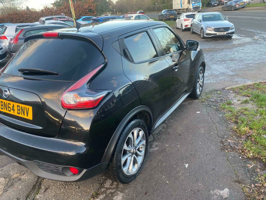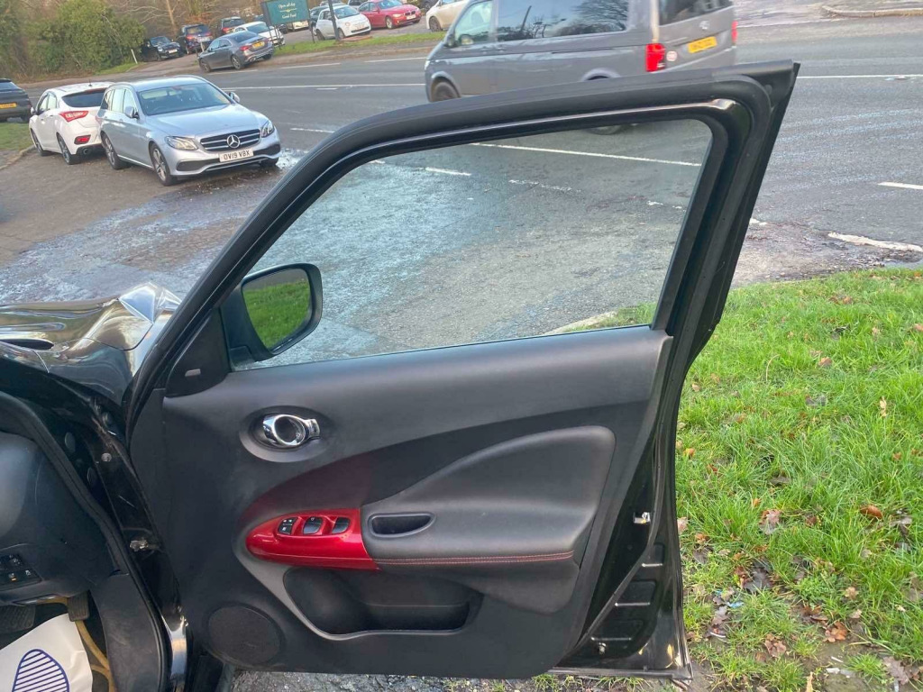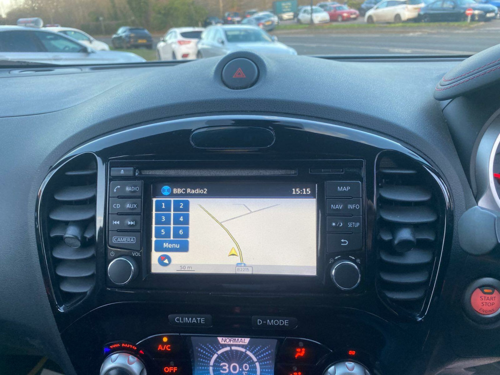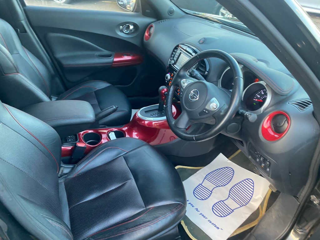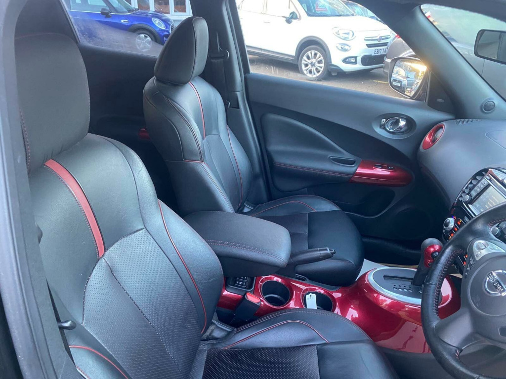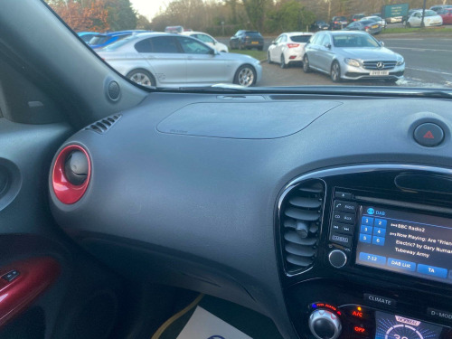 The car has got: AIR CON,AUTO CLIMATE CONTROL,AUTOMATIC LIGHTS, AUTOMATIC WIPERS, AUX IN,BLUETOOTH,CRUISE CONTROL,DAB,FULL LEATHER TRIM, HEATED SEThis 2014 Nissan Juke Tekna presents an exceptional ownership proposition with its single owner and remarkably low mileage of just 44,000 miles. This well maintained 1.6 litre petrol model boasts a clear vehicle history check and an MOT valid until November 2026, offering peace of mind for its next owner. Inside, you'll find a host of convenient features designed to enhance your driving experience, including climate control for perfect cabin temperature, an automatic lighting system that adjusts to ambient conditions, and a rear parking camera to assist with manoeuvring. The Tekna trim also includes keyless entry for effortless access and a blind spot warning system to help keep you aware of your surroundings.The Juke Tekna stands out with its low insurance group, making it an economical choice for many drivers. The combination of its very low mileage for a 2014 vehicle, single owner history, and comprehensive MOT validity until late 2026 all point towards a car that has been cherished and well looked after. These factors collectively suggest a superior level of care compared to many other vehicles of a similar age and model, making this particular Nissan Juke a compelling option. v socket - front, 17in alloy wheels - urban, 6 speakers, 60-40 split rear folding seats, abs - anti lock brakes, aux-in socket, air vent rings - matching centre console, airbag - driver, airbag - front passenger, airbags - curtain, airbags - side, around view monitor - 360 bird-view, auto rain sensing wipers, automatic lighting system, black headliner, blind spot warning, body coloured door mirrors, body coloured handles, brake assist, bumpers - body coloured, chrome interior door handles, climate control, cruise control, dab radio, door trim finishers - matching centre console, driver seat height adjustment, ebd - electronic brakeforce distribution, esp - electronic stability programme, electric folding and heated door mirrors, first aid kit, front armrest, front door pockets with drinks bottle holders, front dual cupholders, front fog lights, front map reading lights, front passenger seatback pockets, front and rear electric windows, gear knob - insert finisiher - matching centre console, gear shift indicator, glovebox, grey centre console-door trim finishers, head restraints - front, head restraints - rear, high visibility jackets, isofix child seat anchoring points, immobiliser, keyless entry, led daytime running lights, lane departure warning, leather gear knob, leather steering wheel, moving object detection, nissan dynamic control system, passenger airbag cut-off switch, pollen filter, power assisted steering, puncture repair kit, push start-stop button, radio-cd, rear door child locks, rear parking camera, rear privacy glass, rear tonneau cover integrated into tailgate, safety kit, safety pack, safety shield, satellite navigation - nissan connect, seats - heated front, seats - sports, steering wheel - rake adjustment, steering wheel mounted audio controls, tpms - tyre pressure monitoring system, telephone - bluetooth integration, touch screen - colour 5.8in, traction control, trip computer, usb port, warning triangle, premium leather - grey with red centre console and red exterior plus pack