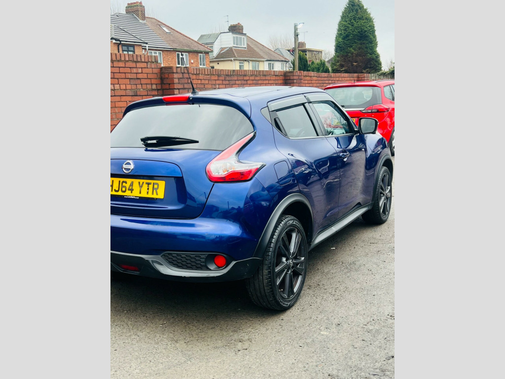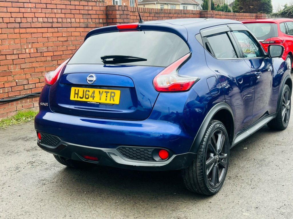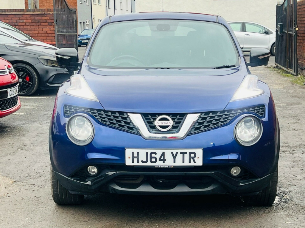 SAT NAVIGATION REVERSE CAMERA SUNROOF FULL BLACK LEATHER HEATED SEAT MOT 5/9/2026/ JUST ARRIVED PART EXCHANGE AND DELIVER AVAILABLE LOW RATE FINANCE AVAILABLE 0 DEPOSIT FINANCE AVAILABLE This 2014 Nissan Juke Tekna offers exceptional value with its remarkably low mileage for its age, having covered just 65,358 miles. This particular Tekna model is equipped with a 1.6 litre petrol engine, providing a balanced driving experience. Inside, you'll find comfortable heated front seats, perfect for those colder mornings, and seamless Bluetooth integration for your phone calls and music.The Juke Tekna also boasts advanced parking assistance with its Around View Monitor, offering a 360 degree bird's eye view to make manoeuvring effortless. Safety is further enhanced by the Blind Spot Warning system, alerting you to vehicles in your blind spots. Enjoy a consistently comfortable cabin temperature thanks to the climate control. This Juke sits in a low insurance group, indicating it could be a more economical choice to own and run compared to similar vehicles.. 12V Socket - Front, 17in Alloy Wheels - Urban, 6 Speakers, 60-40 Split Rear Folding Seats, ABS - Anti Lock Brakes, AUX-In Socket, Air Vent Rings - Matching Centre Console, Airbag - Driver, Airbag - Front Passenger, Airbags - Curtain, Airbags - Side, Around View Monitor - 360 Bird-View, Auto Rain Sensing Wipers, Automatic Lighting System, Black Headliner, Blind Spot Warning, Body Coloured Door Mirrors, Body Coloured Handles, Brake Assist, Bumpers - Body Coloured, Chrome Interior Door Handles, Climate Control, Cruise Control, DAB Radio, Door Trim Finishers - Matching Centre Console, Driver Seat Height Adjustment, EBD - Electronic Brakeforce Distribution, ESP - Electronic Stability Programme, Electric Folding and Heated Door Mirrors, First Aid Kit, Front Armrest, Front Door Pockets with Drinks Bottle Holders, Front Dual Cupholders, Front Fog Lights, Front Map Reading Lights, Front Passenger Seatback Pockets, Front and Rear Electric Windows, Gear Knob - Insert Finisiher - Matching Centre Console, Gear Shift Indicator, Glovebox, Grey Centre Console-Door Trim Finishers, Head Restraints - Front, Head Restraints - Rear, High Visibility Jackets, ISOFIX Child Seat Anchoring Points, Immobiliser, Keyless Entry, LED Daytime Running Lights, Lane Departure Warning, Leather Gear Knob, Leather Steering Wheel, Moving Object Detection, Nissan Dynamic Control System, Passenger Airbag Cut-Off Switch, Pollen Filter, Power Assisted Steering, Puncture Repair Kit, Push Start-Stop Button, Radio-CD, Rear Door Child Locks, Rear Parking Camera, Rear Privacy Glass, Rear Tonneau Cover Integrated into Tailgate, Safety Kit, Safety Pack, Safety Shield, Satellite Navigation - Nissan Connect, Seats - Heated Front, Seats - Sports, Steering Wheel - Rake Adjustment, Steering Wheel Mounted Audio Controls, TPMS - Tyre Pressure Monitoring System, Telephone - Bluetooth Integration, Touch Screen - Colour 5.8in, Traction Control, Trip Computer, USB Port, Warning Triangle.