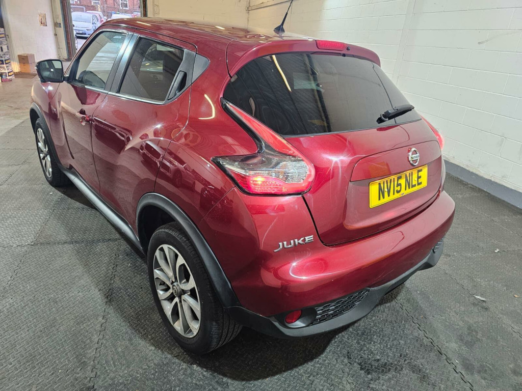 Yab Cars Limited is delighted to present an amazing car.Full Vehicle Inspection before listingFinance available.Nation Wide Delivery, Part exchange available,Finance available, 6 months comprehensive Warranty and 12 months breakdown cover. Boasting exceptionally low mileage for its age, this 2015 Nissan Juke Tekna presents a compelling proposition for any discerning driver. With only 56,248 miles on the clock and a clear vehicle history check, this well maintained example benefits from a full service history, with its last service completed on 26 November 2025 at 56,245 miles. It is powered by a 1.6L petrol engine and meets Euro 6 emissions standards. The Tekna trim level ensures a host of desirable features, including automatic climate control with a pollen filter, Bluetooth integration for seamless phone connectivity, and a colour reversing camera for enhanced parking assistance. Comfort is also a priority, with heated front seats providing a warm welcome on colder days, and the advanced Safety Pack includes Blind Spot Assistance and a 360 degree camera system for comprehensive peace of mind.This Nissan Juke stands out from the crowd thanks to its low CO2 emissions and its position within a low insurance group, making it an economical choice for daily driving. The MOT remains valid until November 2026, and a 6 month warranty is included for added reassurance. With only two previous owners, this Juke has clearly been cherished and offers a fantastic blend of style, practicality, and advanced technology, making it a superior option compared to other vehicles in its class. Yab cars limited Unit 1, Haniwells Business ParkHardicker StreetManchesterM19 2RBNwebsite: yabcars.co.ukFor more information please call or text 07438028640, 07576178024.Thanks for your interest.. 12V Socket - Front, 17in Alloy Wheels - Urban, 2 Speed Wiper with Variable Intermittent, 3 Adjustable Rear Head Restraints, 60-40 Split Rear Folding Seats, AUX Socket for MP3 Player, Airbag - Driver, Airbag - Front Passenger, Airbags - Curtain, Airbags - Side, Armrest - Coloured Stitching to Matching Centre Console, Automatic Climate Control with Pollen Filter, Automatic Lights and Wipers, Black Headliner, Body Coloured Handles, Body-Coloured Door Mirrors with LED Indicators, Boot Capacity with Flexi-Floor Board, Chrome Interior Door Handles, Colour Reversing Camera, Cruise Control with Speed Limiter, DAB and Internet Radio with 6 Speakers, Drive Computer with Temperature Gauge, ESP ABS EBD and Brake Assist, Electric Folding and Heated Door Mirrors, Engine Immobiliser, Front Armrest, Front Cupholders x2, Front Door Pockets with Drinks Bottle Holders, Front Fog Lights, Front Map Reading Lights, Front Seat Belt Height Adjustment, Front Seat Belts with Load Limiter and Pretensioners, Front and Rear Electric Windows, Gear Shift Indicator, Glovebox, Height Adjustable Driver Seat, ISOFIX Child Seat Anchoring Points, Intelligent Key with Start Push Button, LED Signature Daytime Running Lights, Leather Steering Wheel and Gear Knob, Nissan Dynamic Control System, NissanConnect, Passenger Airbag Cut-Off Switch, Power Assisted Steering - Speed Sensitive, Puncture Repair Kit, Rear Door Child Locks, Rear Privacy Glass, Rear Tonneau Cover Integrated into Tailgate, Rear Wiper with Intermittent, Safety Pack, Seats - Heated Front, Steering Wheel Mounted Audio Controls, TPMS - Tyre Pressure Monitoring System, Telephone - Bluetooth Integration, Tilt Adjustable Steering Wheel, Traction Control, USB Port. Full service history