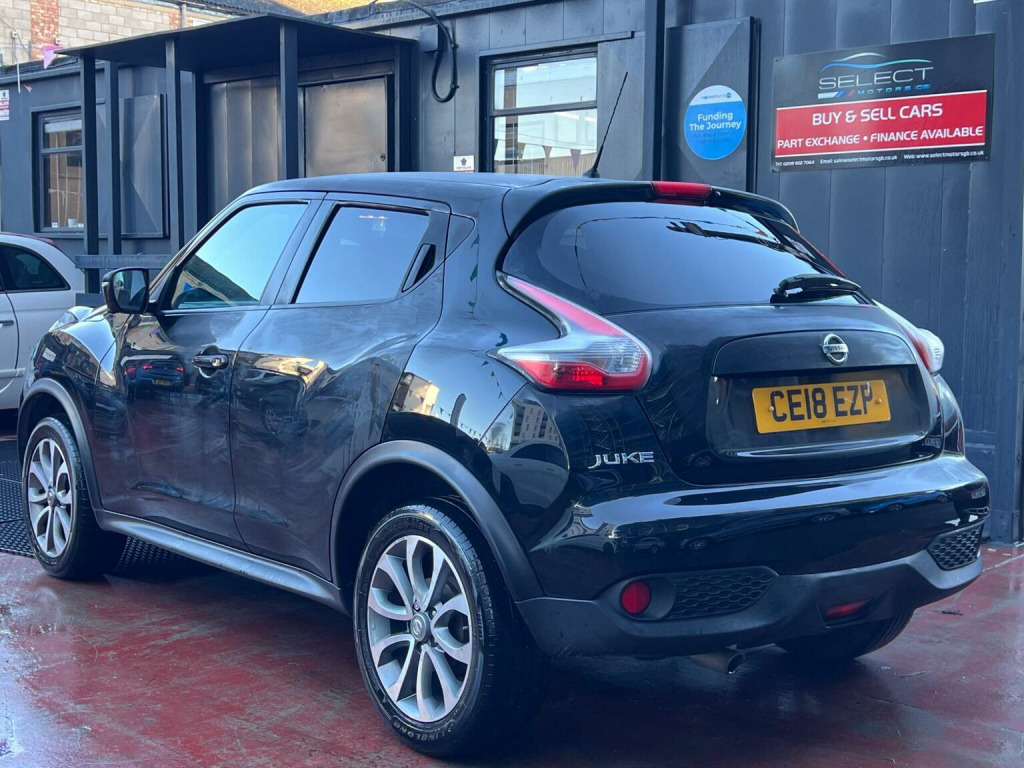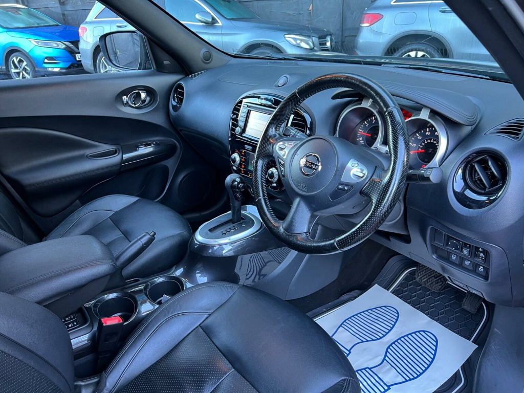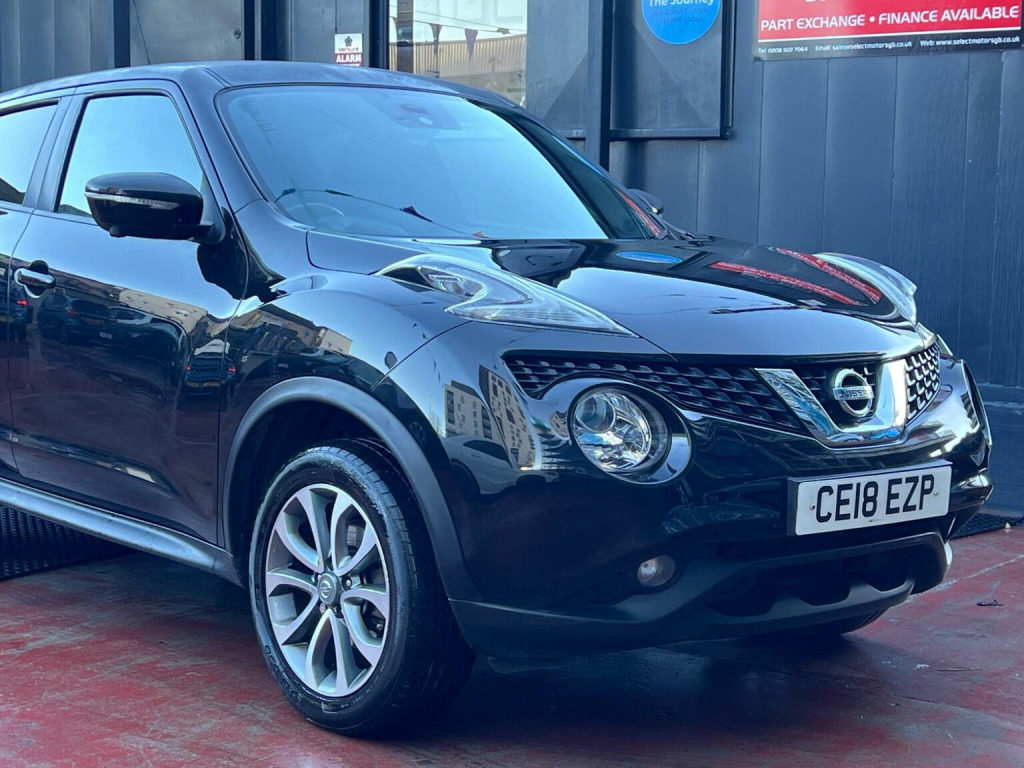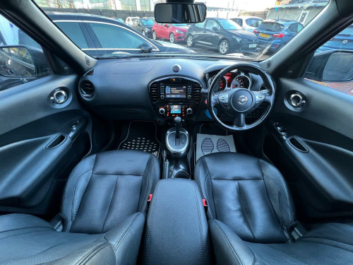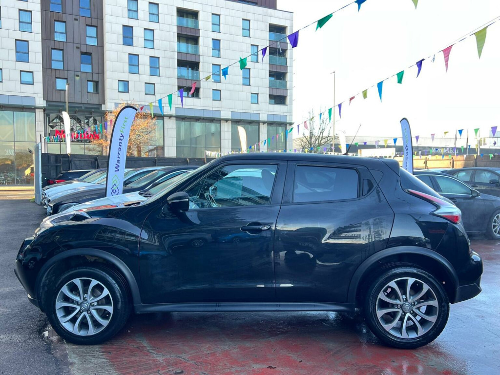 SELECT MOTORS (GB) DELIGHTED TO OFFER YOU THIS STUNNING NISSAN JUKE 1.6 TEKNA 5DR IN BLACK COLOUR AND COMPLEMENTED WITH 17IN URBAN DESIGN ALLOY WHEELS. THIS VEHICLE HAS A HUGE SPECIFICATION WHICH INCLUDES THE FOLLOWING; SATELLITE NAVIGATION SYSTEM, 360 DEGREE VIEW CAMERA, BLUETOOTH CONNECTIVITY FOR PHONE AND MEDIA, DAB-FM/AM RADIO, CRUISE CONTROL WITH SPEED LIMITER, FRONT HEATED SEATS, AUX SOCKET FOR MP3 PLAYER, AUTOMATIC CLIMATE CONTROL, LED DAYTIME RUNNING LIGHTS, TYRE PRESSURE WARNING SYSTEM. THIS VEHICLE IS ULEZ EXEMPT. , WE ARE OFFERING NATIONWIDE DELIVERY ON ALL VEHICLE (PLEASE GET IN TOUCH DIRECTLY FOR DETAILS). WE CAN ALSO CONDUCT VIRTUAL VIEWINGS AND ACCOMMODATE ANY REQUESTS YOU MAY HAVE. ALL OUR ADVERTISED STOCK IS TEST-DRIVEN, INSPECTED BY OUR MECHANIC TO MAKE SURE OUR CUSTOMERS DRIVE AWAY WITH THE BEST QUALITY CARS. WE CAN PROVIDE A VIDEO WALK AROUND THIS VEHICLE UPON REQUEST. ALL OF OUR VEHICLES ARE SUPPLIED WITH A 3 MONTHS WARRANTY WITH EXTENDED OPTION. 12 MONTHS FREE AA BREAKDOWN COVER. FINANCE AVAILABLE.
