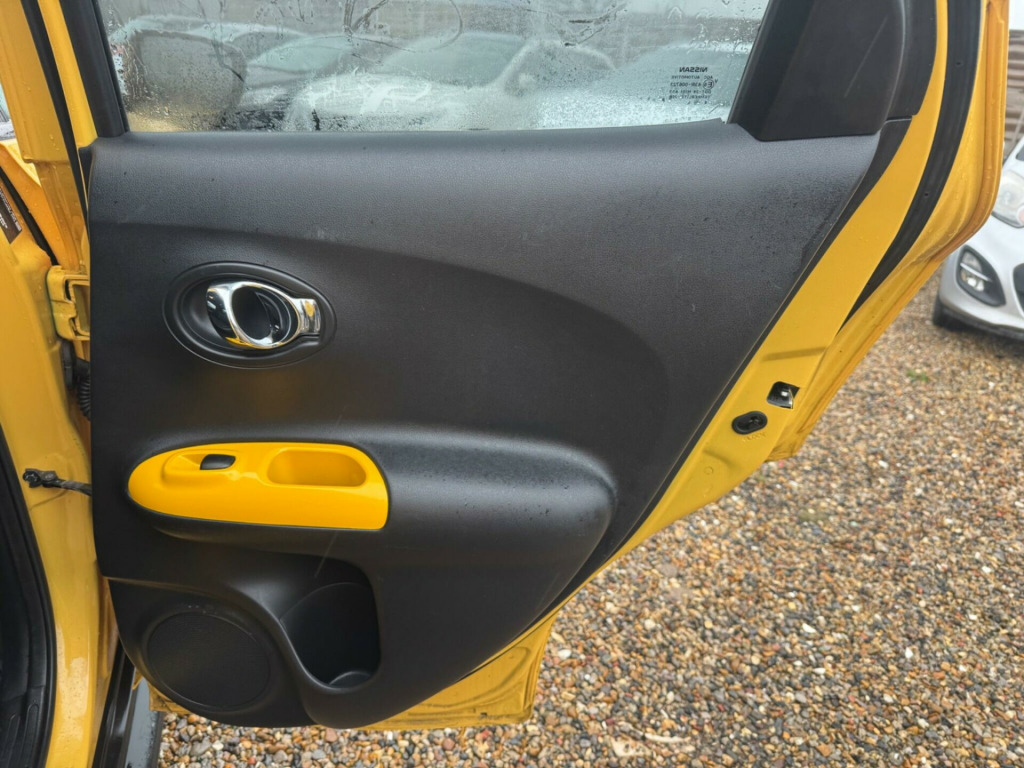 This 2017 Nissan Juke Tekna presents a superb ownership proposition with a clear vehicle history check and only two previous owners. Powered by an efficient 1.6 litre Euro 6 compliant petrol engine, this Tekna model offers a compelling blend of style and practicality. Inside, you'll find a host of desirable features designed for comfort and convenience, including a colour reversing camera with parking assistance, Bluetooth integration for seamless phone connectivity, and automatic climate control with a pollen filter to keep the cabin fresh. Enjoy the luxury of heated front seats on colder days and the ease of keyless entry with the intelligent key and push button start.This Nissan Juke stands out with its impressive fuel economy, achieving an excellent 47 miles per gallon, which indicates it is more economical than many similar vehicles. Furthermore, its low insurance group rating suggests that running costs will be kept to a minimum, making it an attractive choice for a wide range of drivers. This well maintained Juke combines its practical benefits with a distinctive design, offering a well rounded package for everyday use. v socket - front, 17in alloy wheels - urban, 2 speed wiper with variable intermittent, 3 adjustable rear head restraints, 60-40 split rear folding seats, aux socket for mp3 player, airbag - driver, airbag - front passenger, airbags - curtain, airbags - side, armrest - coloured stitching to matching centre console, automatic climate control with pollen filter, automatic lights and wipers, black headliner, body coloured handles, body-coloured door mirrors with led indicators, boot capacity with flexi-floor board, chrome interior door handles, colour reversing camera, cruise control with speed limiter, dab and internet radio with 6 speakers, drive computer with temperature gauge, esp abs ebd and brake assist, electric folding and heated door mirrors, engine immobiliser, front armrest, front cupholders x2, front door pockets with drinks bottle holders, front fog lights, front map reading lights, front seat belt height adjustment, front seat belts with load limiter and pretensioners, front and rear electric windows, gear shift indicator, glovebox, height adjustable driver seat, isofix child seat anchoring points, intelligent key with start push button, led signature daytime running lights, leather steering wheel and gear knob, nissan dynamic control system, nissanconnect, passenger airbag cut-off switch, power assisted steering - speed sensitive, puncture repair kit, rear door child locks, rear privacy glass, rear tonneau cover integrated into tailgate, rear wiper with intermittent, safety pack, seats - heated front, steering wheel mounted audio controls, tpms - tyre pressure monitoring system, telephone - bluetooth integration, tilt adjustable steering wheel, traction control, usb port